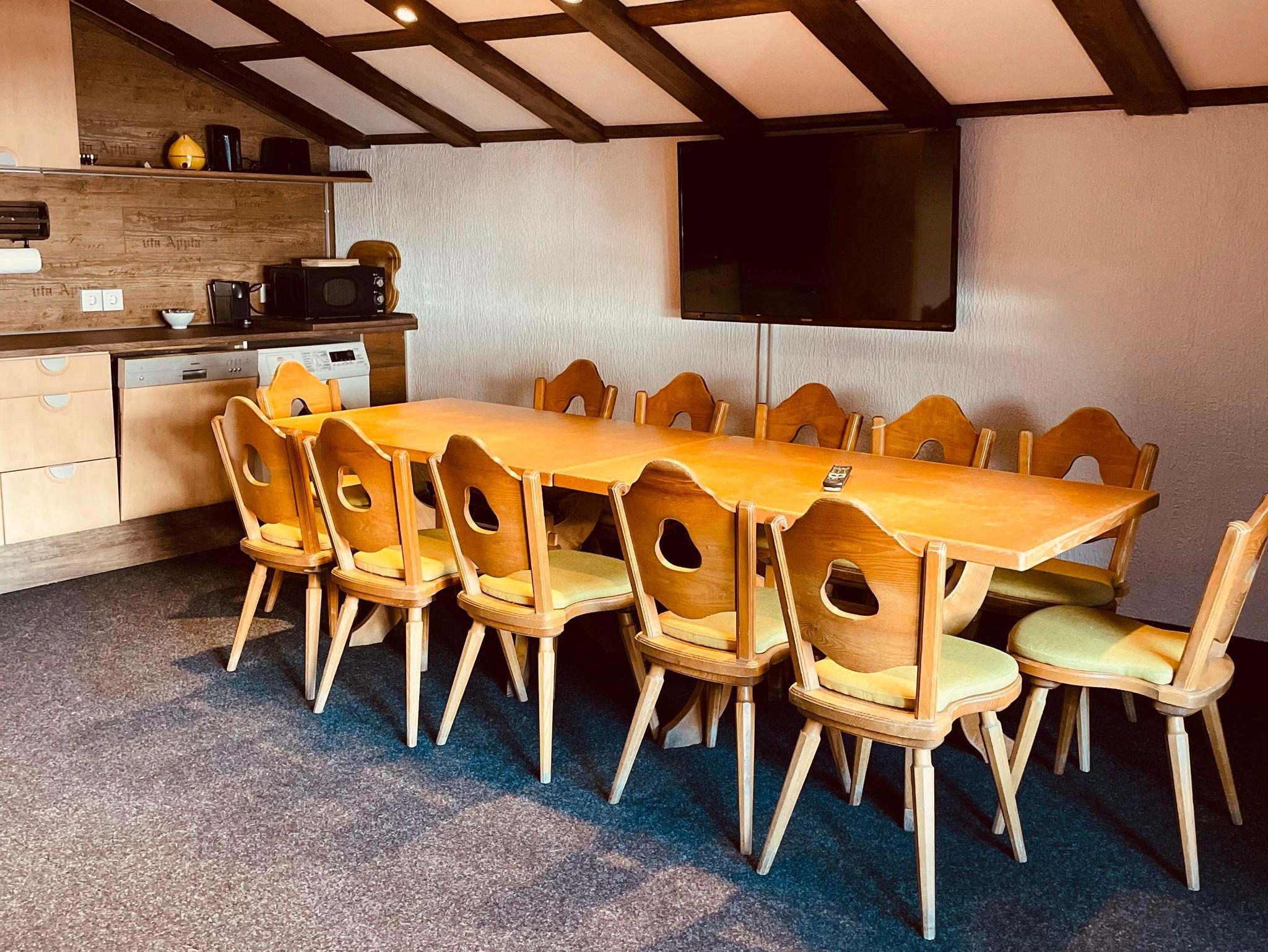 Am großen Esstisch finden alle Platz um zusammen zu Essen oder zum verweilen.