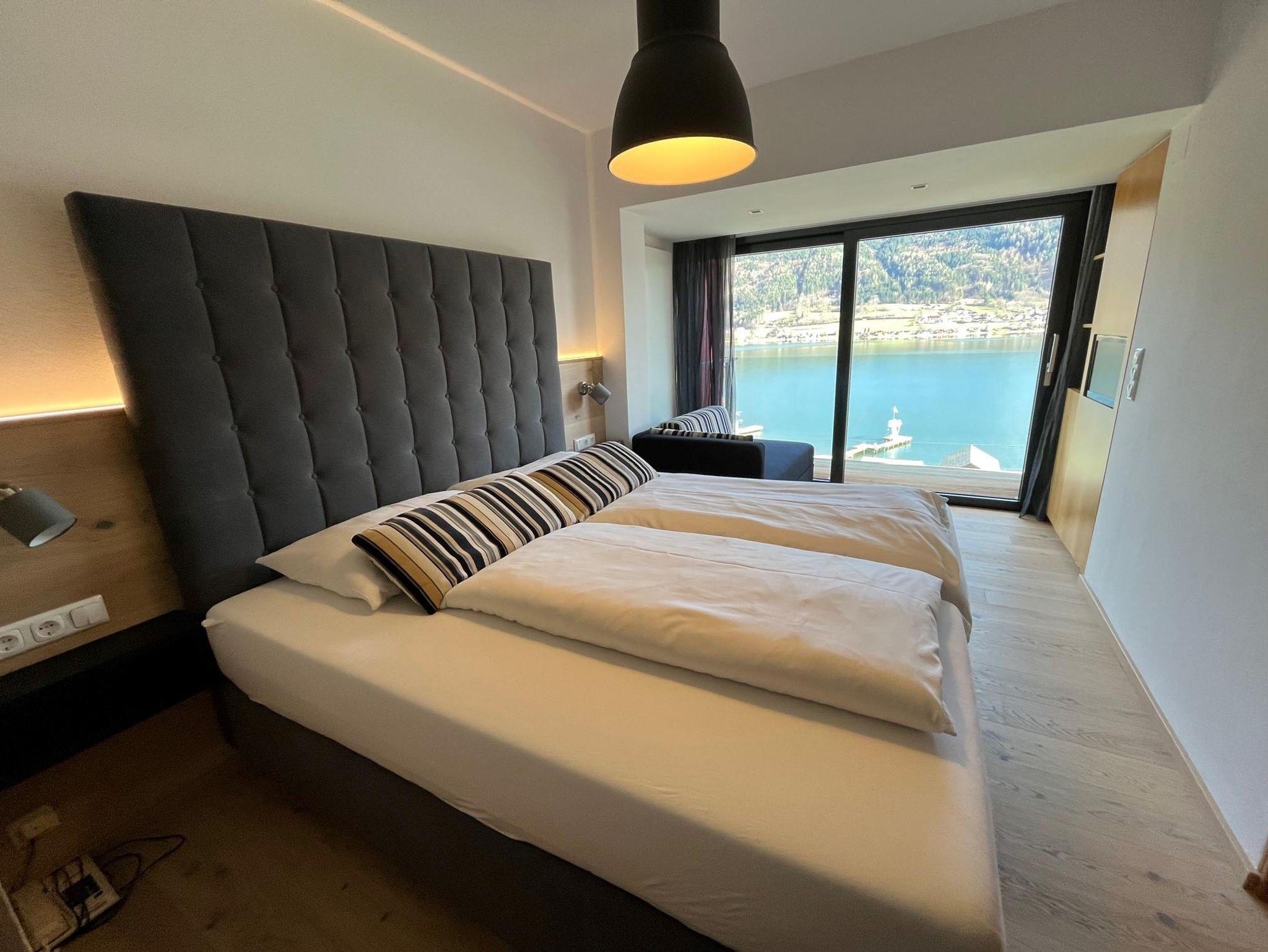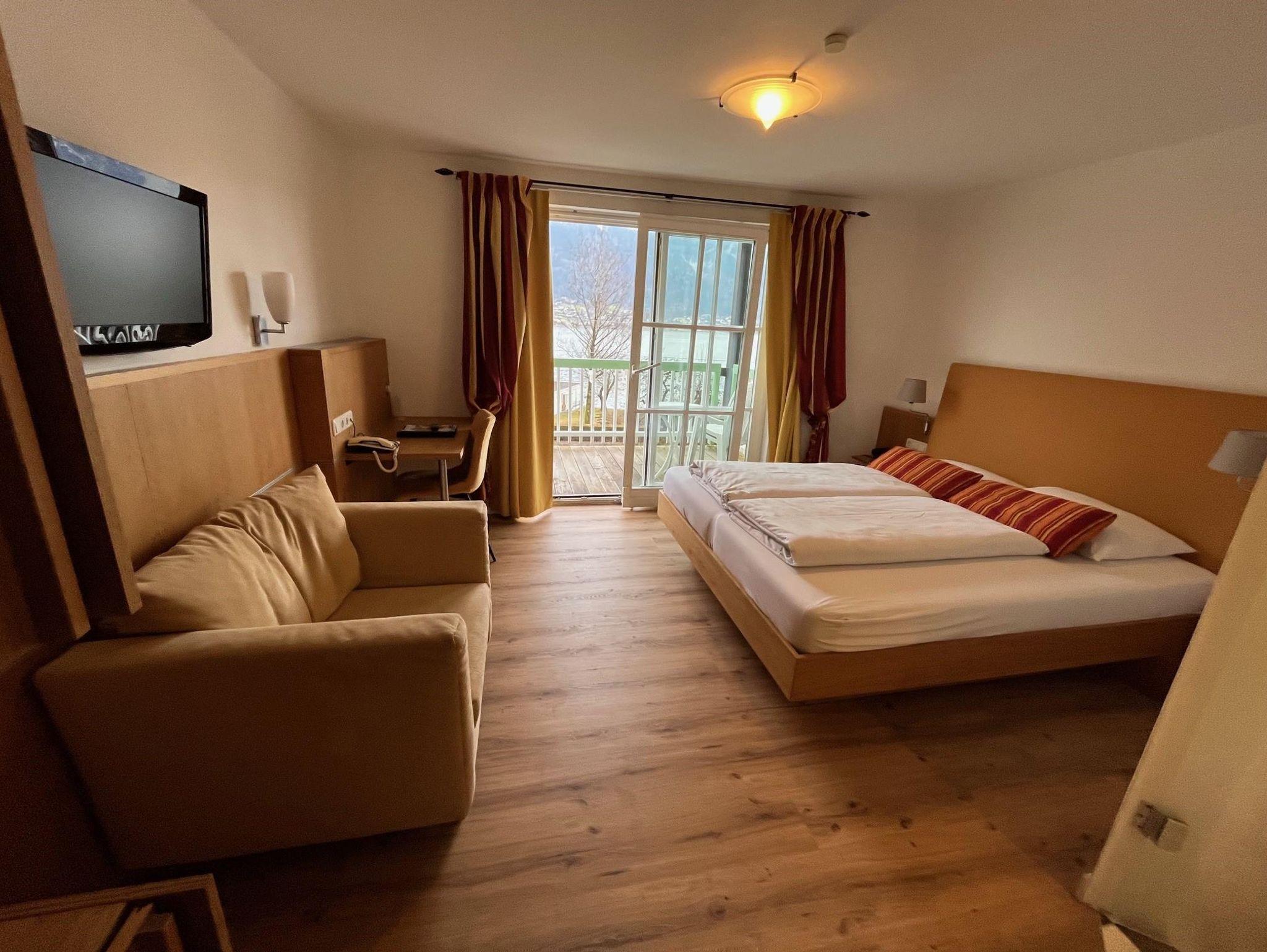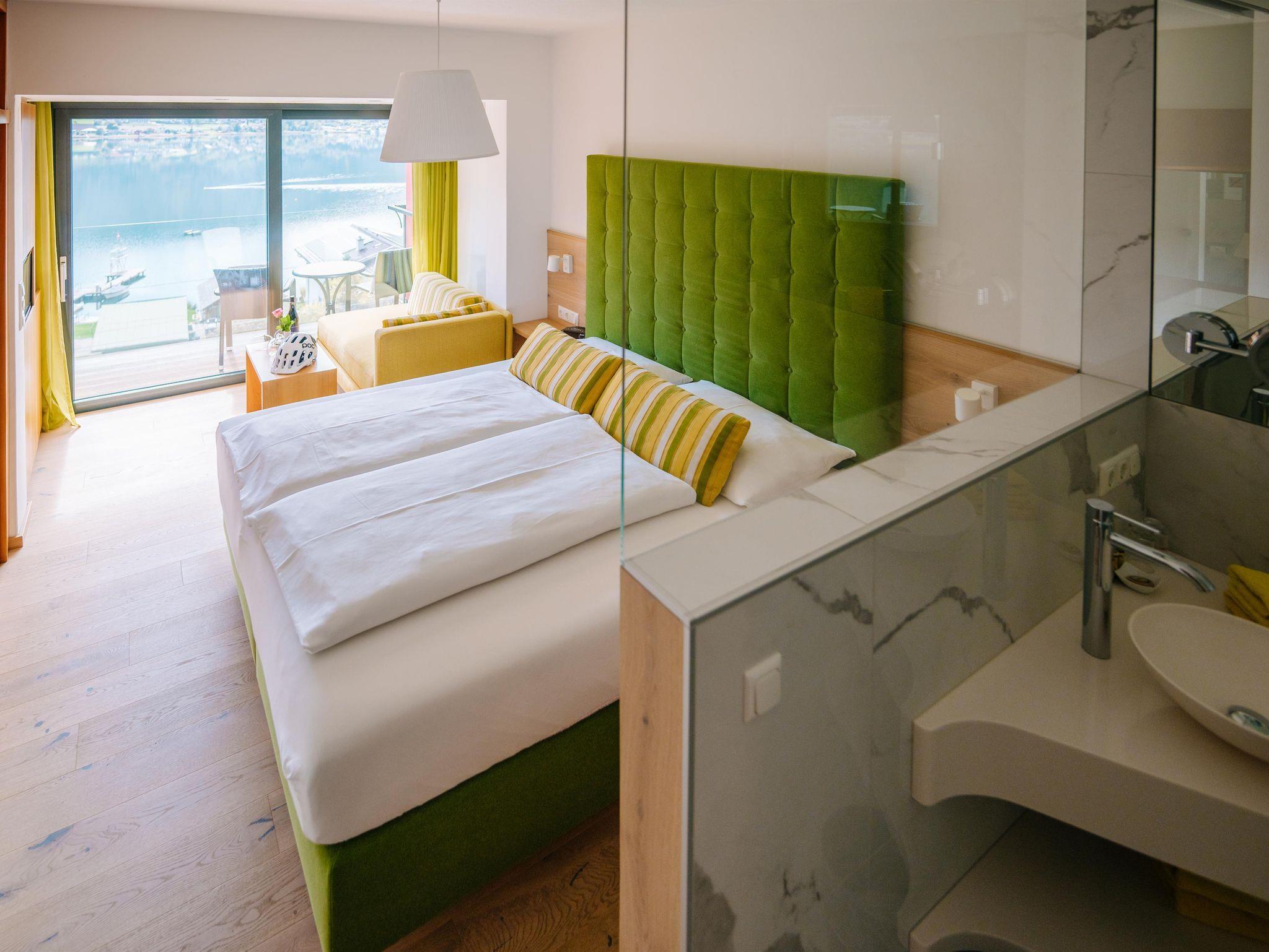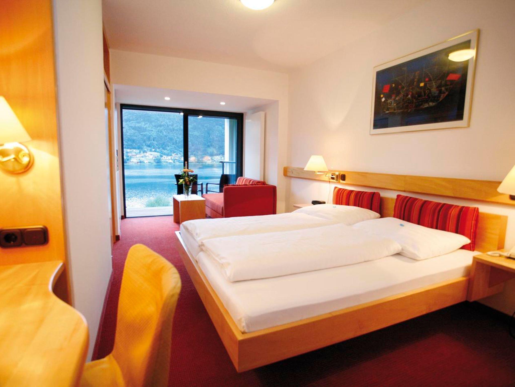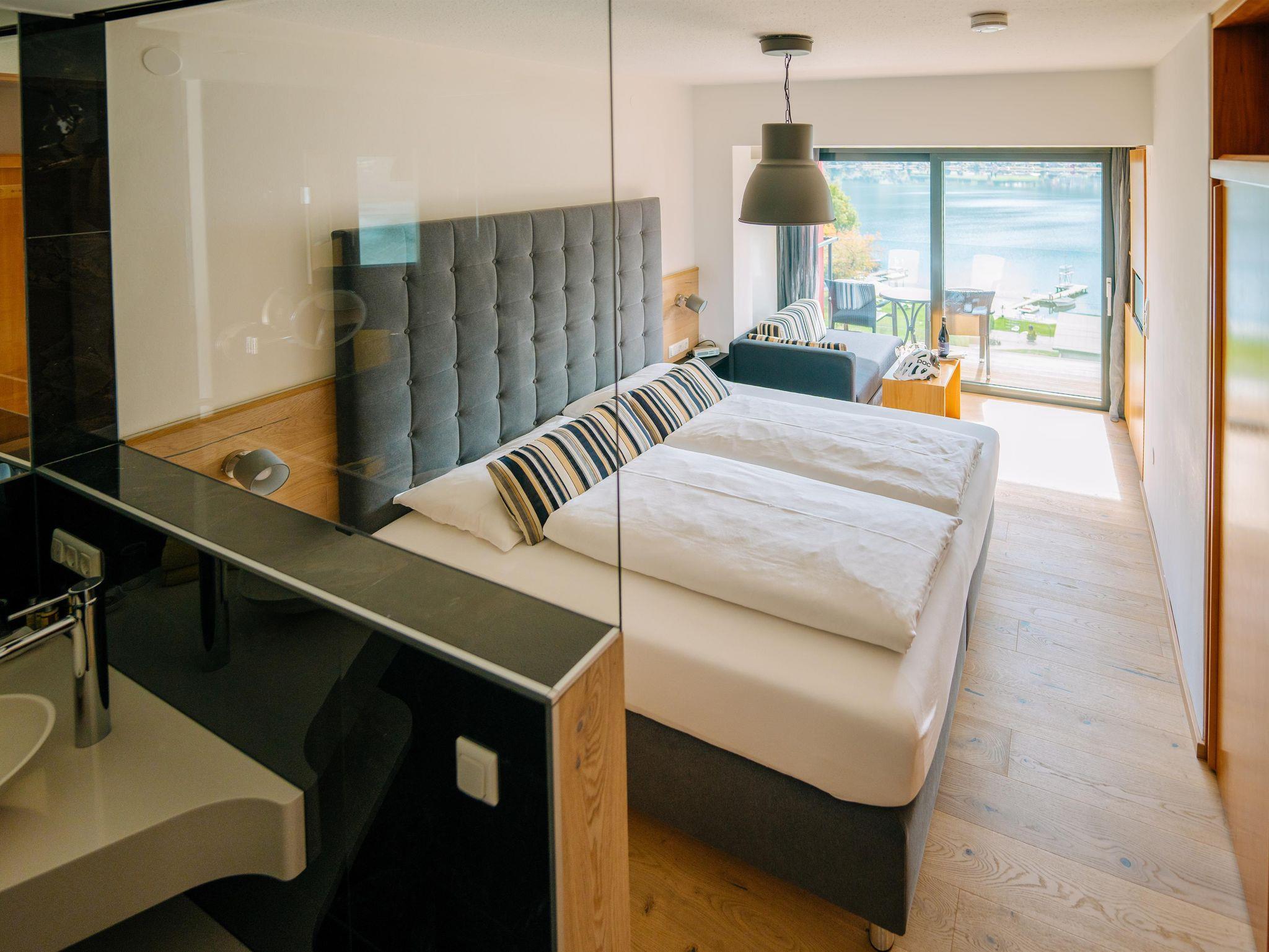 Doppelzimmer mit Balkon und Seeblick im Haupthaus oder Landhaus,Bad oder Dusche/WC, Sat-TV, Radio, Telefon und Zimmersafe, Wlan