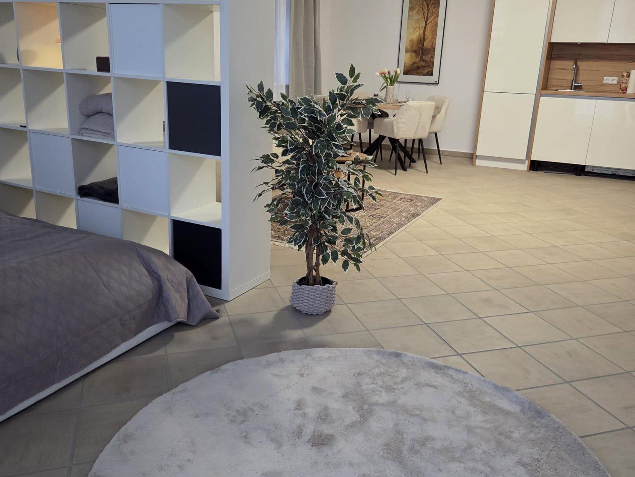 Insgesamt bietet die Wohnung Platz für die ganze Familie: Ein komfortables Queensize-Doppelbett sowie die Schlafcouch bieten Schlafmöglichkeiten für jeweils zwei Personen. Für die kleinsten Gäste kann flexibel ein Kinderbett (wahlweise als Gitterbett oder 1,40 m Juniorbett) bereitgestellt werden.