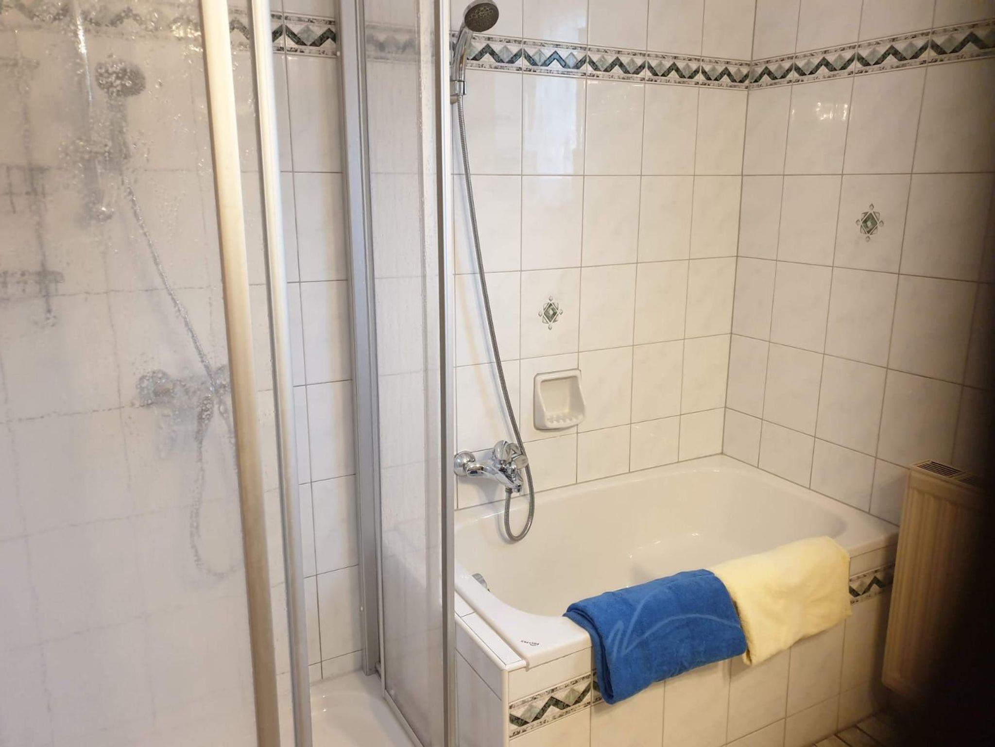 Das Appartement im EG verfügt über eine komplett ausgestattete Wohnküche, einem Wohn- Schlafzimmer mit zwei Einzelbetten, einem Schlafzimmer mit Doppelbett, einem Bad mit Dusche und Sitzbadewanne, getrenntem WC, sowie einer Sonnenterrasse.