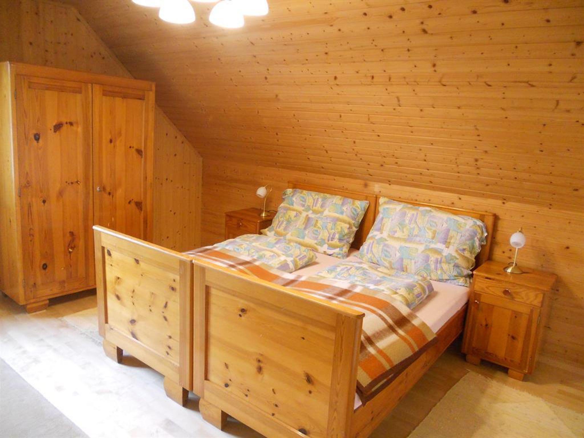 Die 90m² große Ferienwohnung im 1. Stock im Nebenhaus besteht aus zwei 2-Bett-Schlafzimmern, einem Wohnzimmer mit Couch, einer voll ausgestatteten Wohnküche, einer Veranda, sowie einem Badezimmer mit Badewanne und separatem WC.