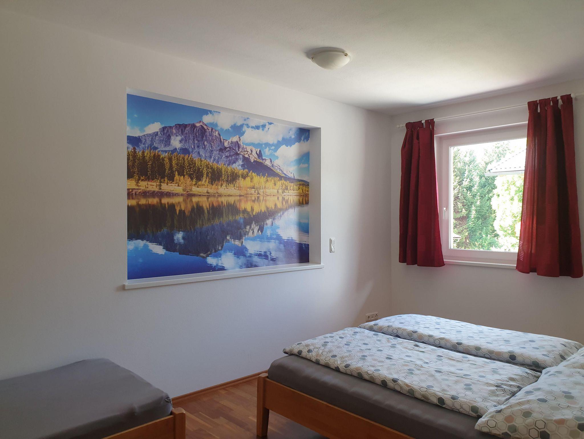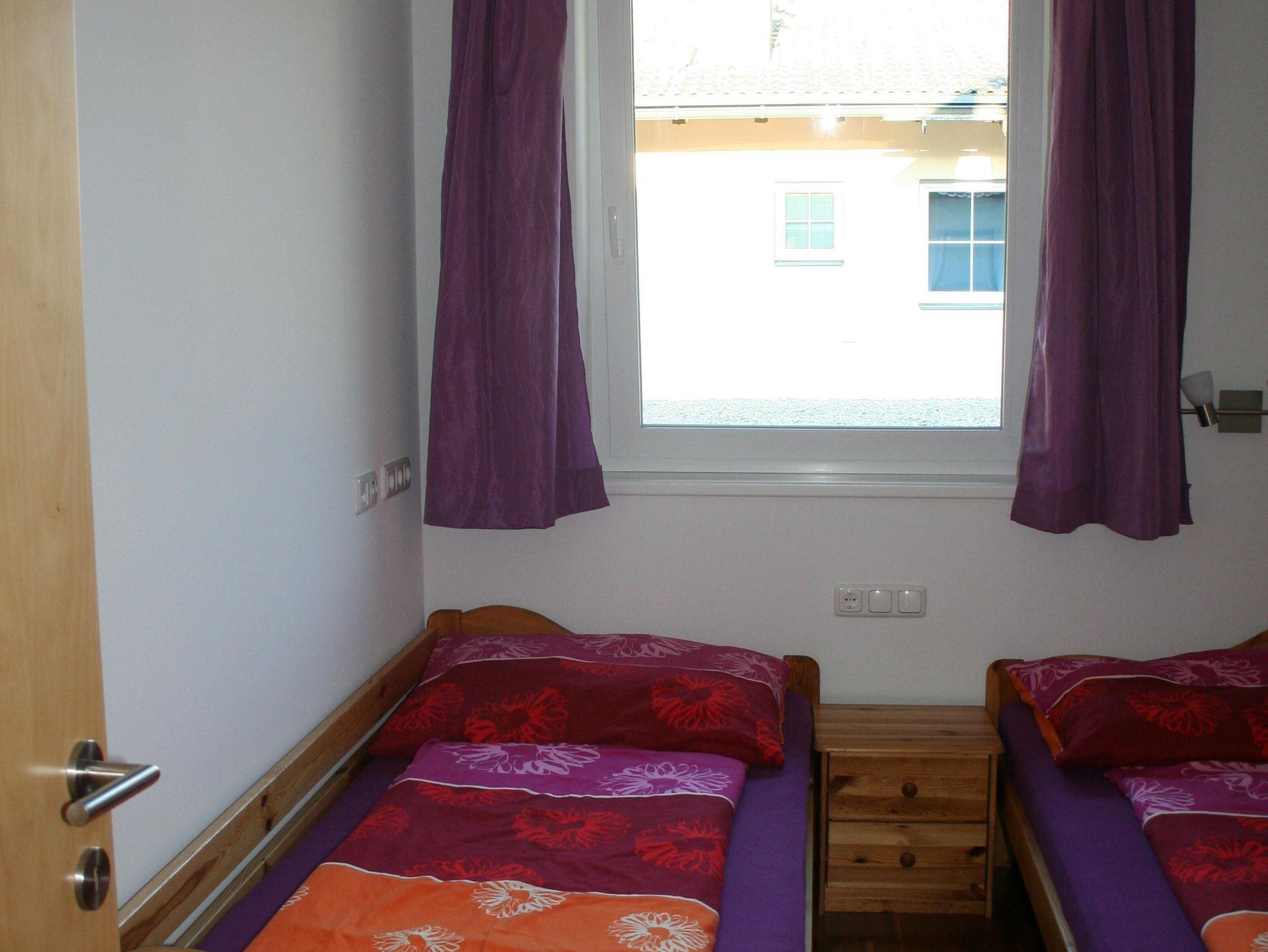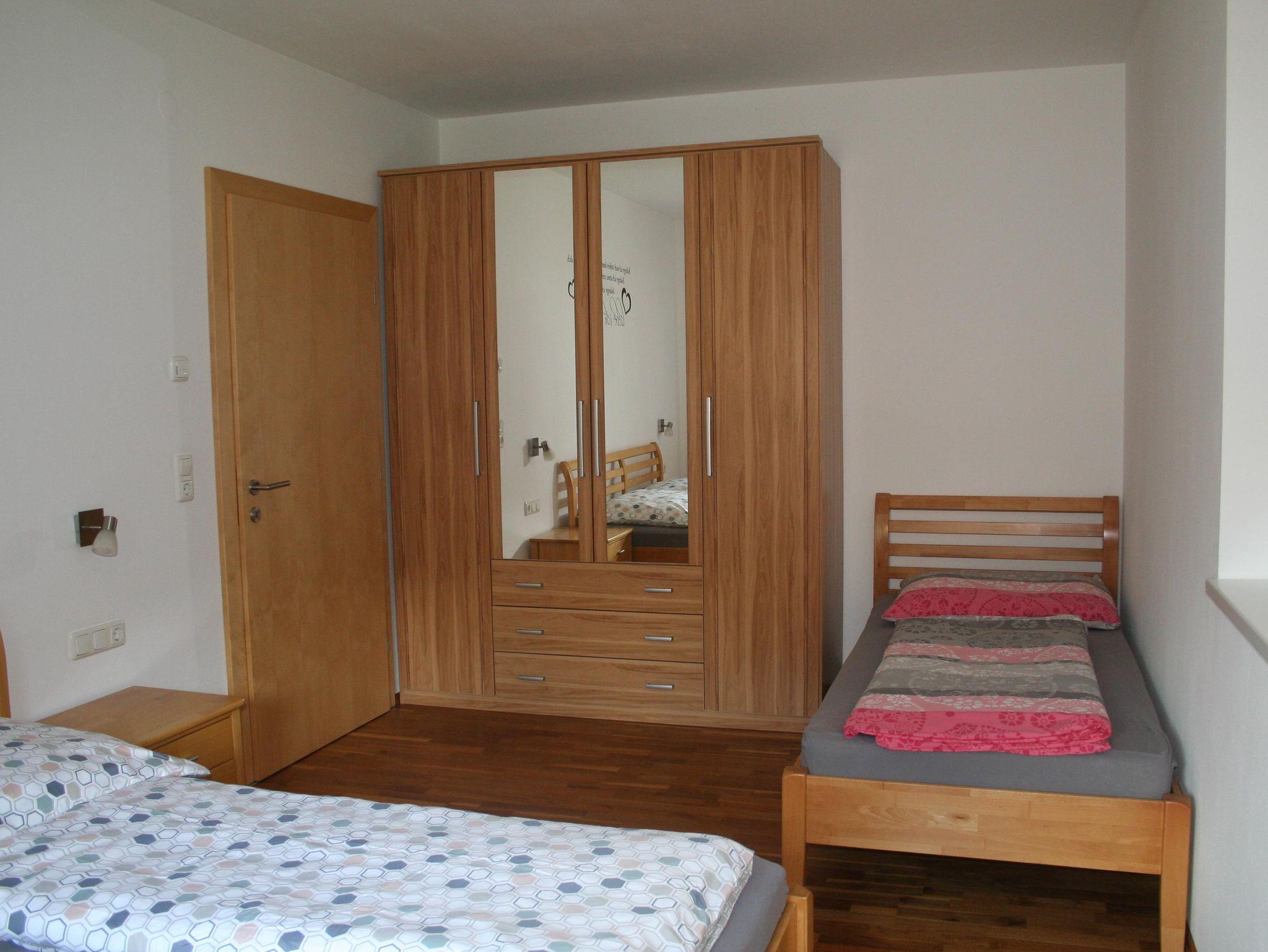 Die Ferienwohnung Bachmann verfügt über ein Schlafzimmer mit Doppelbett und einem Einzelbett und eines mit zwei Einzelbetten.