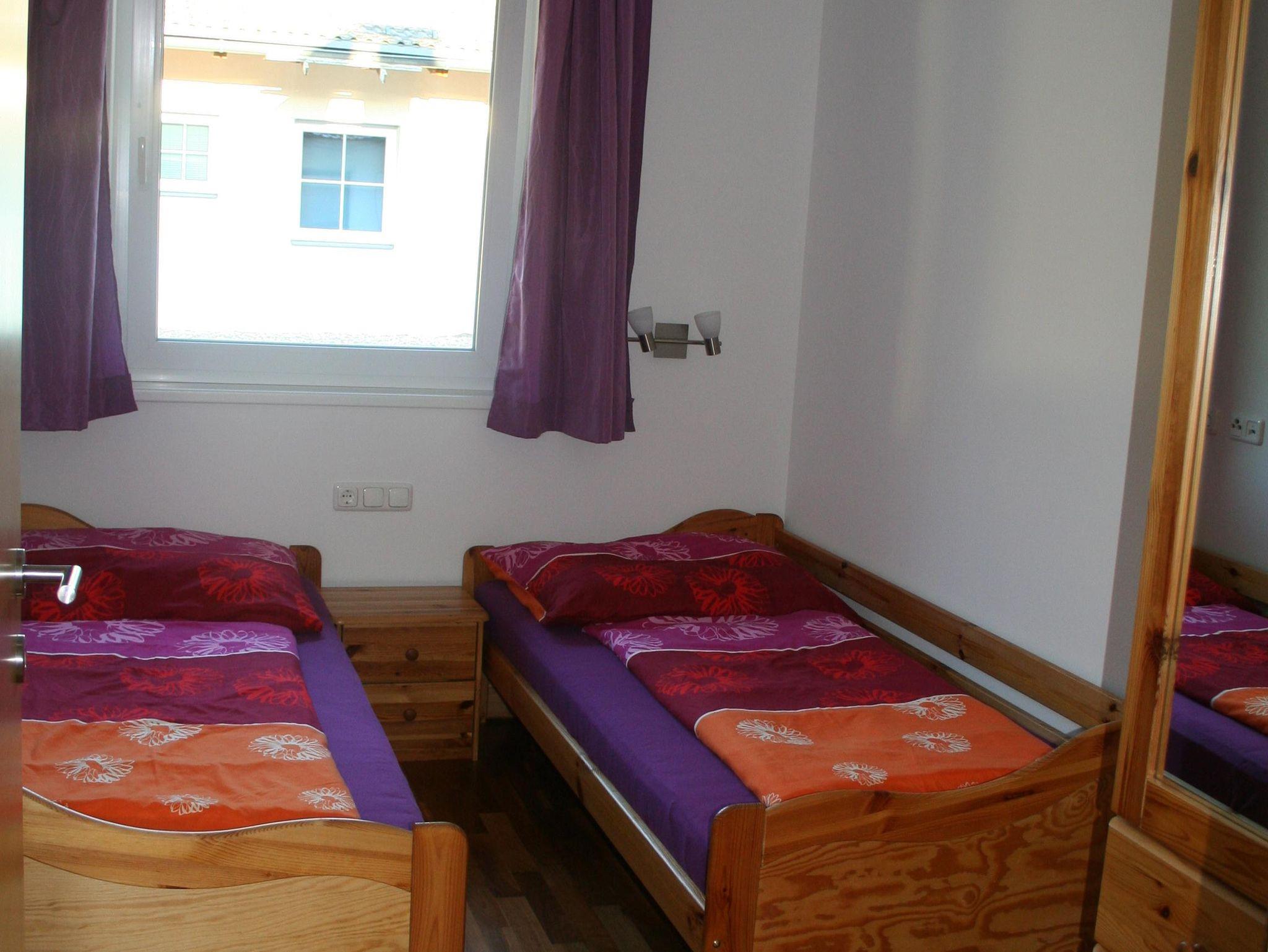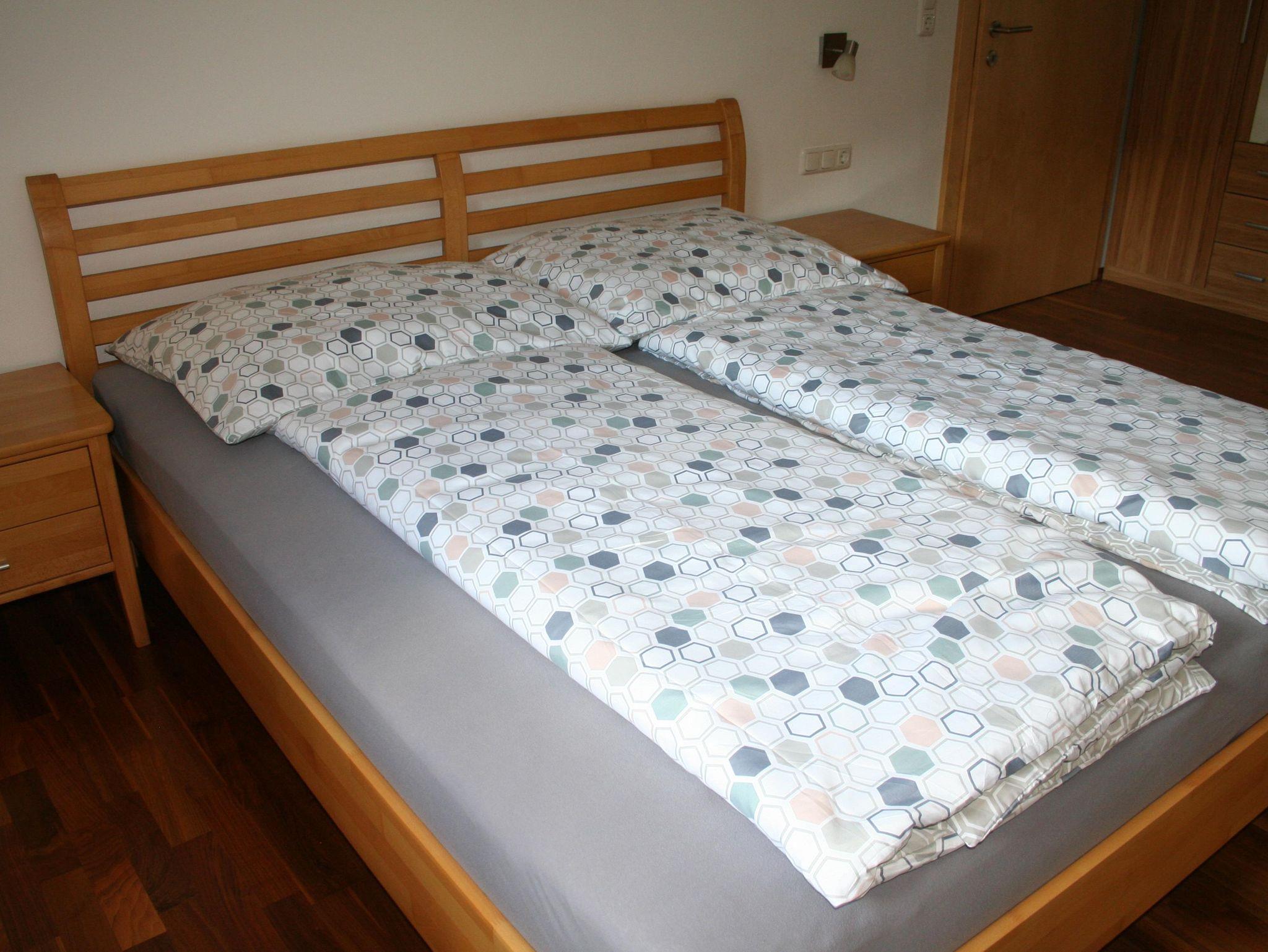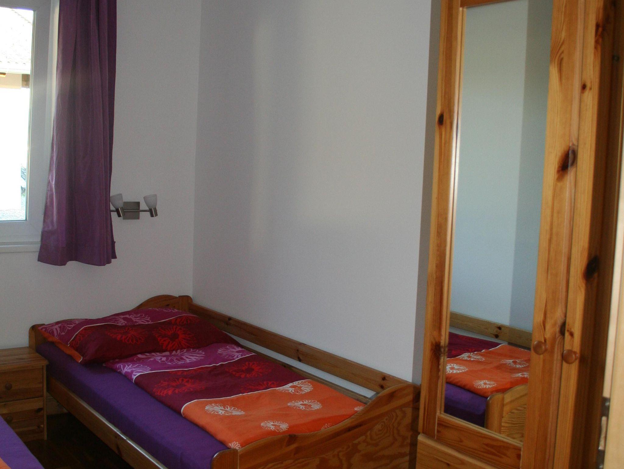 Die Ferienwohnung Bachmann verfügt über ein Schlafzimmer mit Doppelbett und einem Einzelbett und eines mit zwei Einzelbetten.