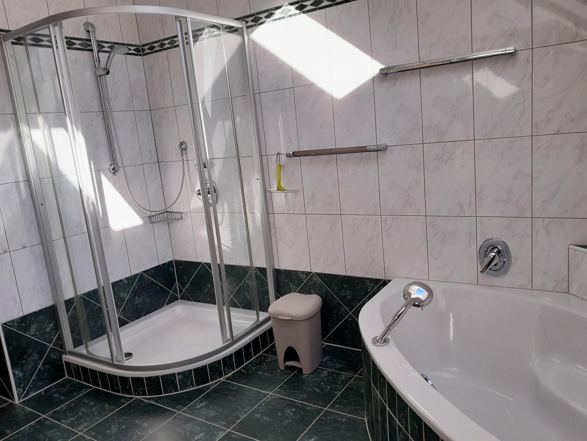 Zusätzlich steht eine großzügige Ferienwohnung (ca.?80?m²) mit zwei Schlafzimmern (Doppelbett + Einzelbetten), komplett ausgestatteter Küche, Bad mit Badewanne und Dusche zur Verfügung – ideal für 1–4 Personen.
