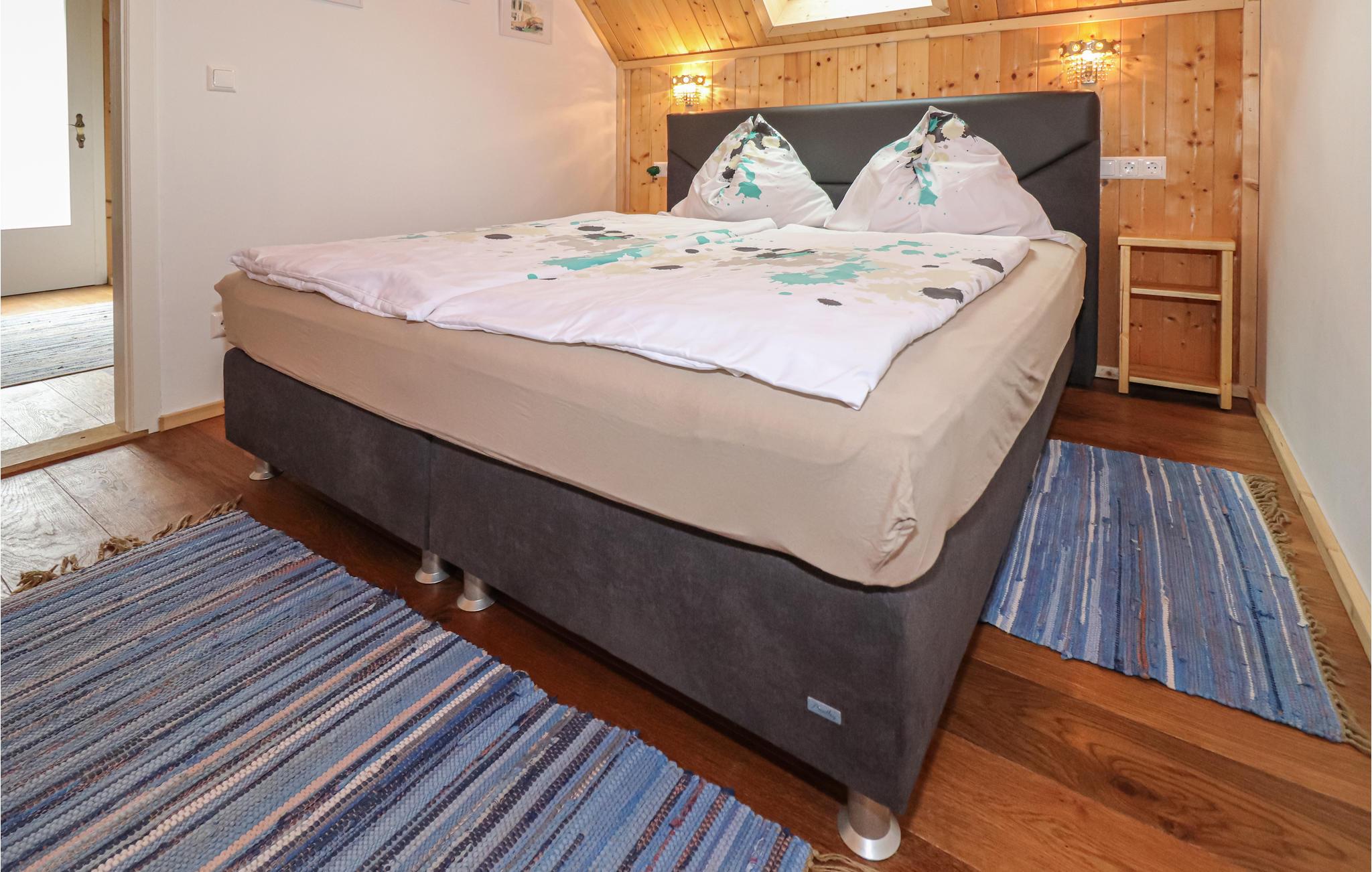 Kellerstöckl har et rummeligt, åbent køkken, der inviterer jer til at lave mad sammen. Det rustikke opholdsområde lover hyggelige aftener. En brændeovn giver varme og hygge. På første sal er der et komfortabelt møbleret soveværelse med en dobbeltseng. Ud over dobbeltsengen er der også en sovesofa.