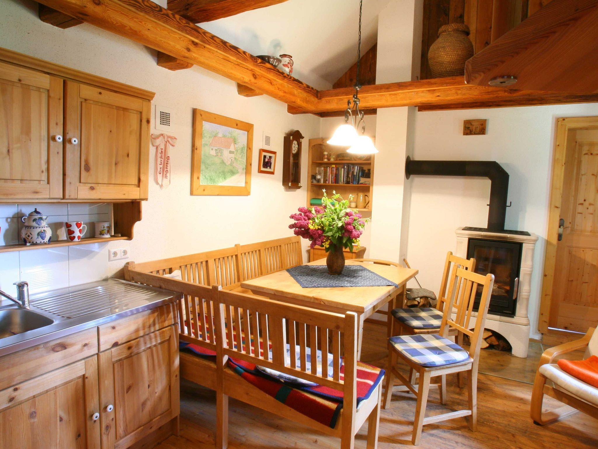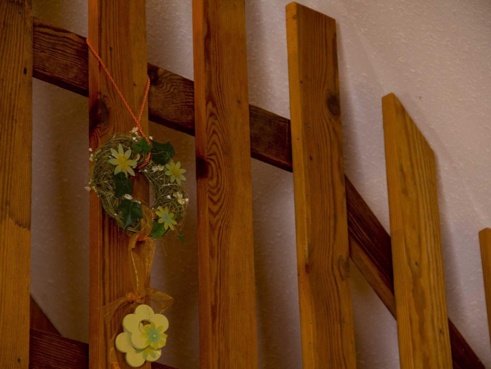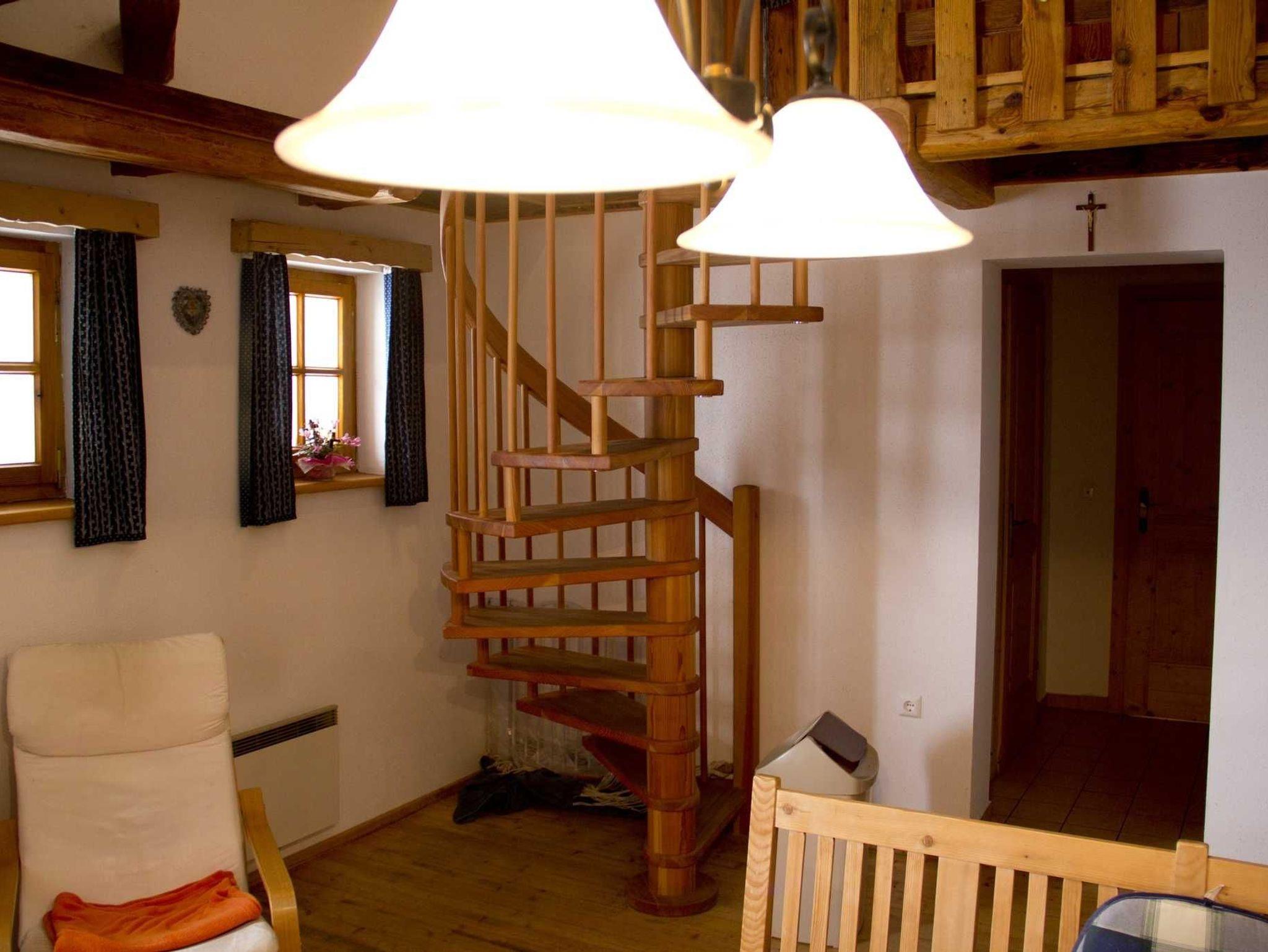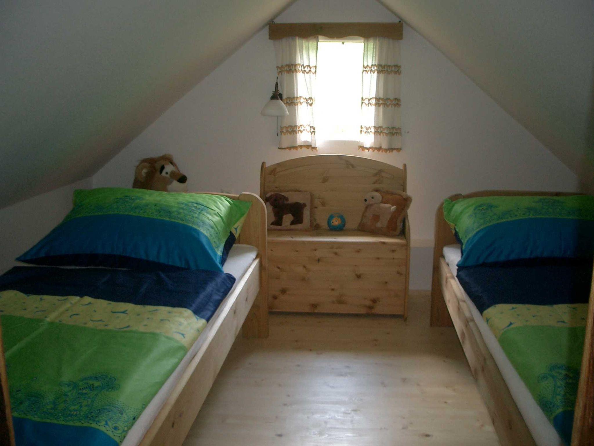 Einrichtung: voll ausgestattete Wohnküche, Badezimmer mit Dusche u. Waschmaschine, WC (getrennt), 1 Doppelzimmer, 1 Schlafzimmer mit 2 Betten unterm Dach, TV vorhanden
