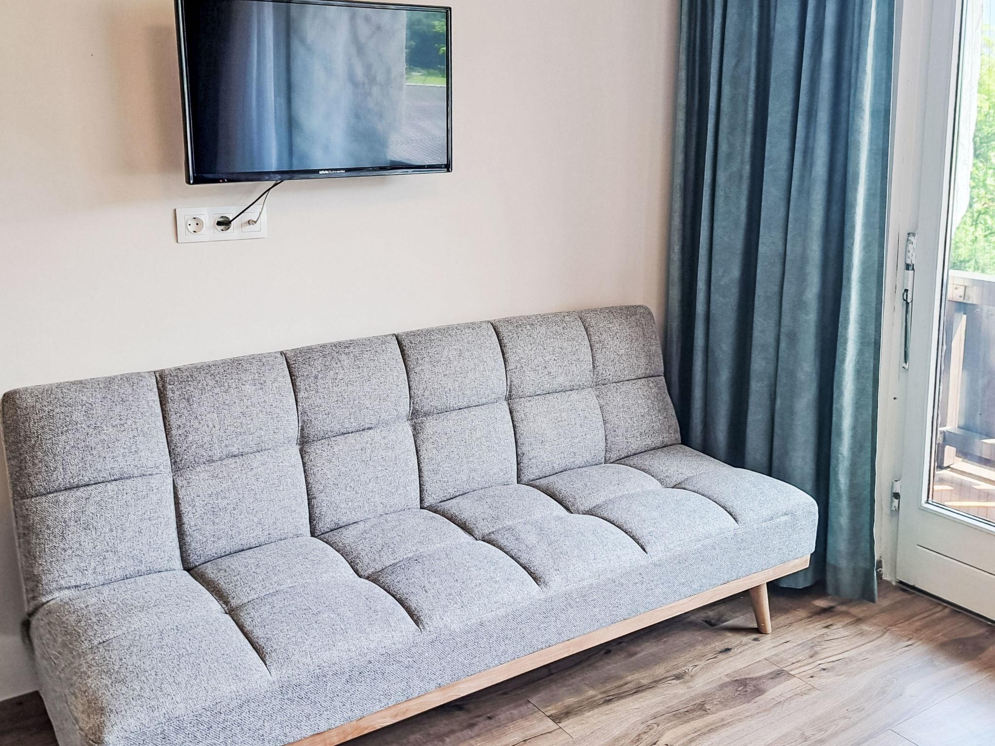 "Wohnung 413 Bergblick", 1-room apartment 30 m2. Modern and cosy furnishings: living/sleeping room with 1 sofabed, 1 double bed and satellite TV (flat screen). Open kitchen (2 hot plates, microwave, electric coffee machine). Shower/WC. Heating. Balcony 6 m2. Balcony furniture. Beautiful view of the mountains. Facilities: Internet (WiFi, free). Please note: non-smokers only.