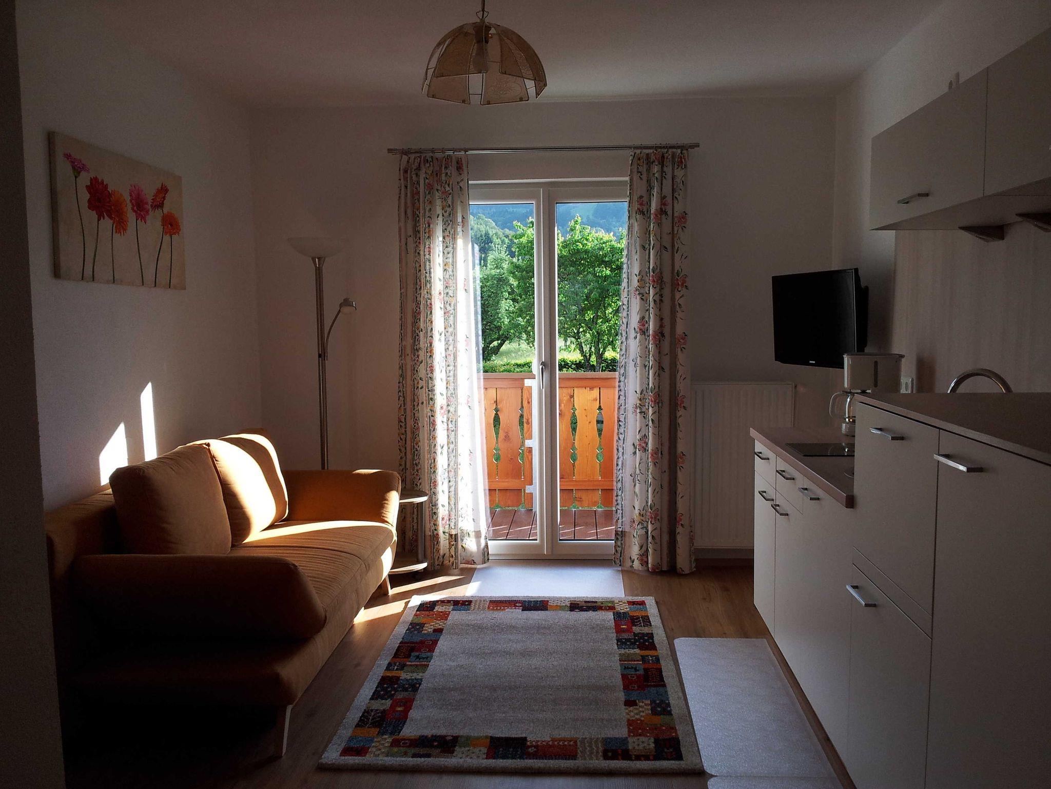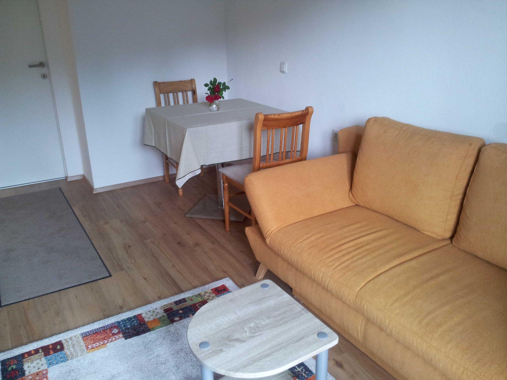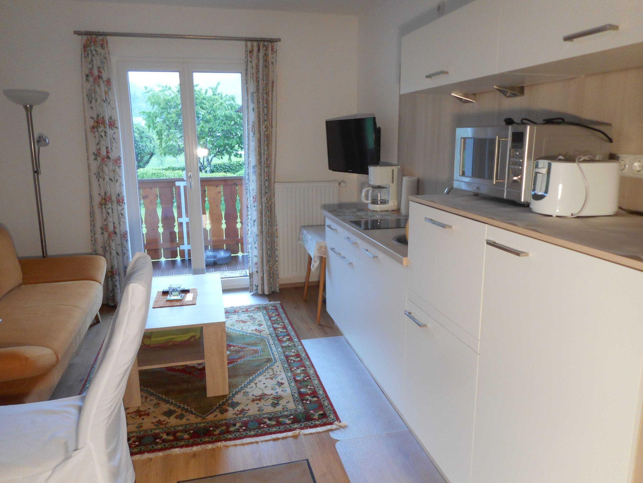 Ferienwohnung im Haus Amalia mit Balkon für 2 Personen, Schlafzimmer mit TV, Küche/Wohnbereich mit TV, Bad mit Dusche, Einzel WC, ca. 34 m2