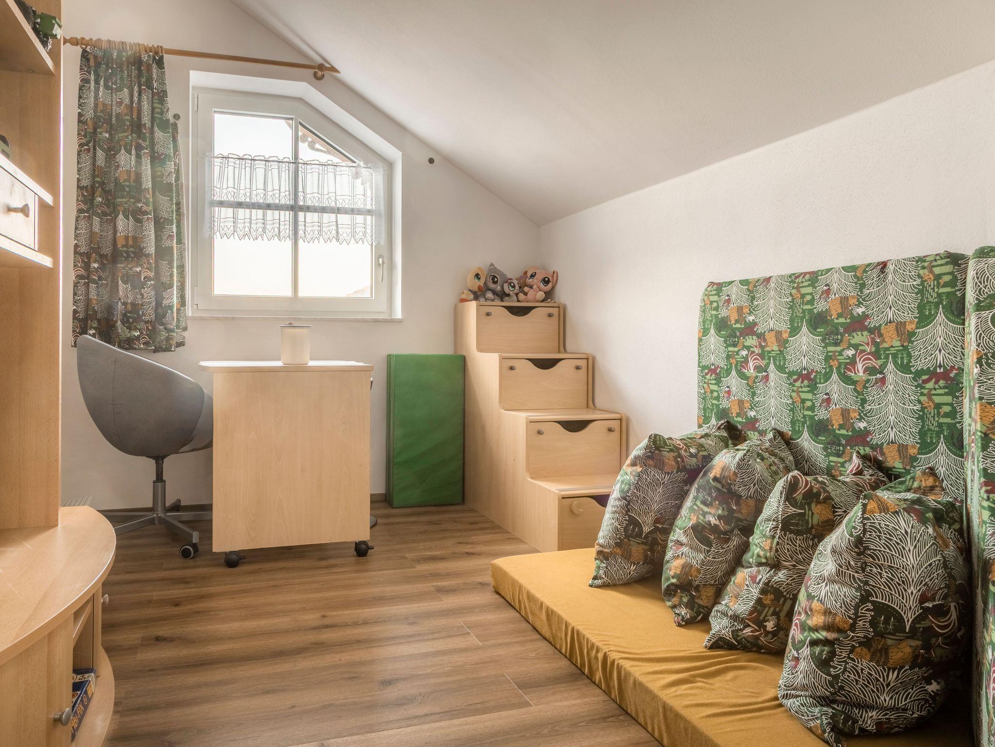 Im 2. Stock gelegen, bietet die Wohnung Bleckwand viel Platz und Gemütlichkeit. In der großen Wohnküche findest du einen Esstisch, Couch und TV ? ideal zum Zusammensitzen. Das Schlafzimmer ist mit einem französischen Balkon, TV, Schrank und gemütlichem Bett ausgestattet. Für die Kleinen gibt es ein eigenes Kinderzimmer mit Stockbett, Kuschelecke und Spielbereich. Das Bad bietet eine großzügige Dusche, WC, Föhn und Handtücher. Ein Ort zum Wohlfühlen für die ganze Familie.