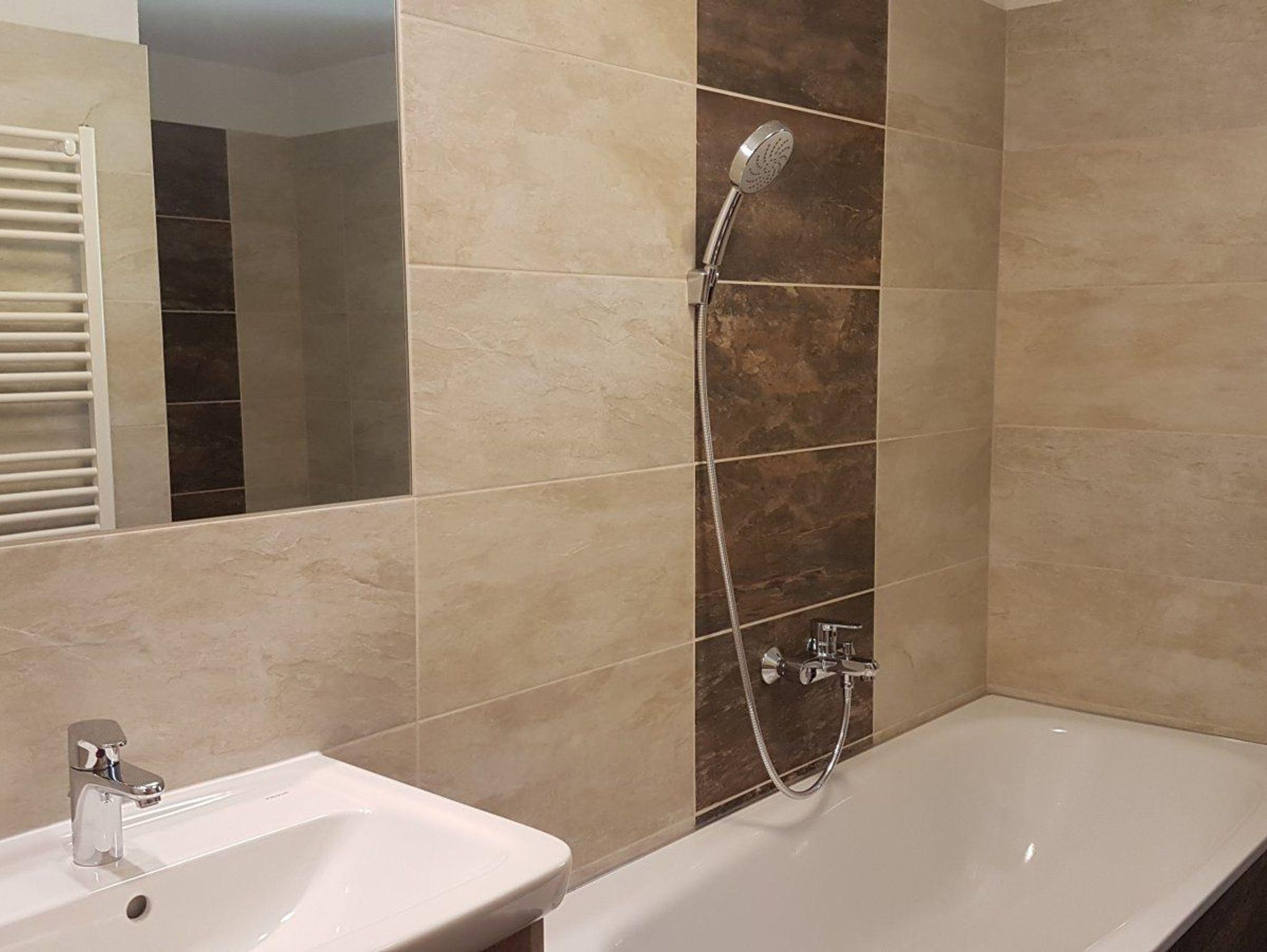 • Bad mit ebenerdiger Dusche, Badewanne und Handtuchheizkörper