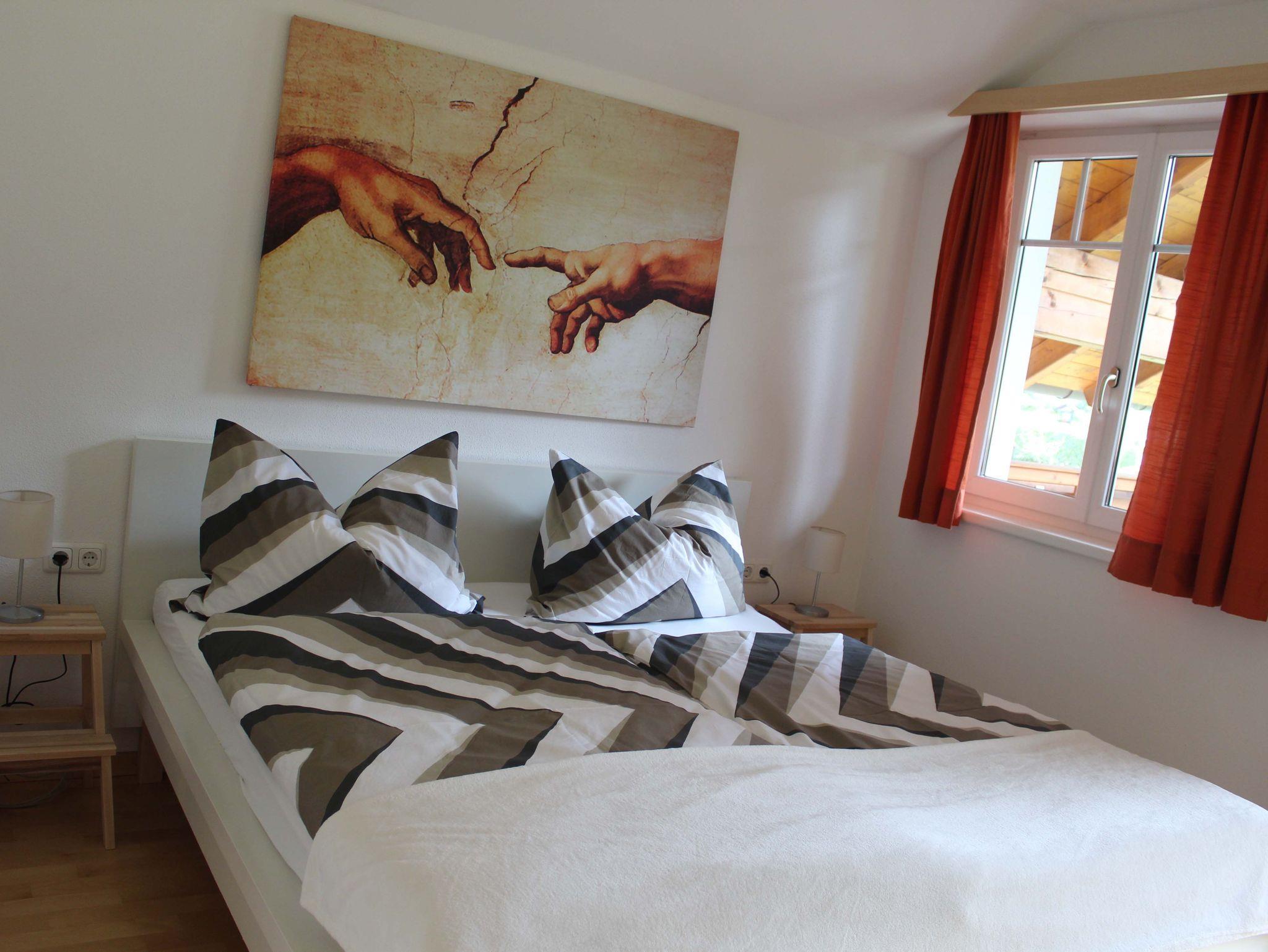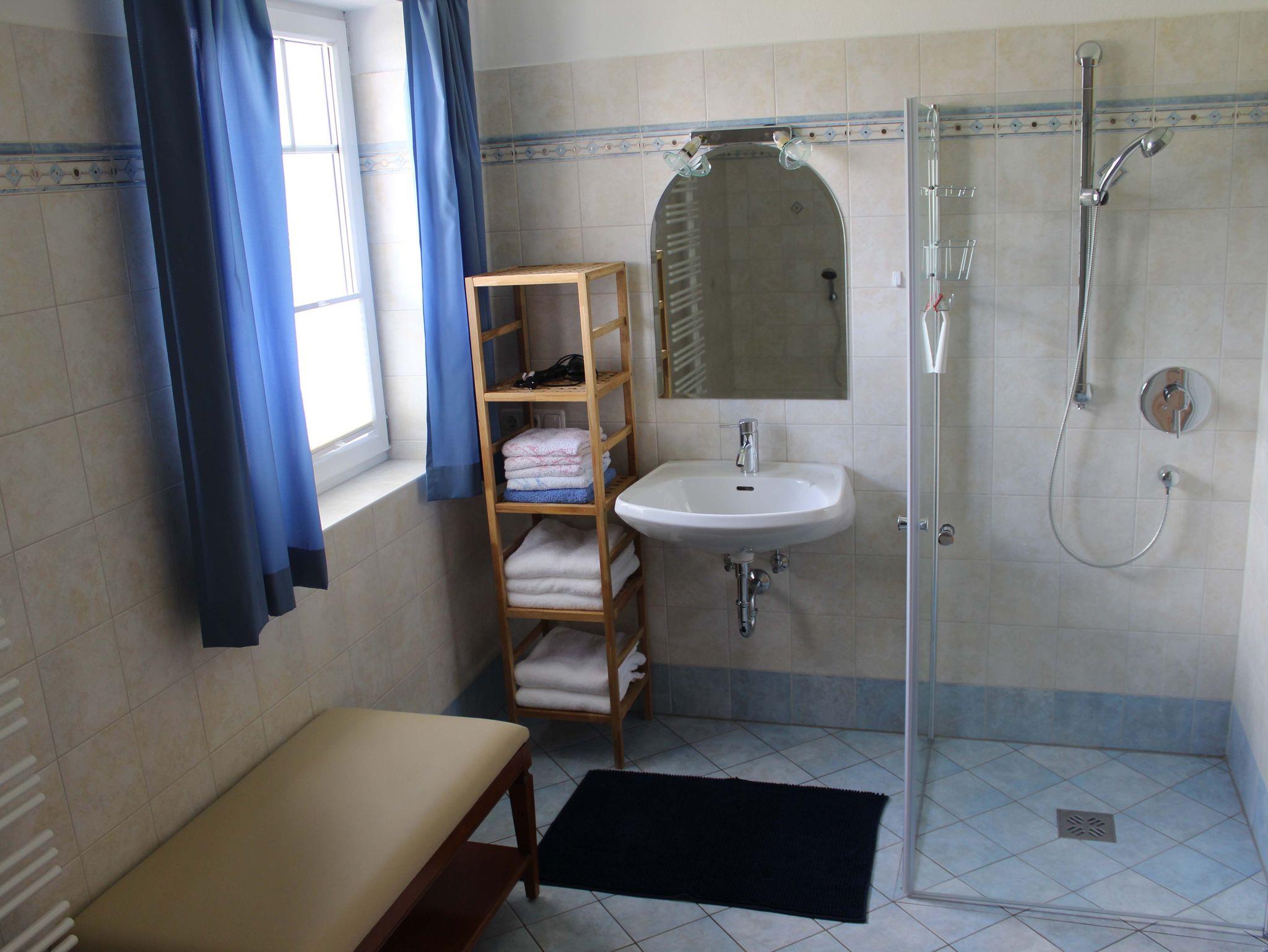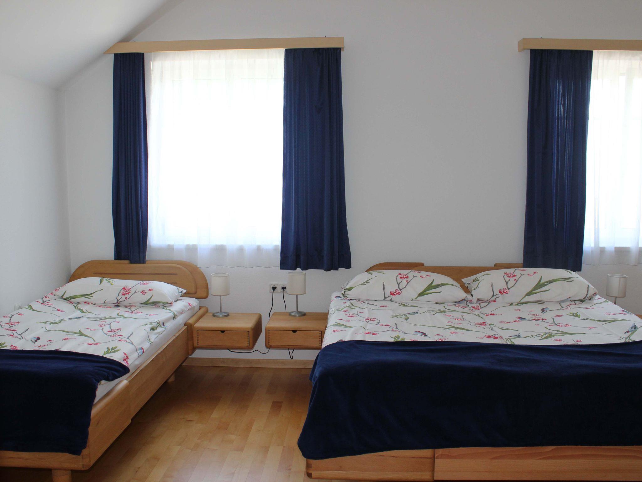 Obergeschoß: 1 Doppelzimmer, 1 Dreibettzimmer, Badezimmer mit Badewanne und Dusche und WC