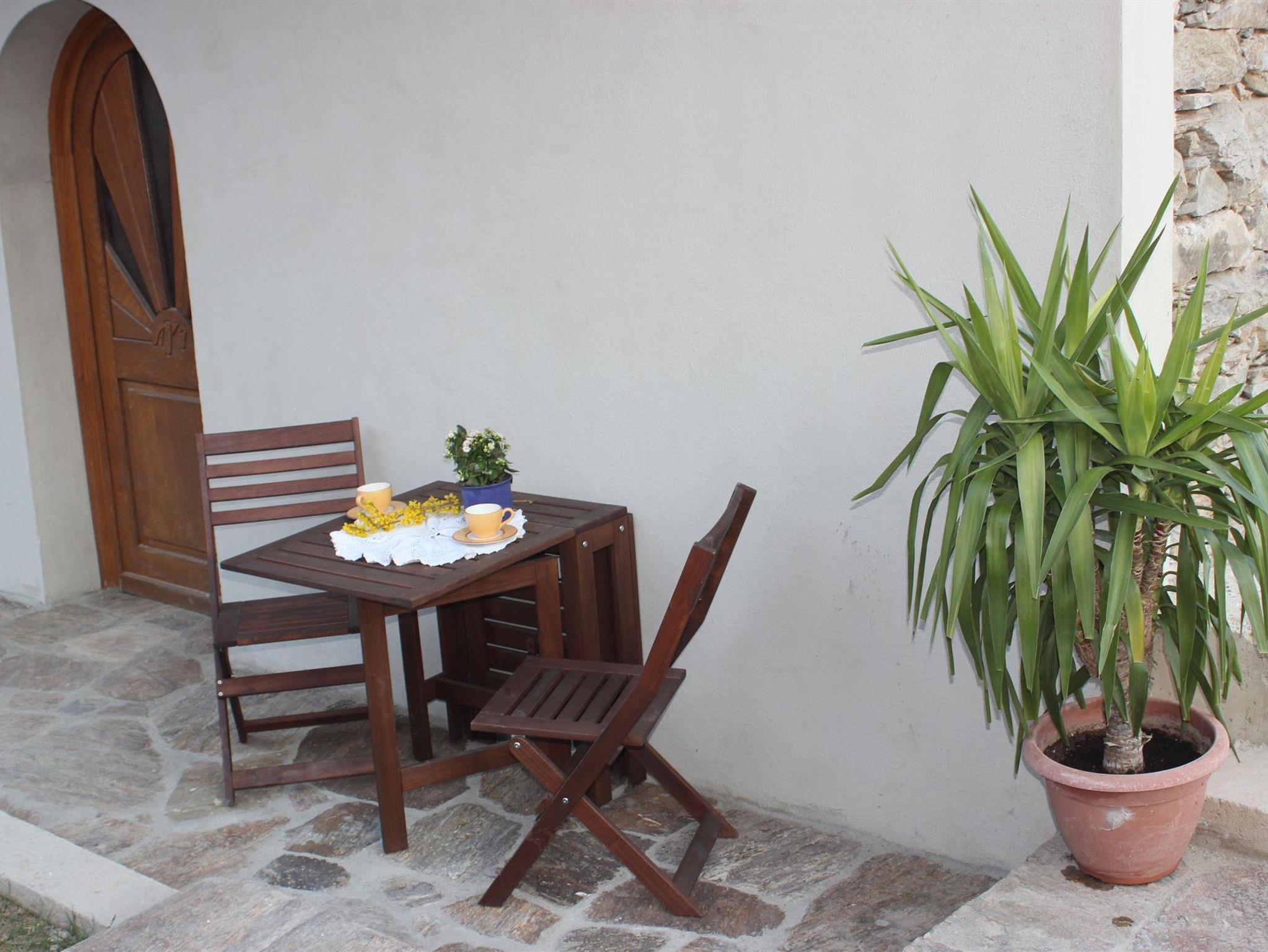 Jedes Zimmer hat einen privaten Sitzplatz im Freien.