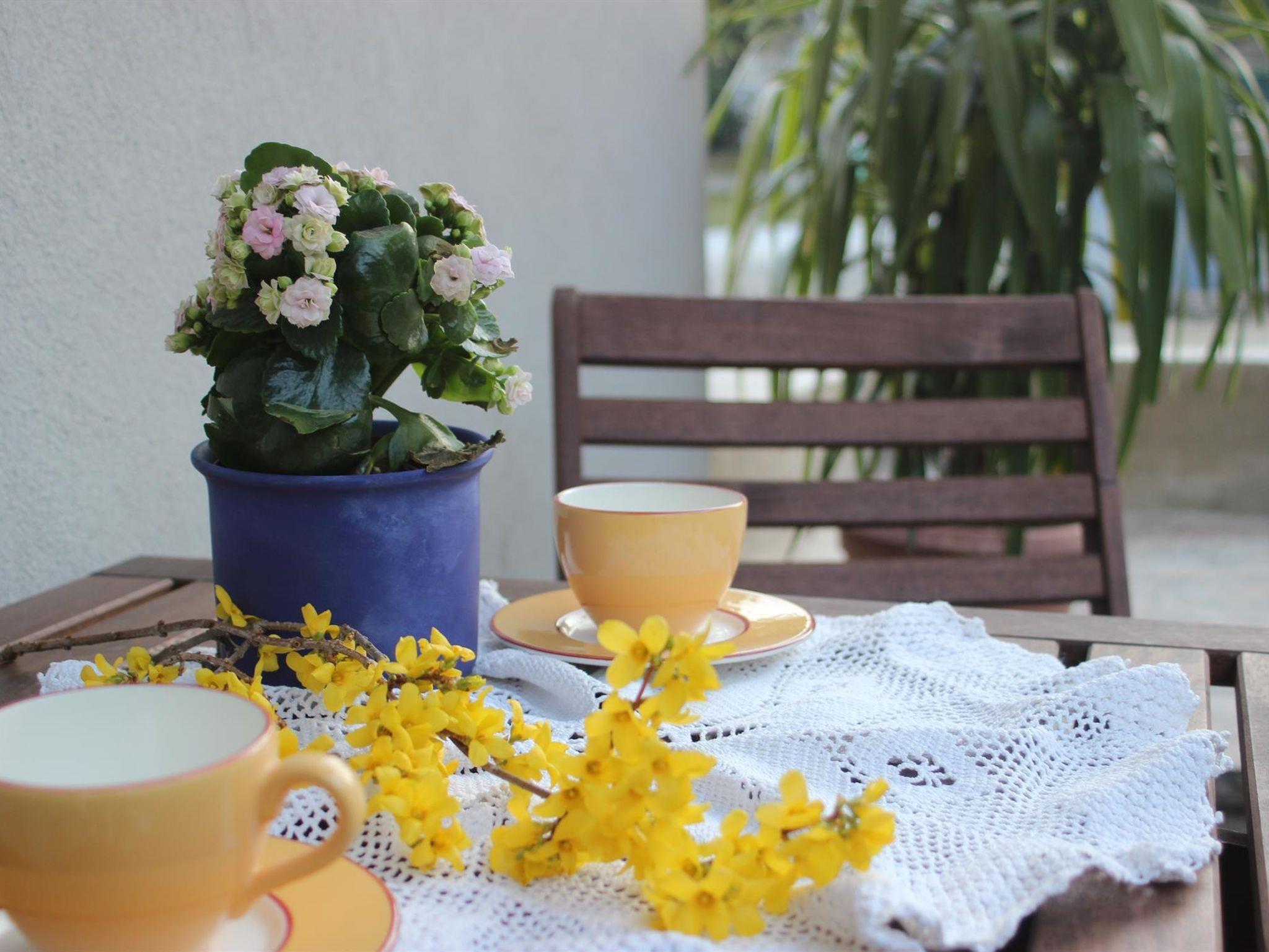 Jedes Zimmer hat einen privaten Sitzplatz im Freien.