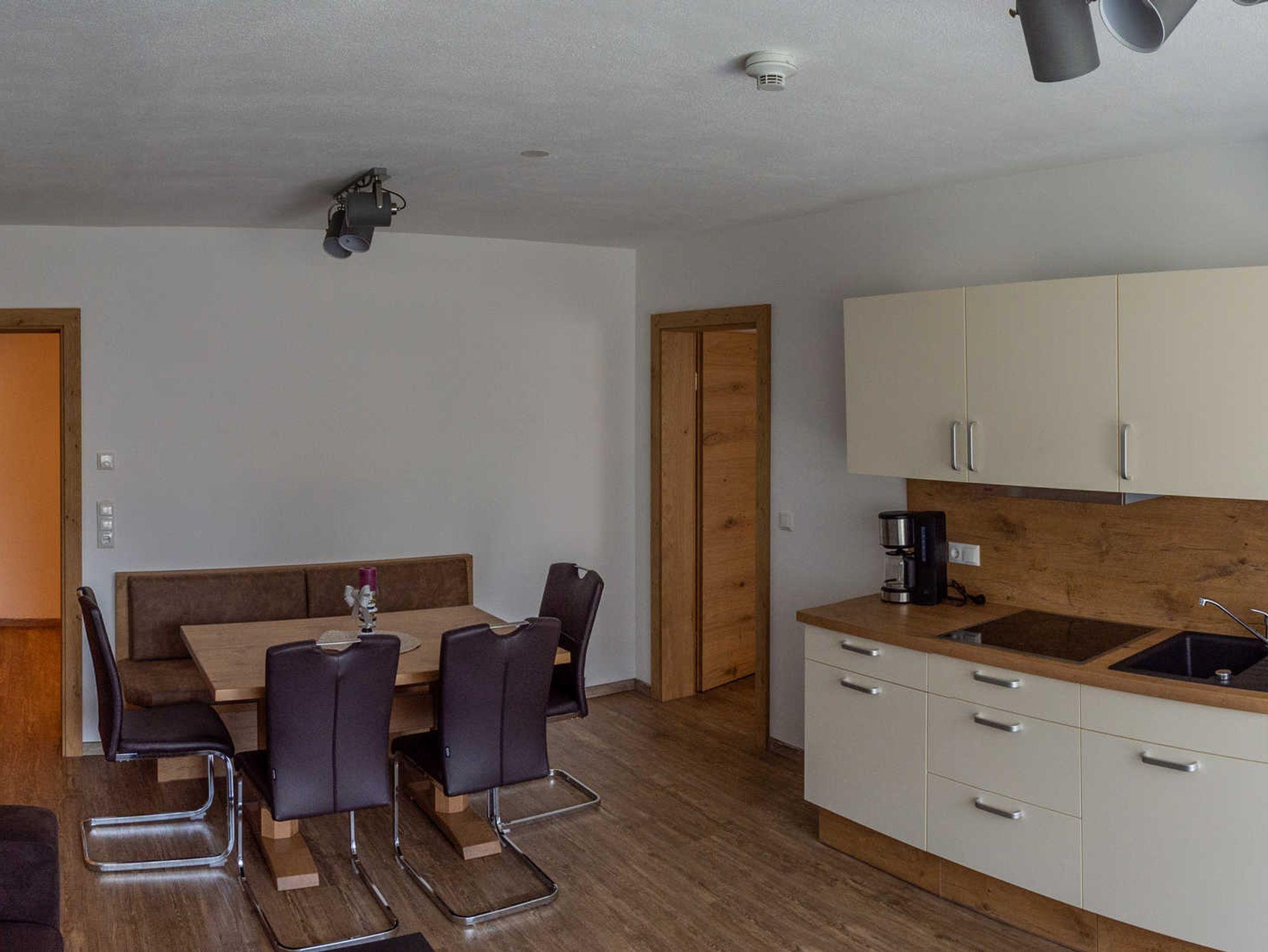 Sie verfügt über ein Schlafzimmer, 1 Kinderzimmer (mit 2 Einzelbetten) und eine geräumige Wohnküche, Bad und WC getrennt. Im geräumigen Vorraum befindet sich auch eine Infrarotkabine, die einen bei schlechtem Wetter wärmt. Die Wohnung kann für 4 – 5 Personen genützt werden, bei Bedarf aber auch mit einem zusätzlichen Schlafzimmer und nochmal Dusche/WC zu einer großen Wohnung für 6 – 8 Personen vergrößert werden. Ab einer Belegung von 5 Personen ist die Wohnung online nicht buchbar. Bitte um direkte Anfrage.