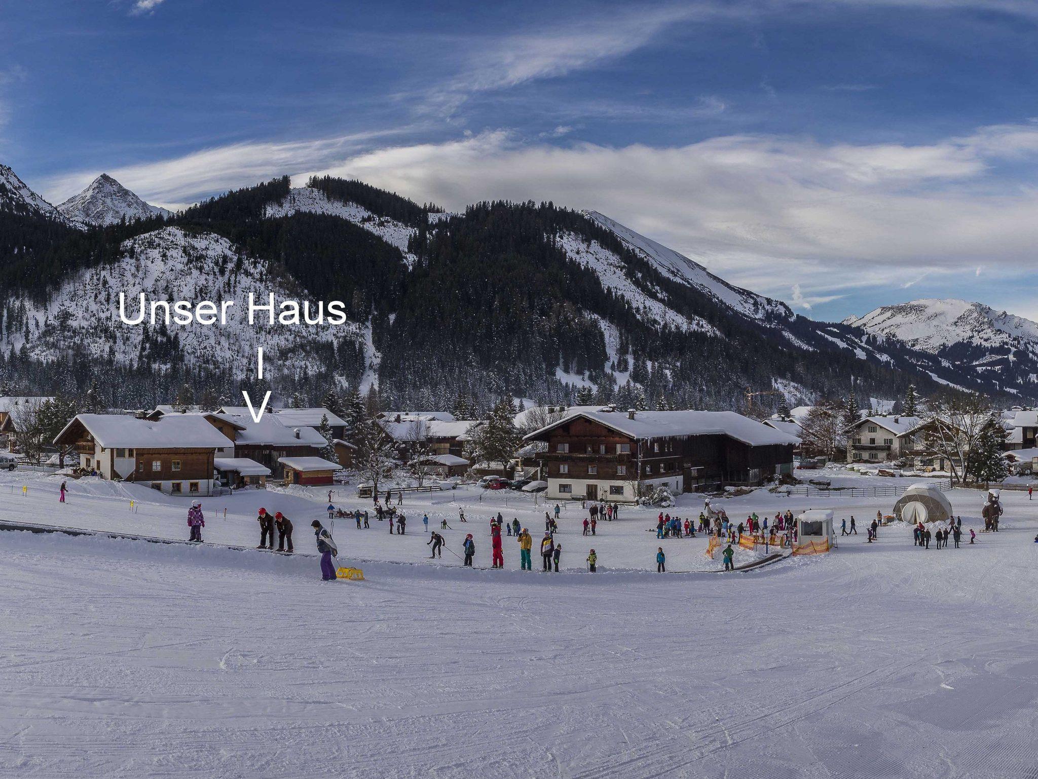 Sportliche Urlauber können direkt hinter dem Haus ins Skigebiet Tannheim/Neunerköpfle starten oder am Haus in die Loipe einsteigen. Für Familien führt der Weg zum Kinderskigelände nur über die Straße. Dort finden Sie den Anfängerhang ICE AGE und die Skischule.