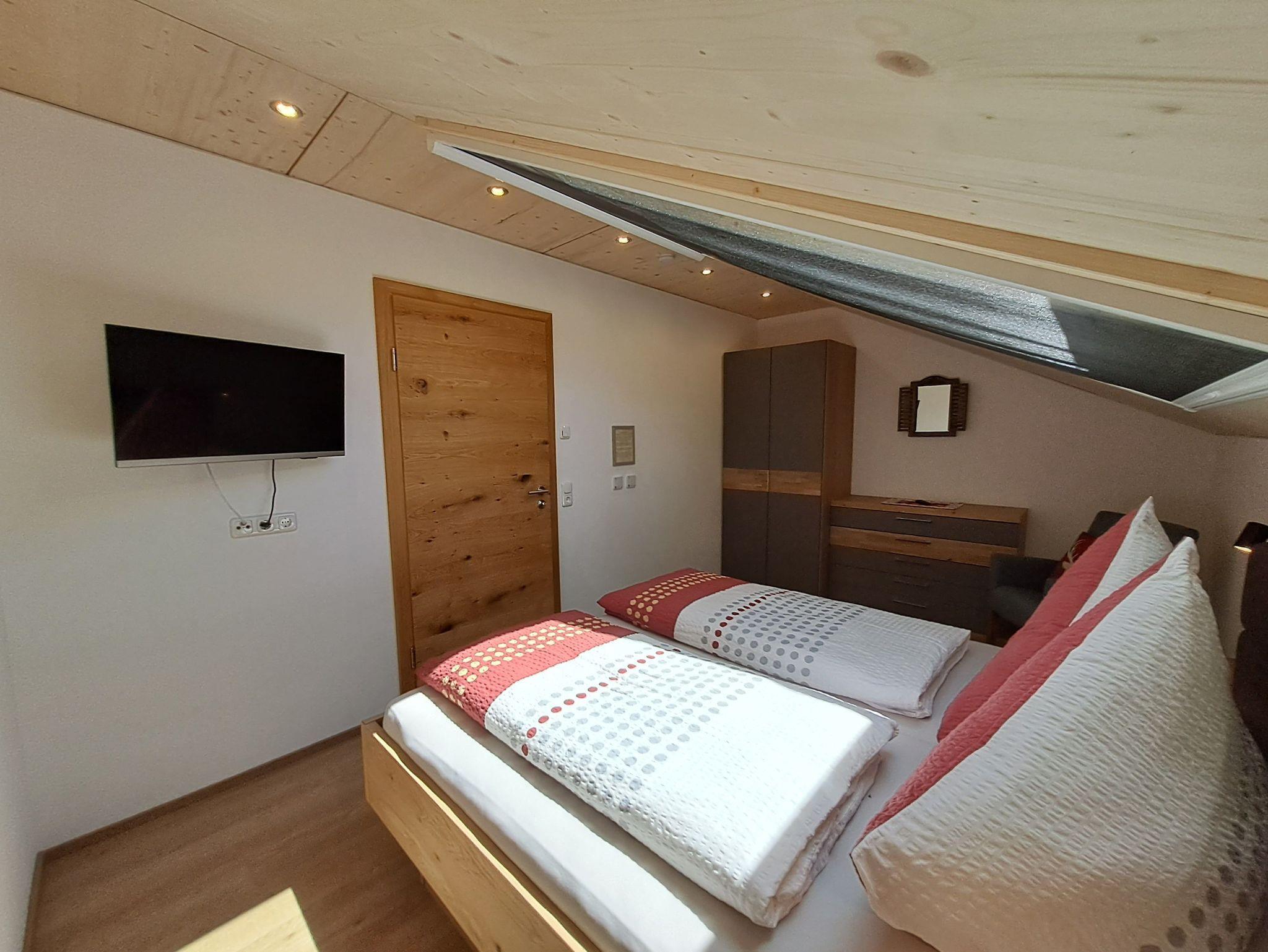 großem Dachfenster (voll automatisch) wartet auf Sie ein bequemes Doppelbett (180x200, mit Bettwäsche) und ebenfalls ein großer Flat- TV.