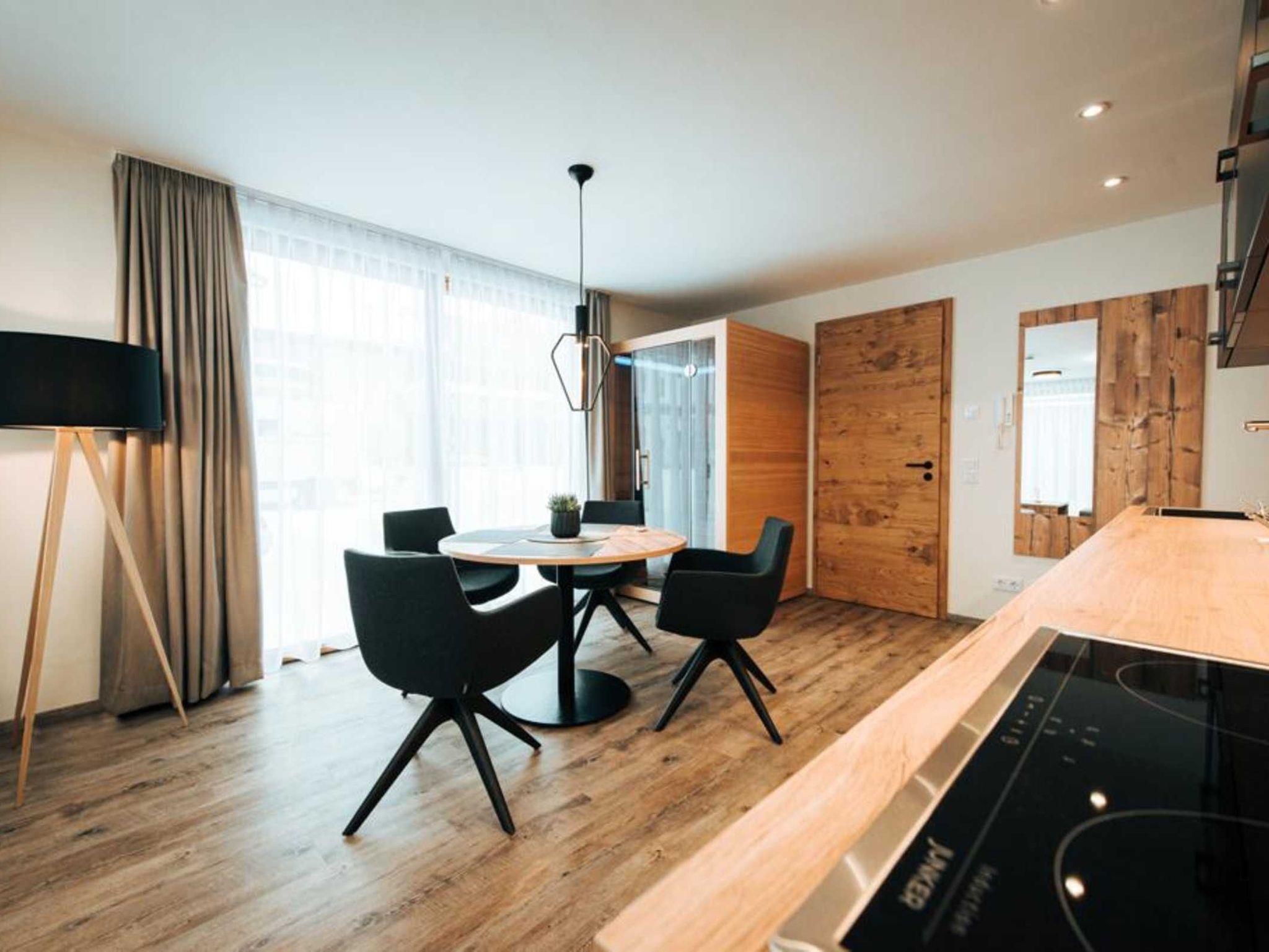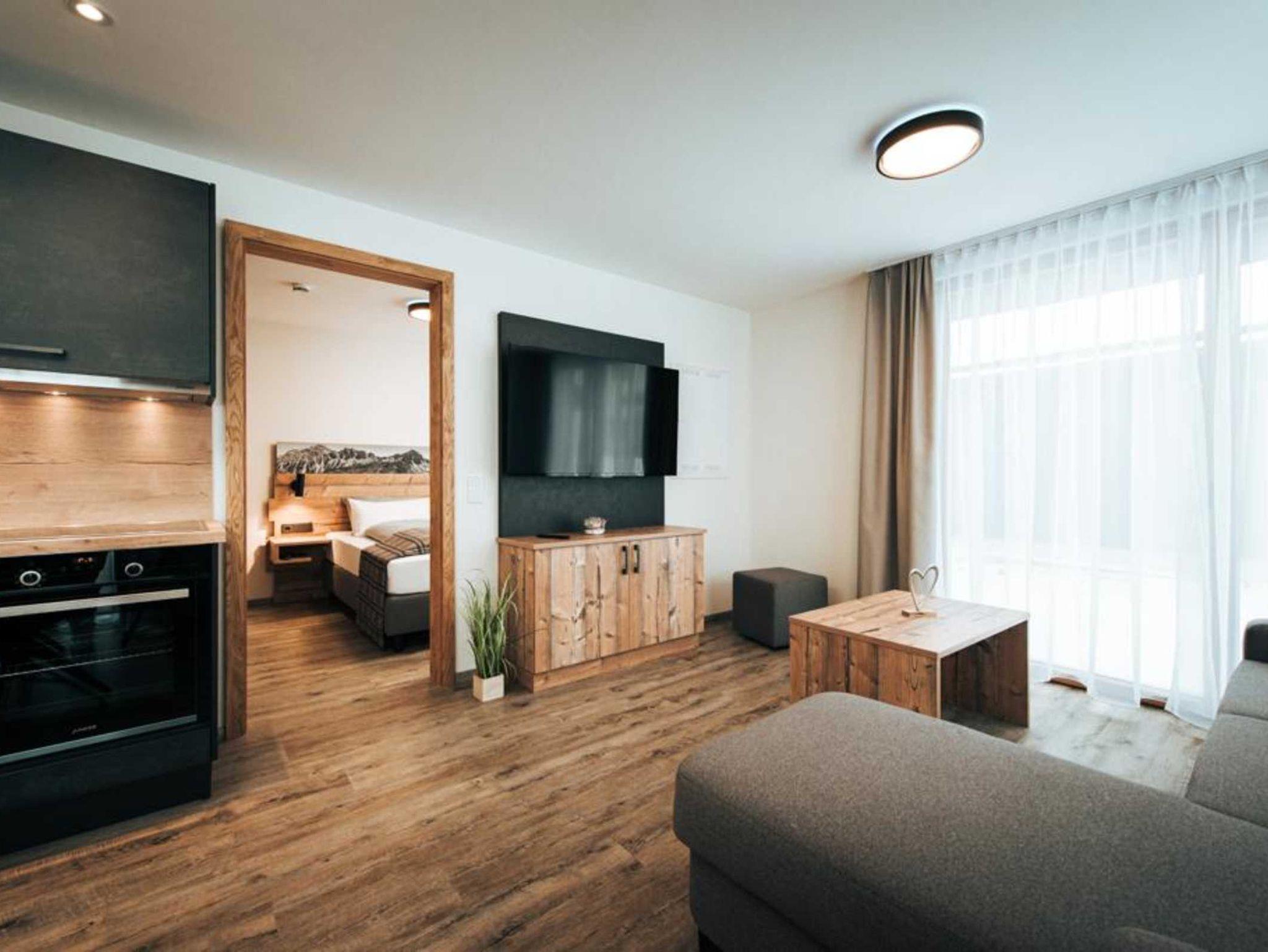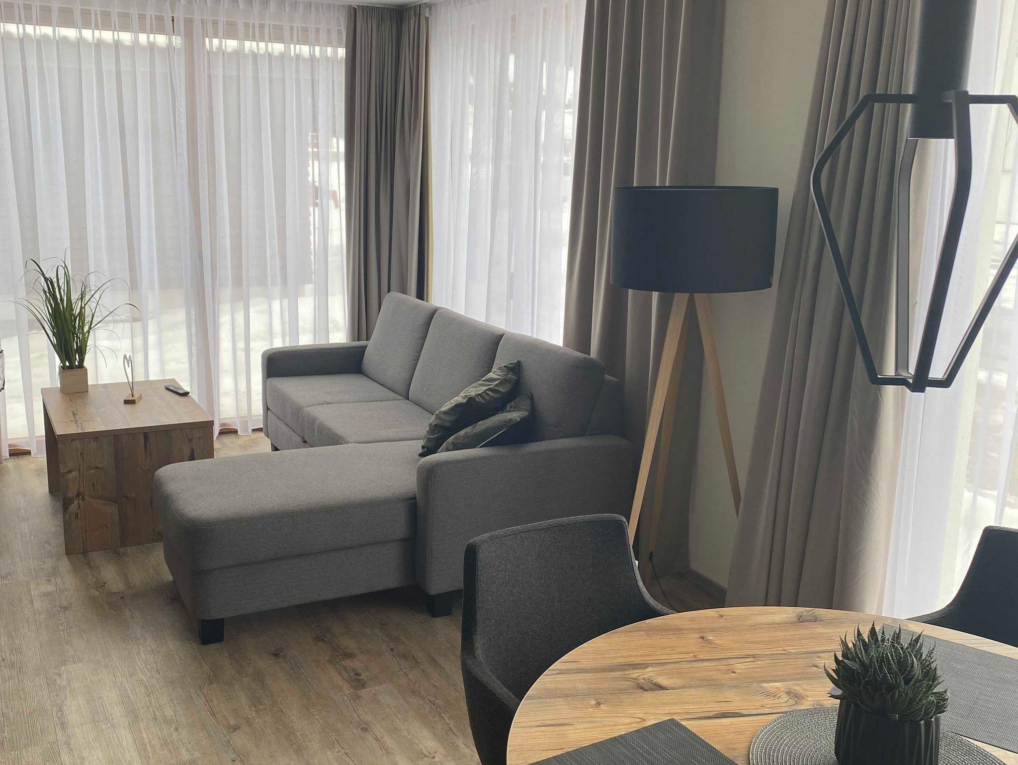 Sie blicken direkt in die umliegende Bergwelt und genießen den Komfort unserer hochwertig ausgestatteten Ferienwohnungen im rustikal-modernen Alpin-Style.