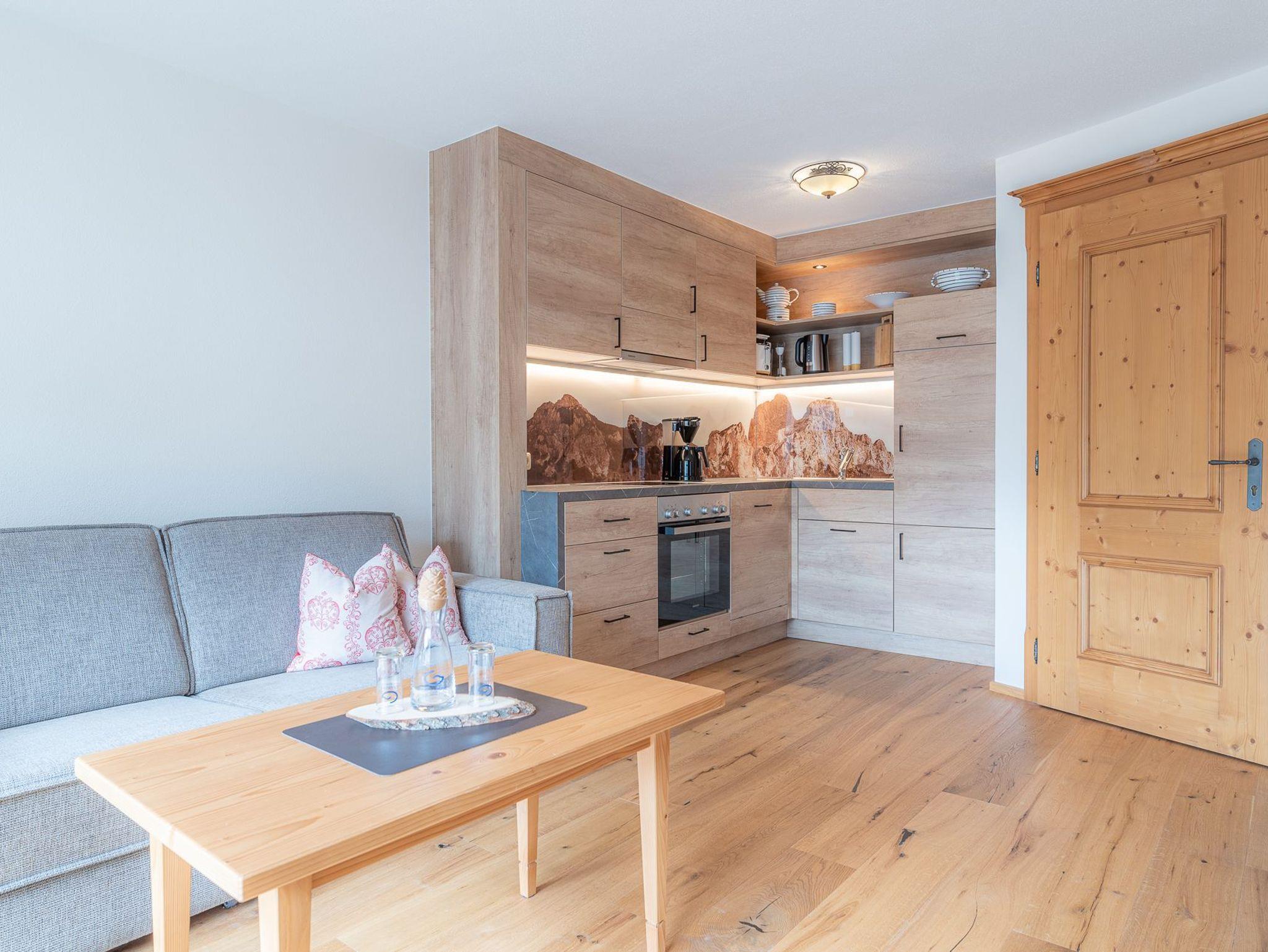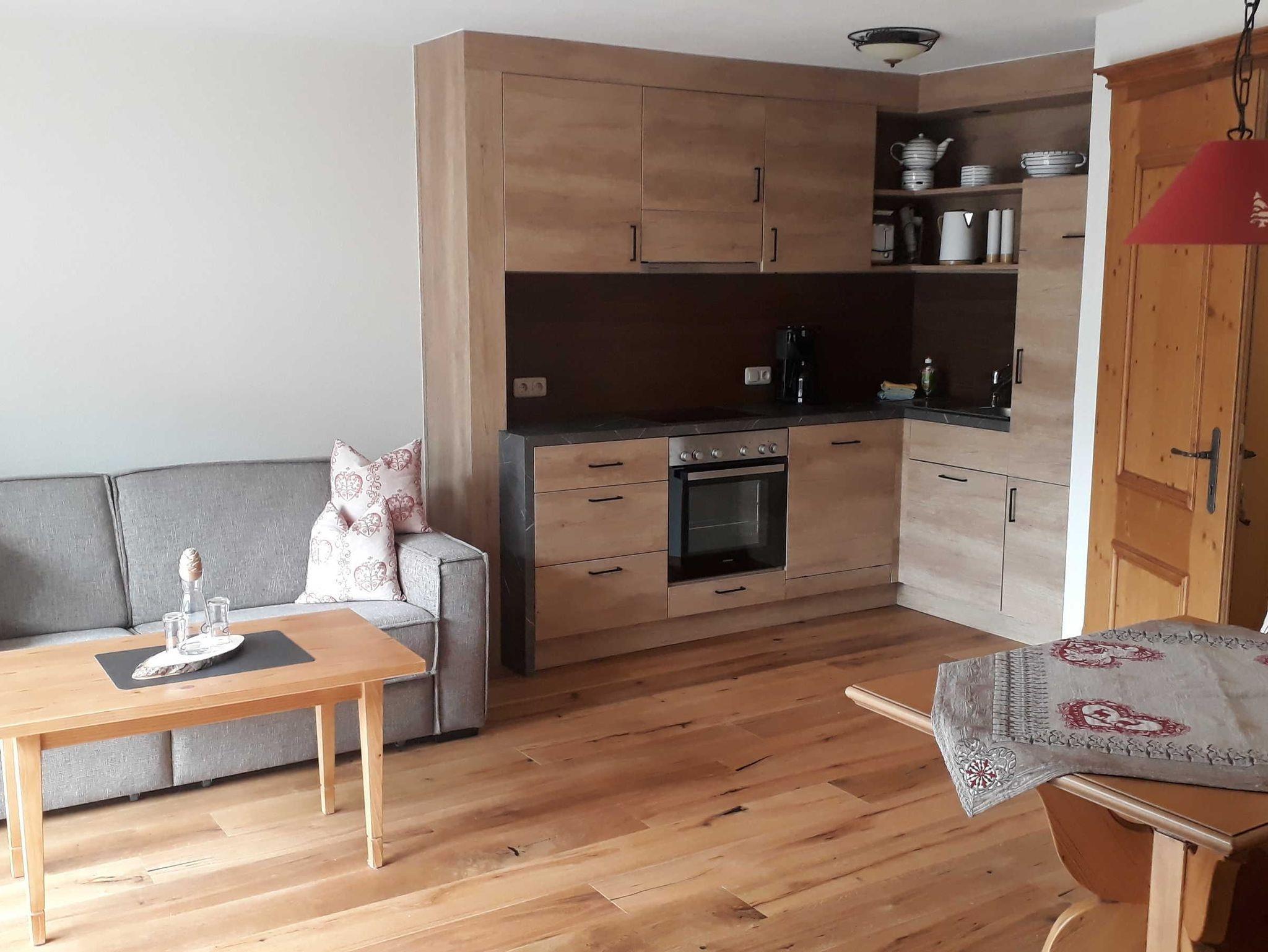 Apartment im Landhausstiel mit großen süd Balkon, Küche mit Backrohr und Geschierspüllmaschine. Gemütliche Doppelcouch