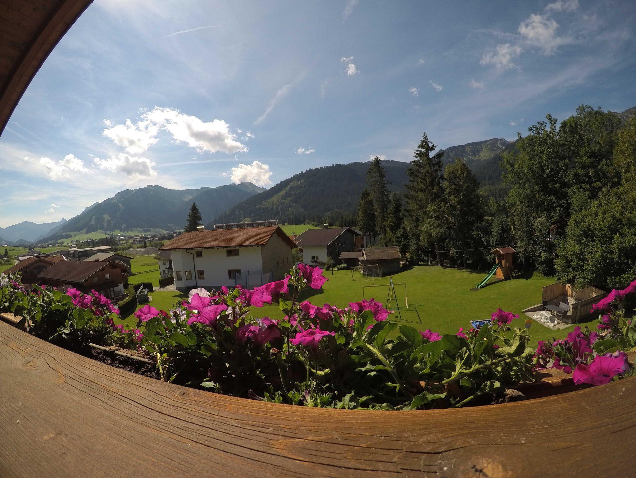 mit Ausblick Richtung Wald und Wiese und Bergblick zum Hausberg dem Einstein.