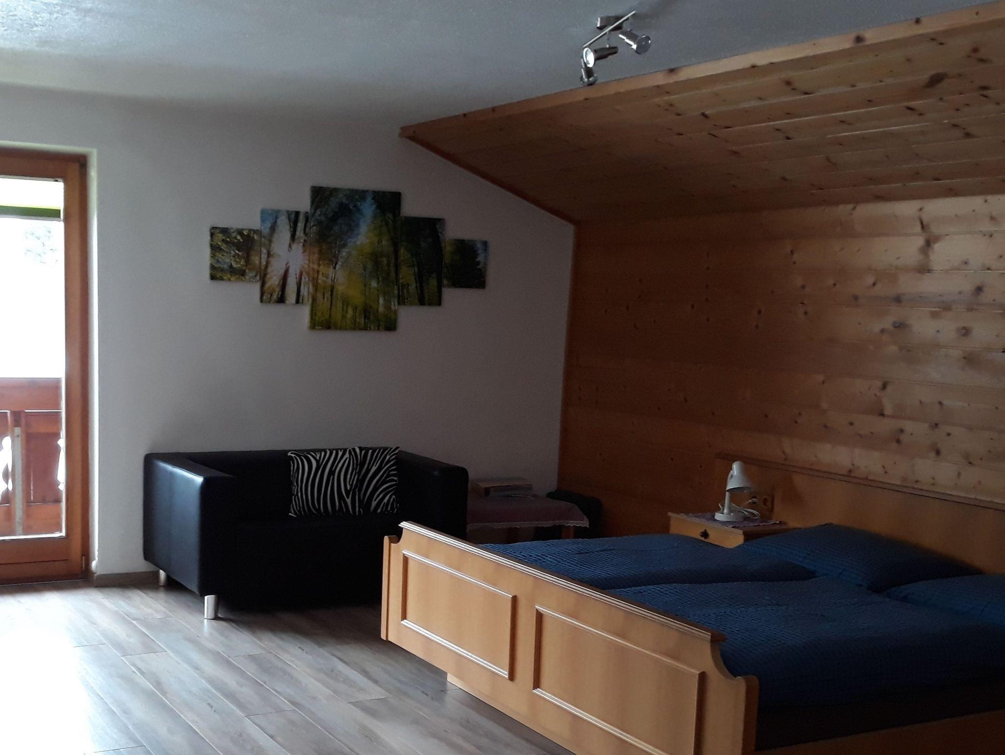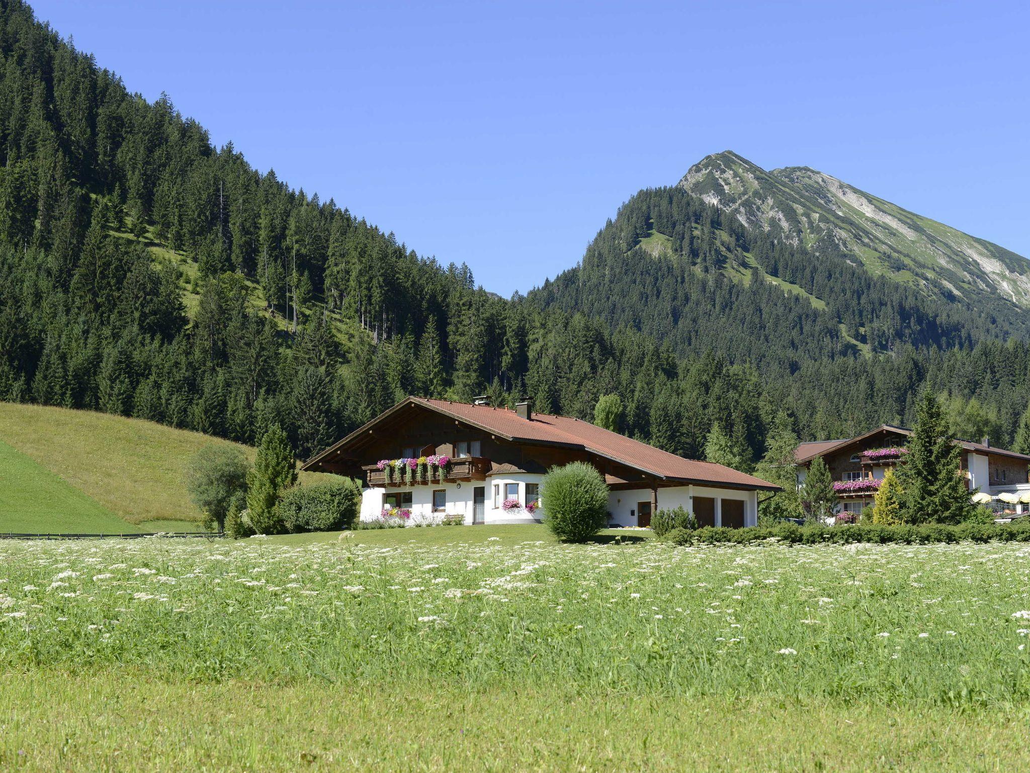 Unsere Ferienwohnungen sind 35-55 m² groß mit freiem Blick auf die Tannheimer Berge.