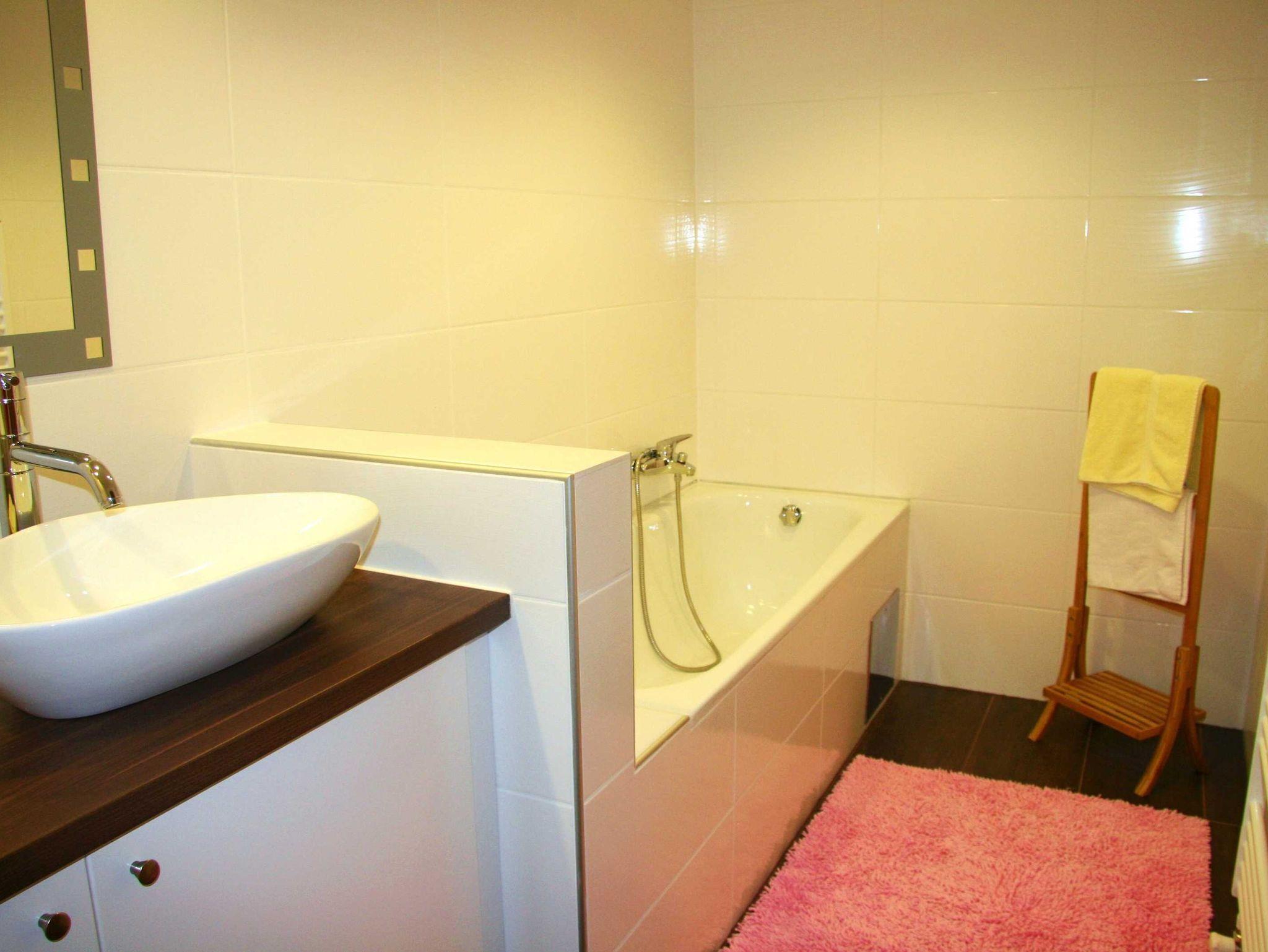 Doppelwaschtisch und Badewanne, ein großzügiger, offener Wohn- und