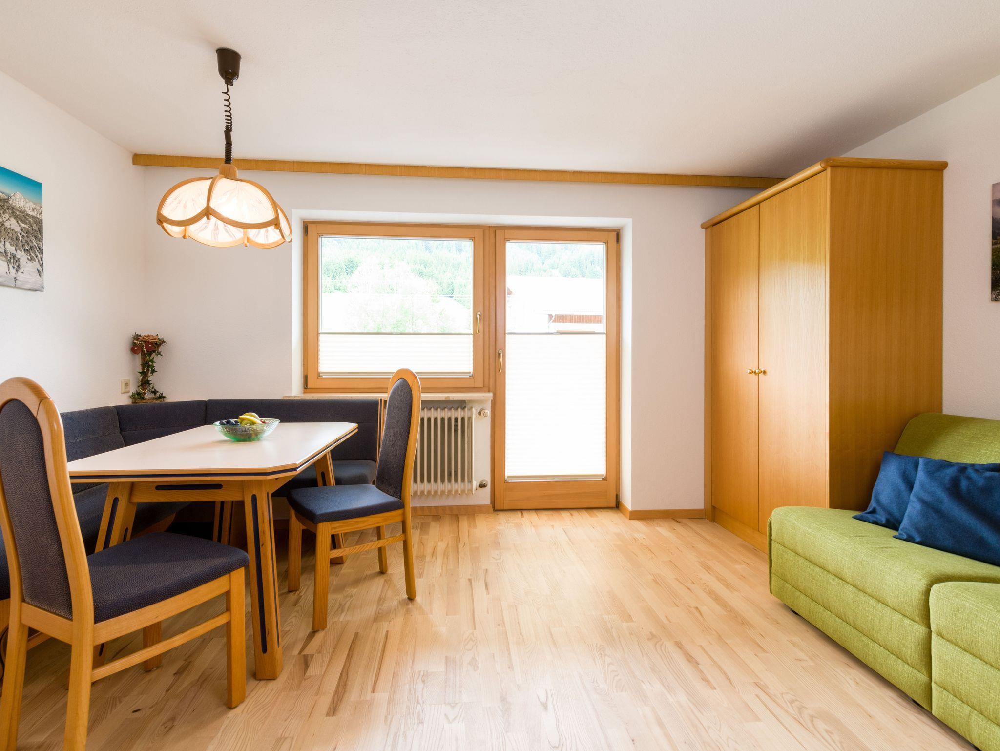 Appartement Lärche liegt südseitig im 1. OG und bietet auf ca. 48 m² genügend Platz um sich mit 2, 3 oder 4 Personen zu erholen. Eignet sich hervorragend für Familien, Gruppen aus 2 Paaren, da Bad und WC von beiden Schlaf - bzw. Wohnschlafzimmern zugänglich sind. Modern und komfortabel eingerichtet.