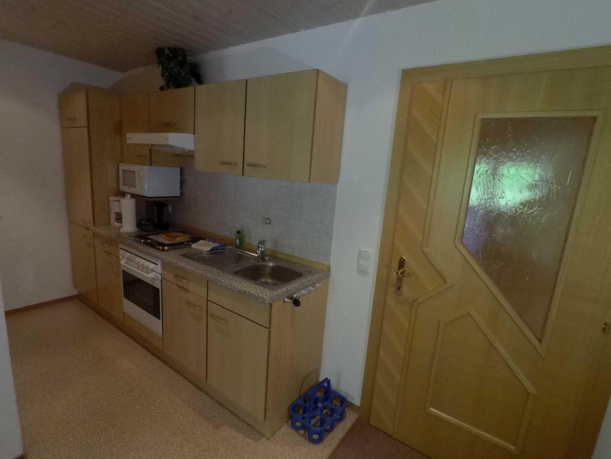 Die Küche ist ausgestattet mit mit Mikro, Backofen, Kaffeemaschine, Eierkocher,