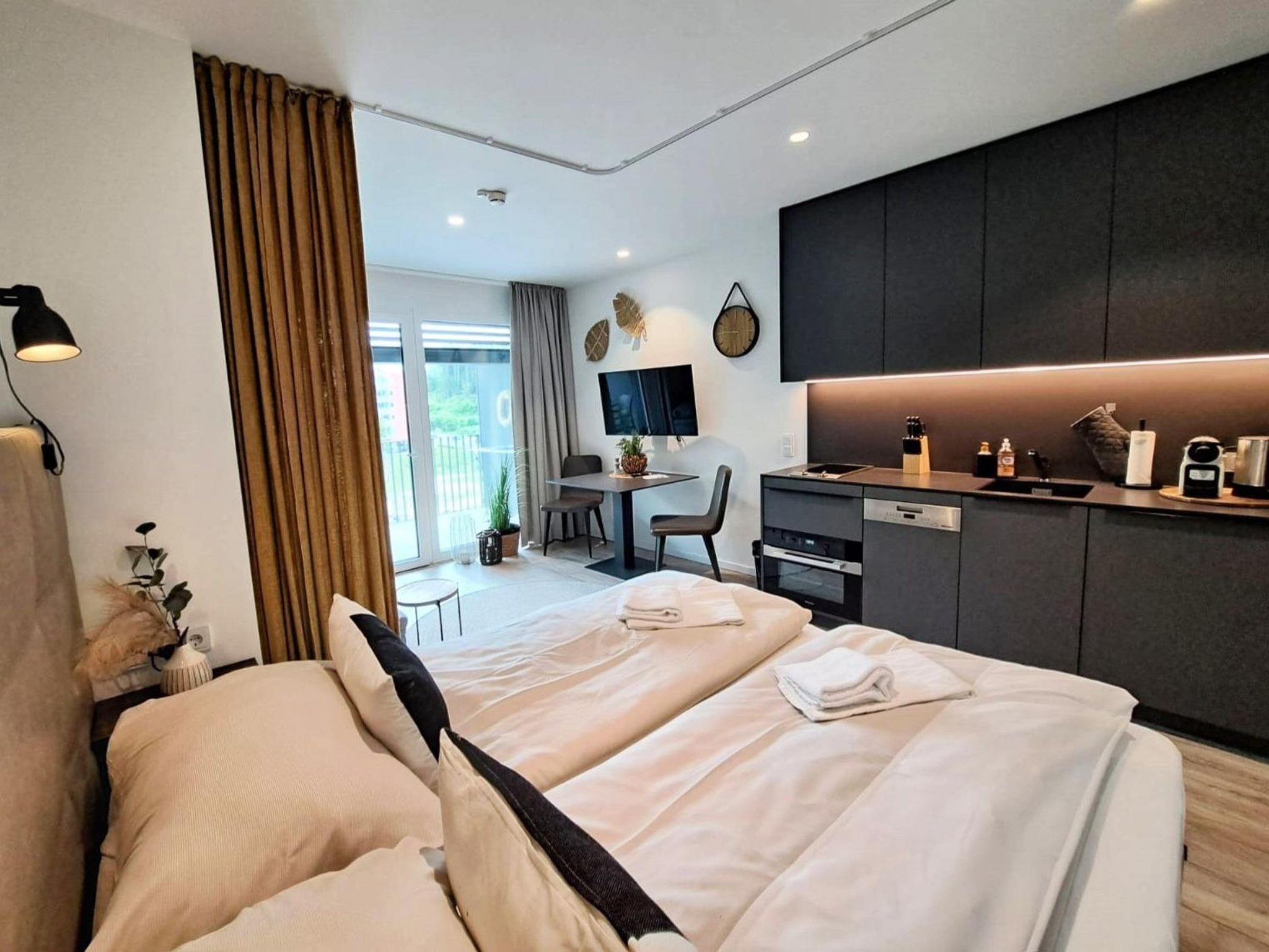 Die Ferienwohnung bietent luxuriöse Ausstattung, die höchsten Komfort garantiert. Erholen Sie sich im stilvoll eingerichteten Apartment mit bequemen Doppelbett, Bad und mit einem Smart-TV. Die Küchenzeile lädt zum Kochen ein und lässt keine Wünsche offen.