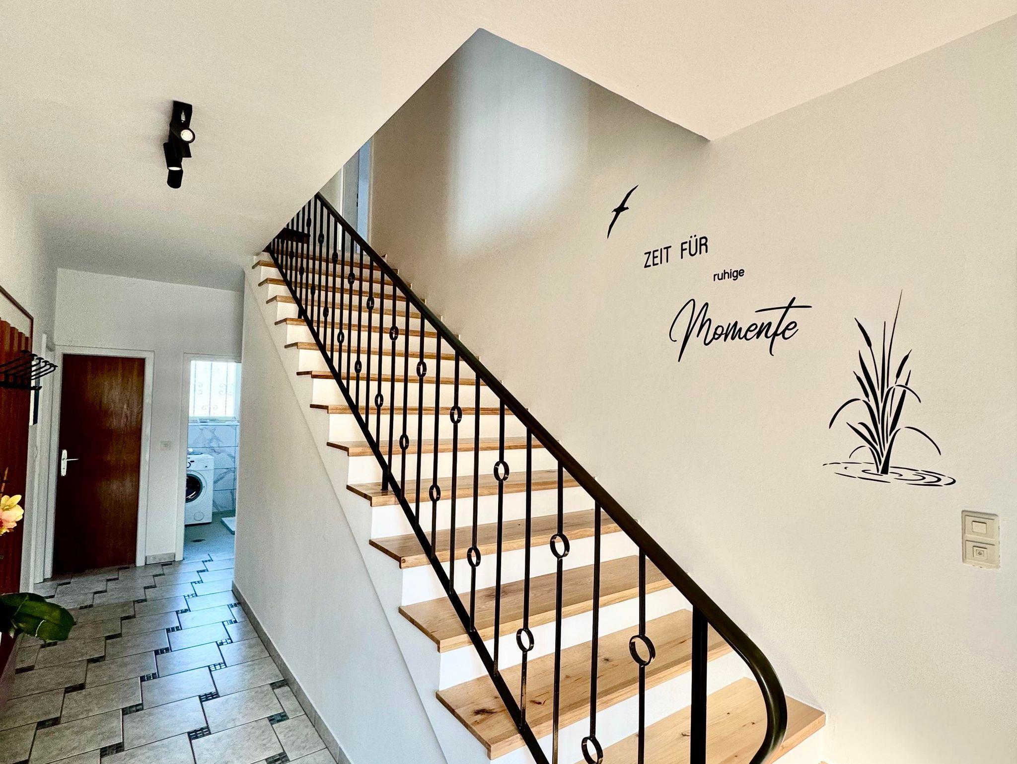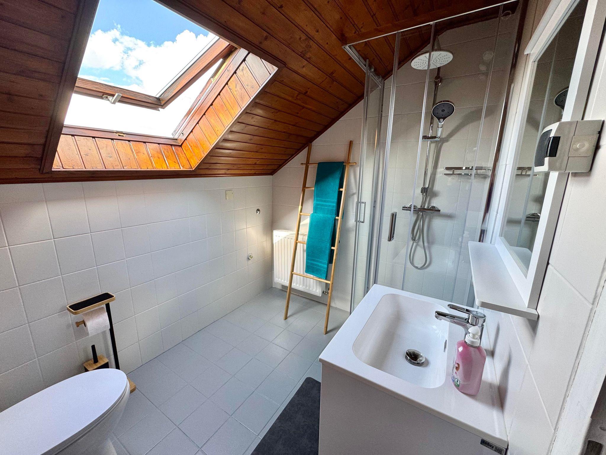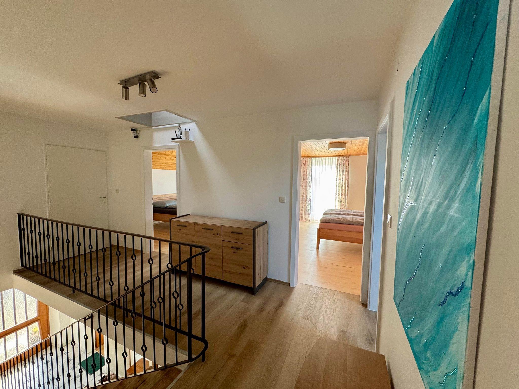 Im Obergeschoss erwarten dich drei Doppelzimmer, zwei davon mit Balkon, sowie ein weiteres Badezimmer mit Dusche und WC.