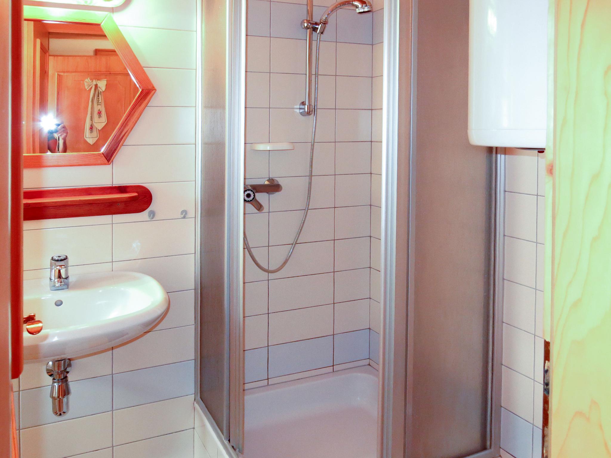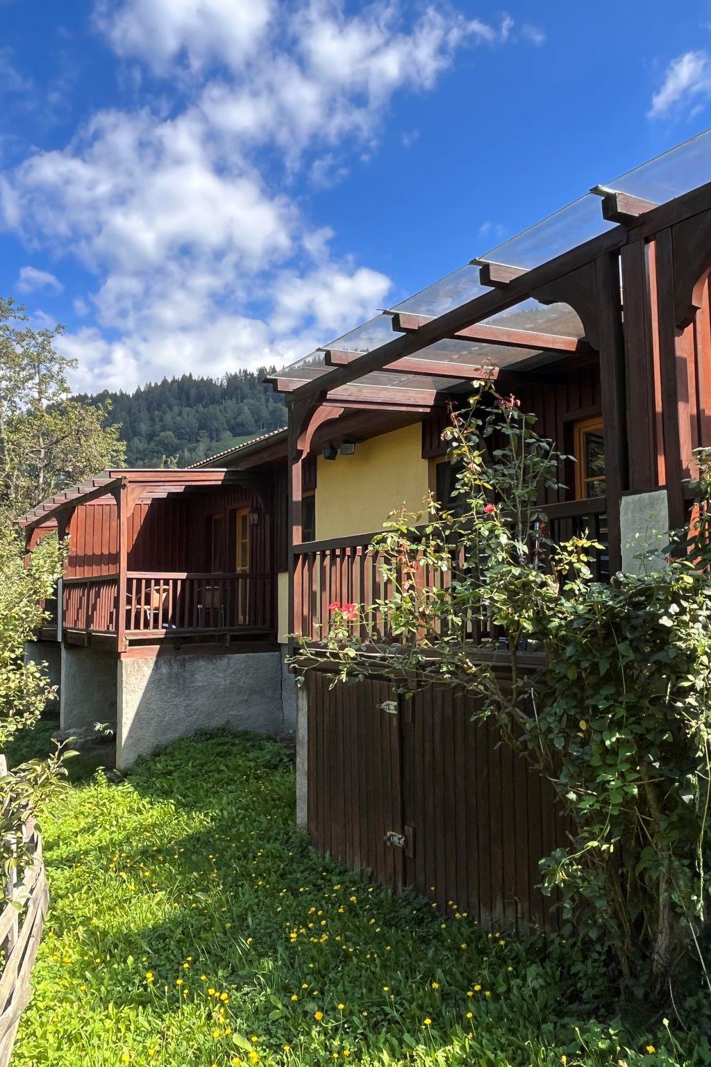 "Kunzhof", 3-room apartment 48 m2, on the ground floor. Cosy furnishings: living/dining room with dining nook and satellite TV. Exit to the terrace. 1 double bedroom. 1 room with 2 beds. Small, open kitchen (4 hot plates, oven, toaster, kettle, electric coffee machine). Shower, sep. WC. Electric heating. Parquet floors. Terrace roofed. Terrace furniture. Facilities: children's high chair, baby cot. Internet (WiFi, free). Please note: maximum 1 pet/ dog allowed. Smoke alarm.