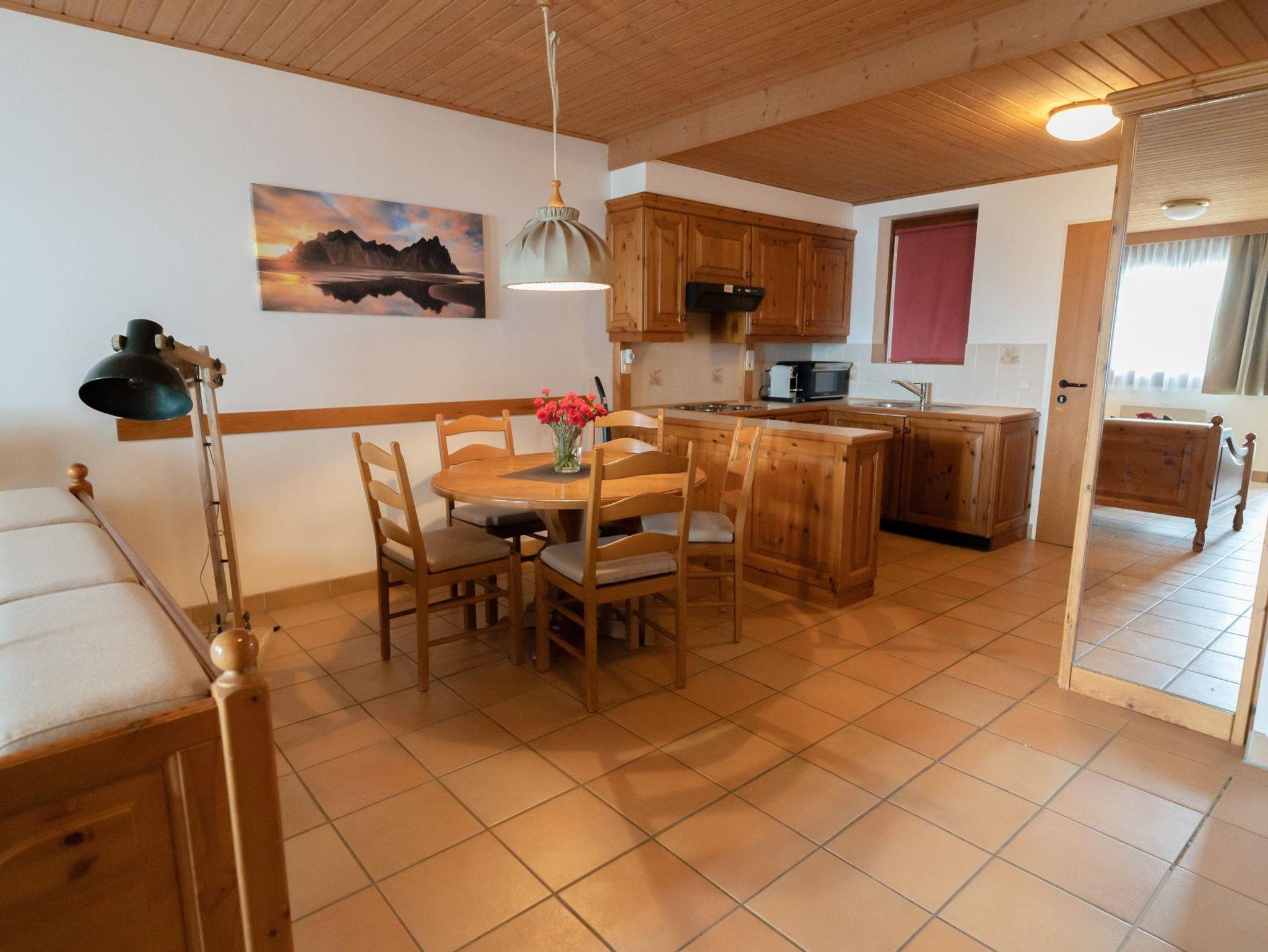 Das 78m2 große Apartment im regionalen Stil verfügt über einen Balkon und bietet Platz für bis zu 6 Personen. Das Apartment ist ausgestattet mit einem gemütlichen Wohnbereich, zwei separaten Schlafzimmern mit großem Doppelbett sowie ein Badezimmer mit Waschtisch, Dusche und WC und einem zweitem Badezimmer mit großzügigem Waschtisch und WC . Der gemütliche Wohnraum mit Flatscreen-TV lädt zum geselligen Beisammensein ebenso wie zu einem entspannten Fernsehabend ein. Im Wohnbereich befinden sich zusätzlich zwei Sofabetten, die auch als Doppelbett adaptierbar, genutzt werden können. Die integrierte Küche mit Herd, Kühlschrank, Gefrierfach, Wasserkocher und Kaffeemaschine ist bestens ausgestattet, um auch selbst einmal ein paar Köstlichkeiten zuzubereiten.