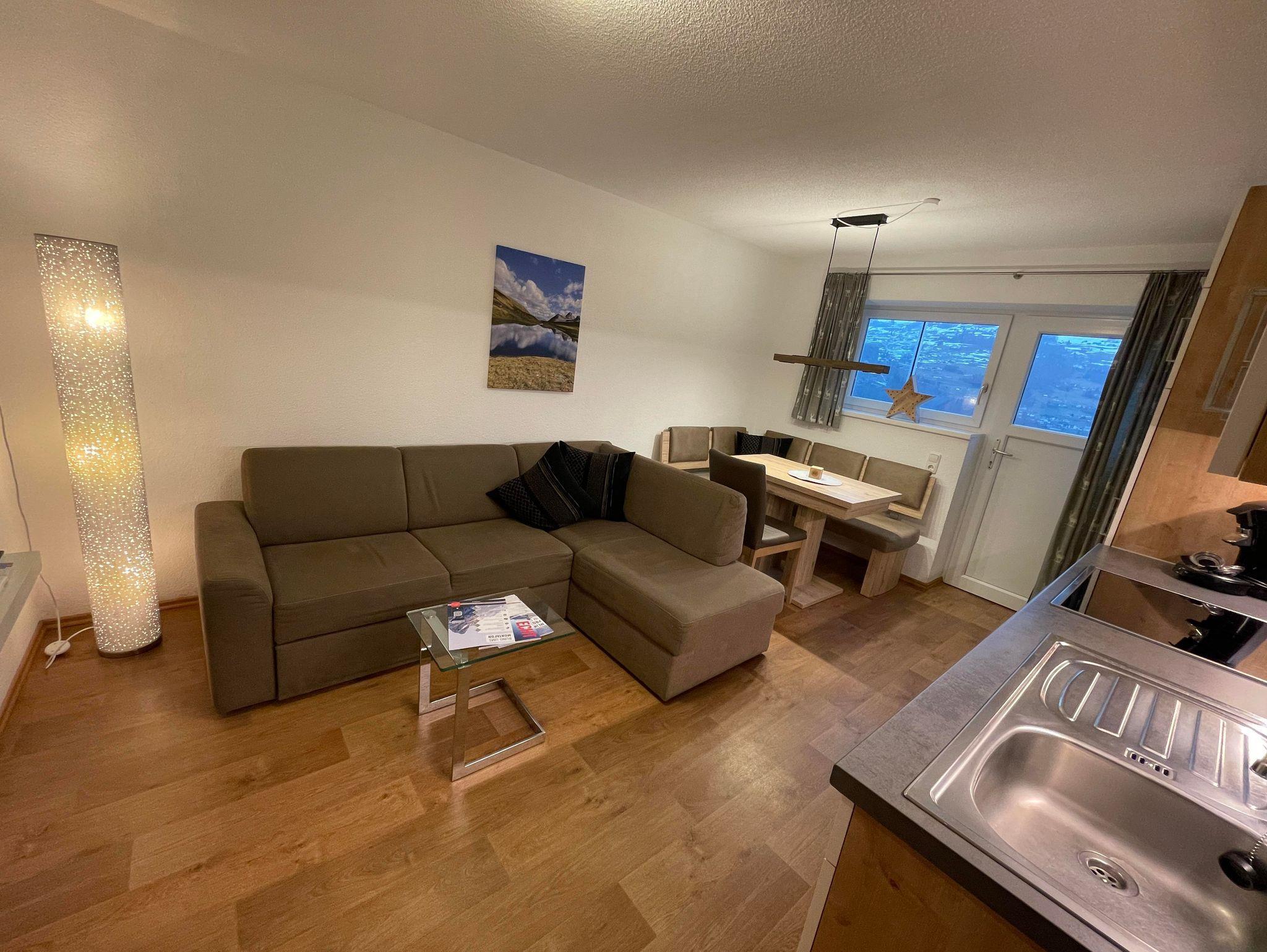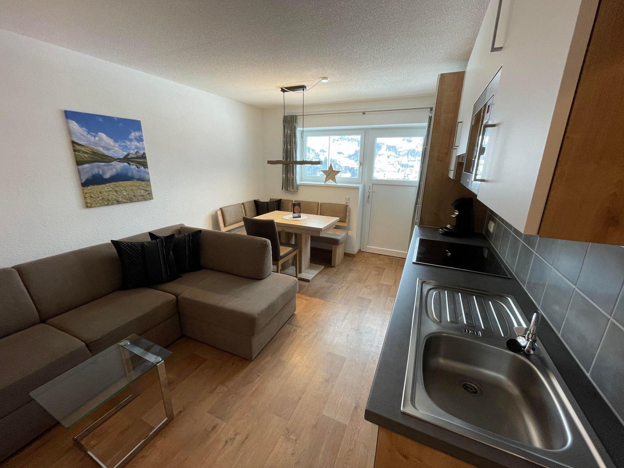Wohnung für 1-3 Personen, 38m², separater Eingang, moderne Wohnküche mit Backrohr, Kühl-Gefrierkombination, Mikrowelle, Geschirrspüler, Kaffeemaschine, Toaster, Sat-TV + Radio, W-Lan, 1 Schlafzimmer mit Doppelbett und Einzelbett, Dusche/WC, Handtuchwärmer, Liegewiese, Skiraum mit Skischutrockner und wunderbarem Ausblick.