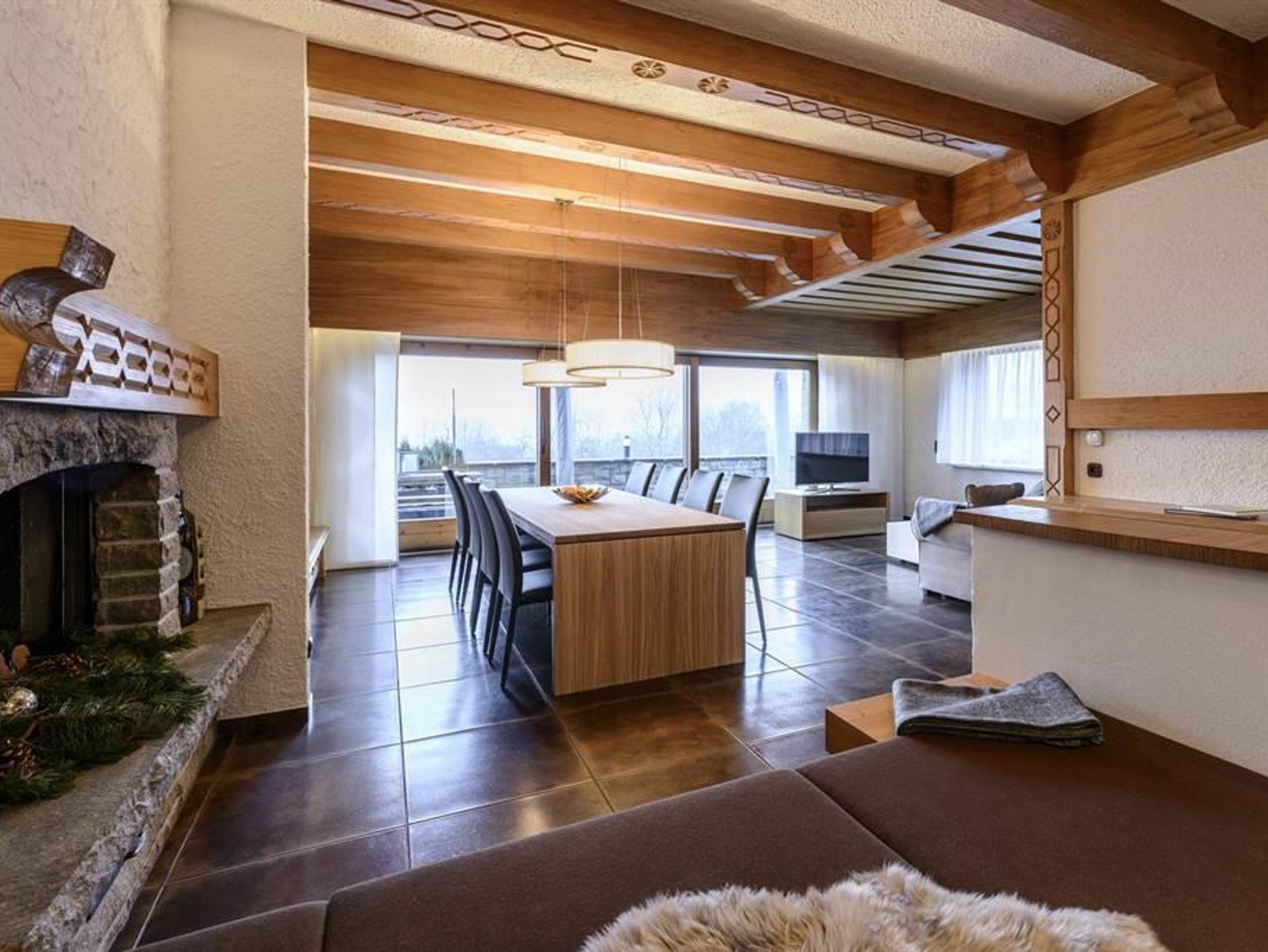 App. Rätikon: 4-9 Pers. Erdgeschoss, drei Schlafzimmer - zwei mit Doppelbett und das 3. mit Etagenbett und ausziehbarer Schlafcouch, komplett ausgestattete Küche, 2 Bäder, 2 WC extra, grosses Wohnzimmer mit Sitzecke und Essbereich, plus zusätzliche Schlafmöglichkeit für 2 Personen am Kamin, Kabel-TV, Radio, W-lan, große Sonnenterrasse, Gartennutzung