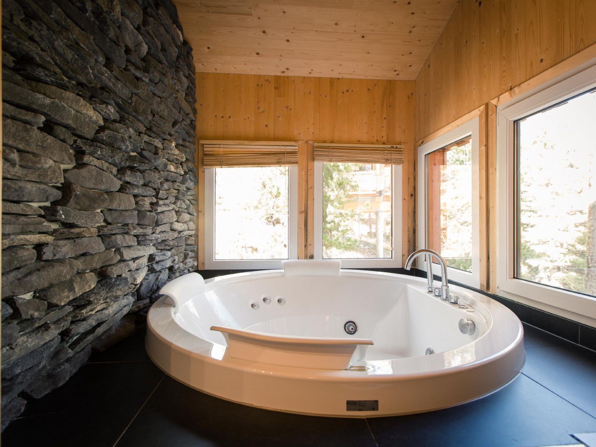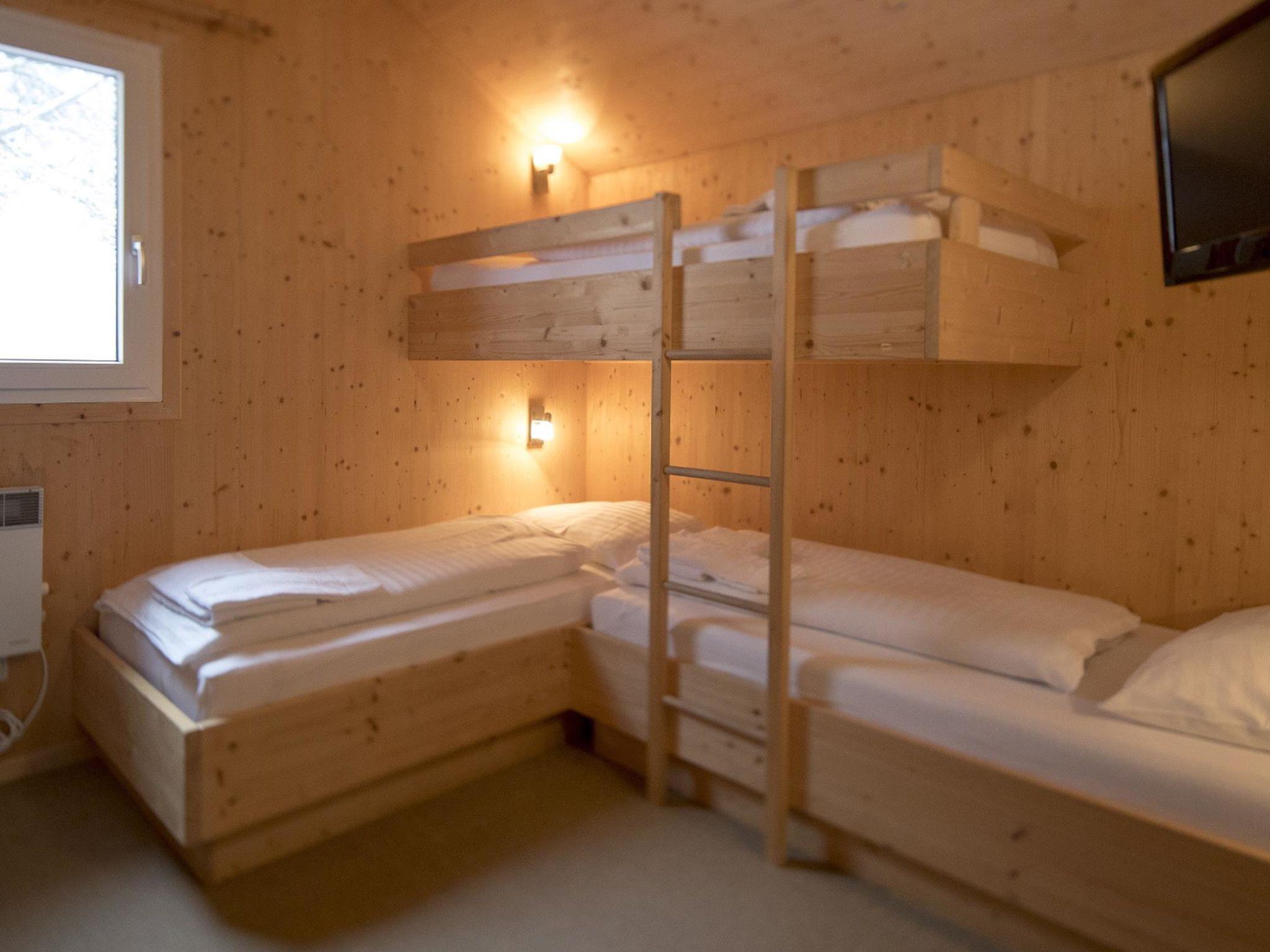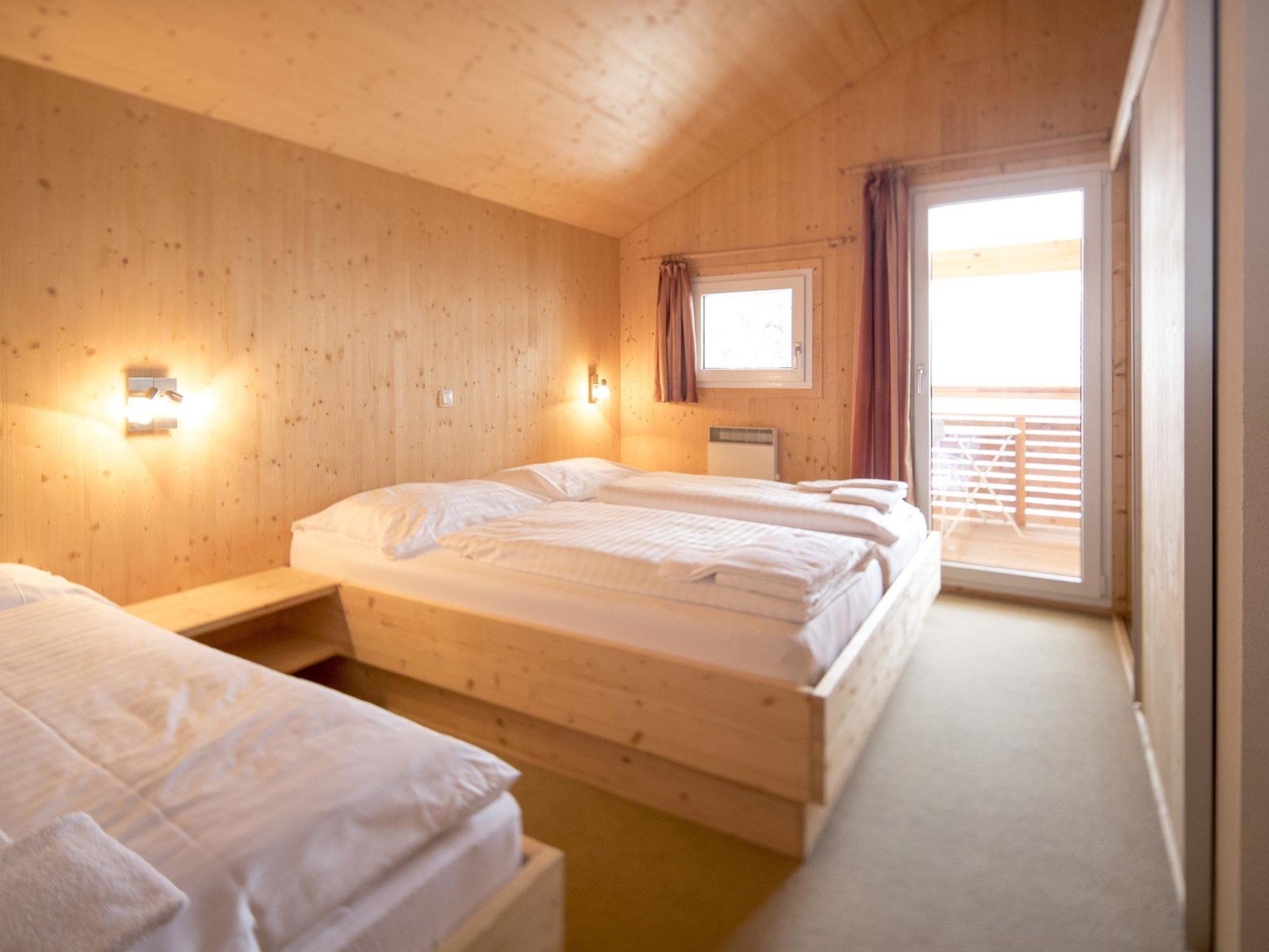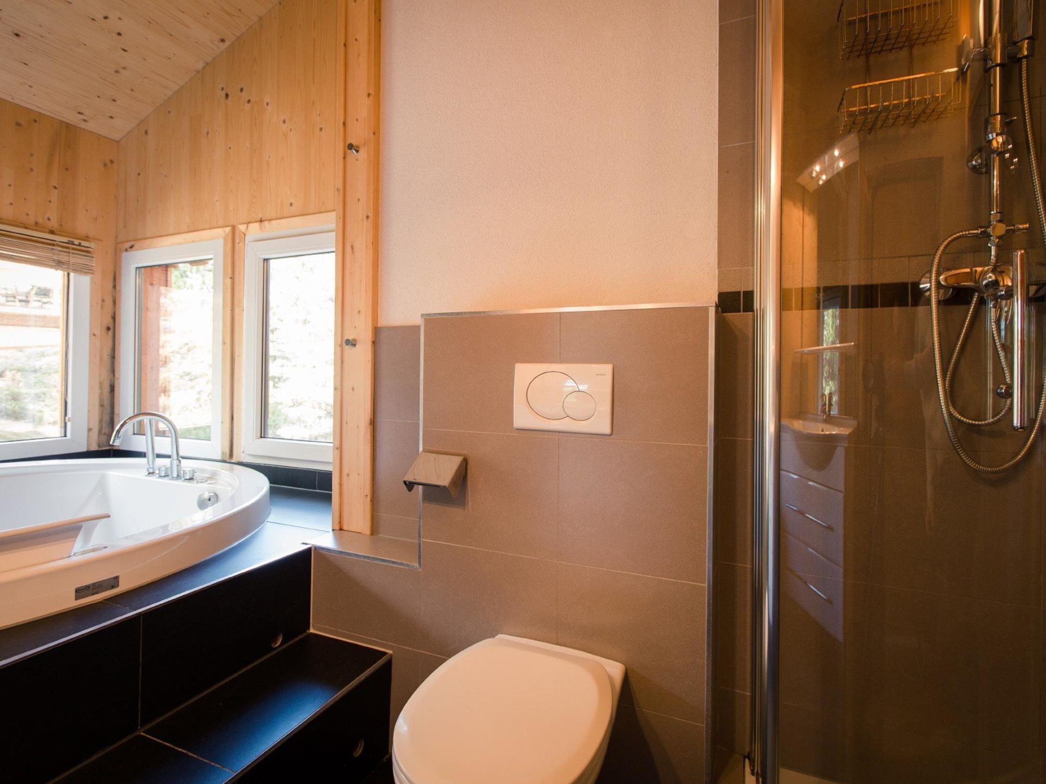" 10 mit Sauna und Sprudelbad Innen", 7-room chalet 160 m2. Spacious, luxurious and wooden furniture furnishings: living/dining room with dining nook and satellite TV (flat screen). 1 double bedroom. Open kitchen (oven, dishwasher, 4 ceramic glass hob hotplates, toaster, kettle, microwave, electric coffee machine). Shower/WC. Upper floor: 1 room with 2 beds. 1 room with 1 bed and 1 double bed. 1 room with 3 beds and 1 x 2 bunk beds. 1 room with 1 x 2 bunk beds. Living/sleeping room with 1 x 2 bunk beds. Bath/WC, shower/WC, hydro massage bath, Sauna. Balcony, terrace. Terrace furniture. Beautiful view of the mountains. Facilities: Internet (WiFi, free). Please note: non-smokers only. The sauna in the wellness pool is an infrared sauna.