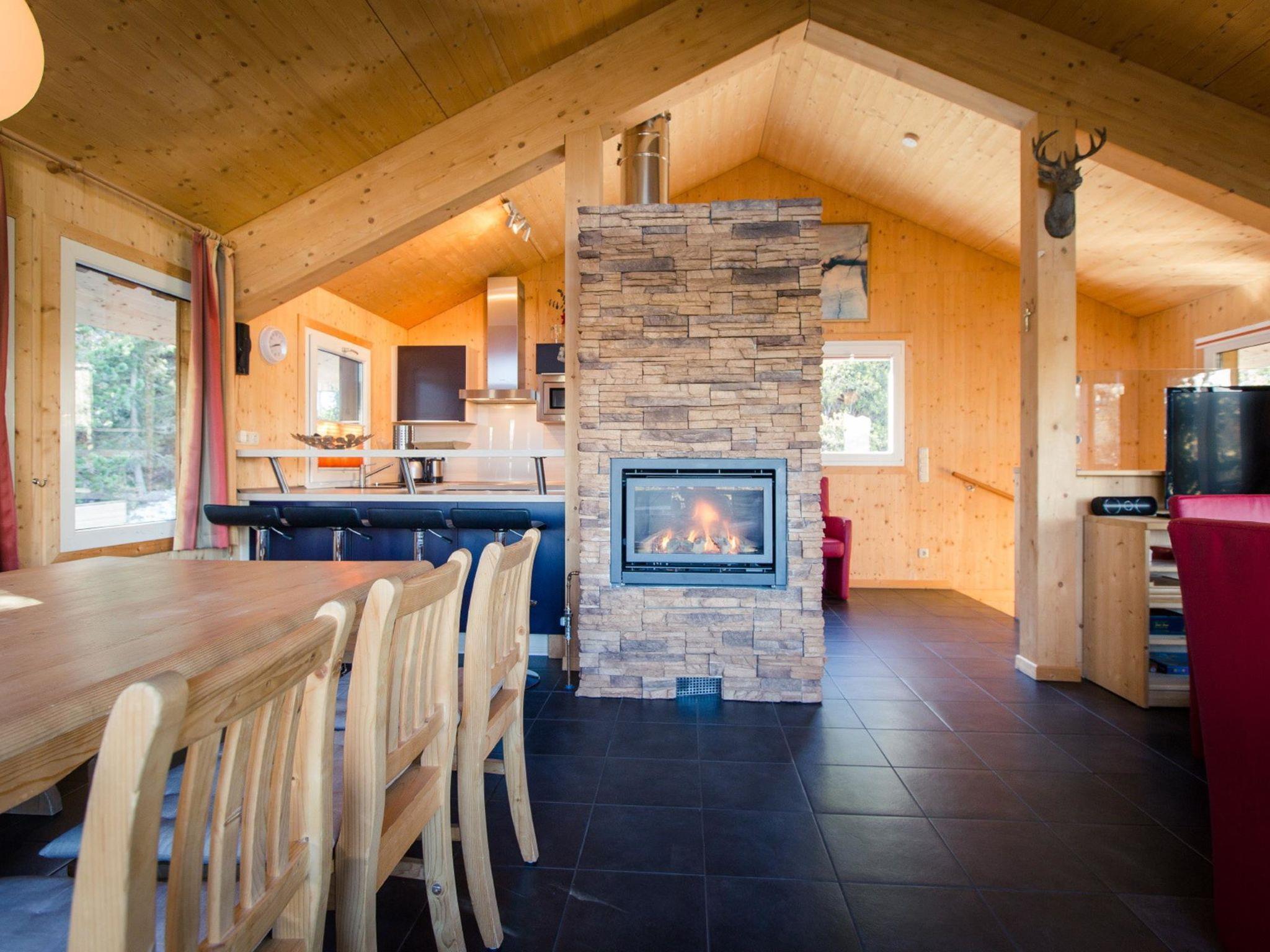 " 24 mit IR-Sauna & Sprudelwanne Innen", 5-room chalet 120 m2 on 2 levels. Luxurious and tasteful furnishings: living/dining room with dining nook and satellite TV (flat screen). Open kitchen (oven, dishwasher, 4 ceramic glass hob hotplates, toaster, kettle, microwave, electric coffee machine). Shower/WC. Upper floor: 2 double bedrooms. 1 room with 1 x 1 bunk beds. 1 room with 2 beds (90 cm). Bath/WC, shower/WC, hydro massage bath, Sauna. Balcony. Balcony furniture. Beautiful view of the mountains. Facilities: Internet (WiFi, free). Please note: non-smokers only. The sauna is an infrared cabin.