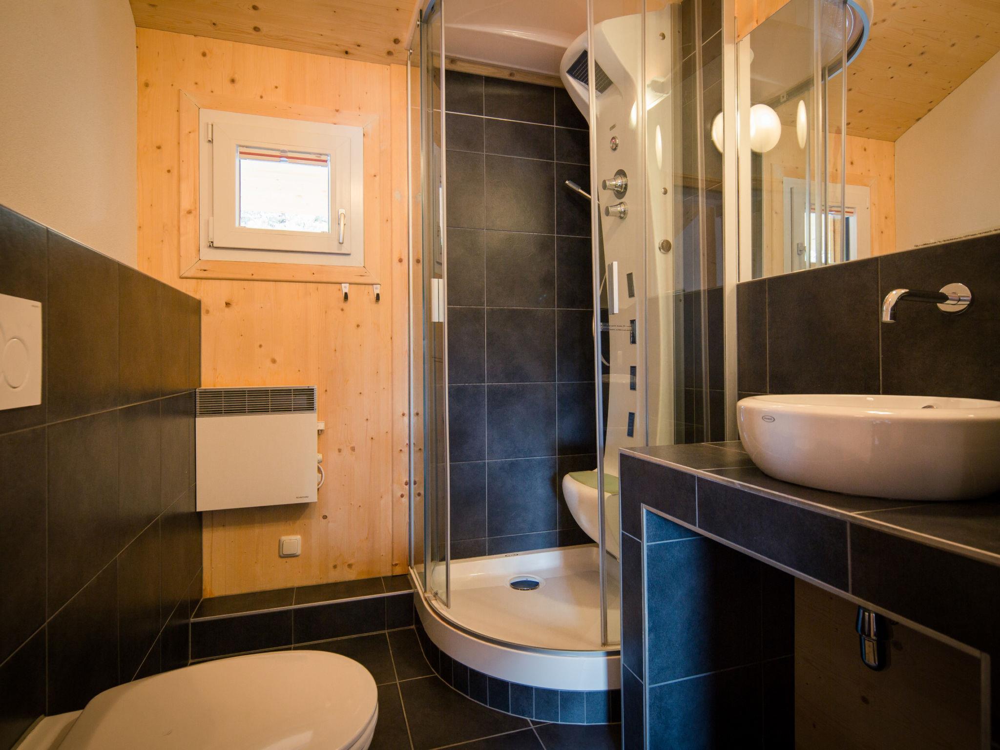 " 23 mir IR-Sauna und Sprudelbad Innen", 6-room chalet 130 m2 on 2 levels. Luxurious and tasteful furnishings: living/dining room with dining nook and satellite TV (flat screen). Open kitchen (oven, dishwasher, 4 ceramic glass hob hotplates, toaster, kettle, microwave, electric coffee machine). Shower/WC. Upper floor: 4 double bedrooms. 1 room with 1 x 2 bunk beds, 1 double bed. Bath/WC, shower/WC, hydro massage bath, Sauna. Balcony. Balcony furniture. Beautiful view of the mountains. Facilities: Internet (WiFi, free). Please note: non-smokers only. The sauna is an infrared cabin.