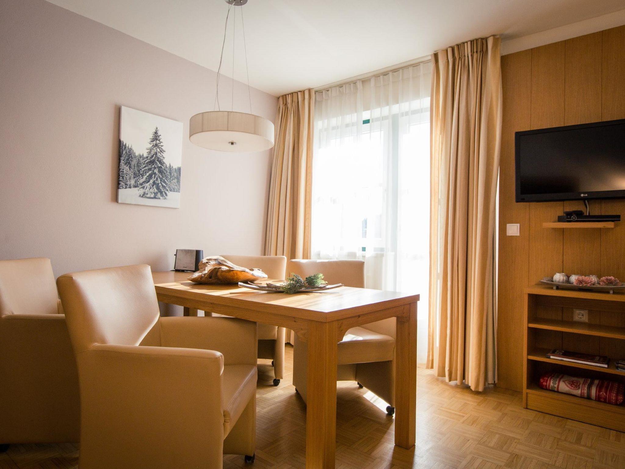 " 11 mit Balkon", 3-room apartment 50 m2. Modern and cosy furnishings: entrance hall with 1 x 2 bunk beds. Living/dining room with dining nook and satellite TV (flat screen). 1 double bedroom. Open kitchen (dishwasher, 4 ceramic glass hob hotplates, toaster, kettle, microwave, electric coffee machine). Shower/WC, Sauna. Balcony. Balcony furniture. Beautiful view of the mountains and the countryside. Facilities: Internet (WiFi, free). Please note: non-smokers only. The sauna is an infrared cabin.