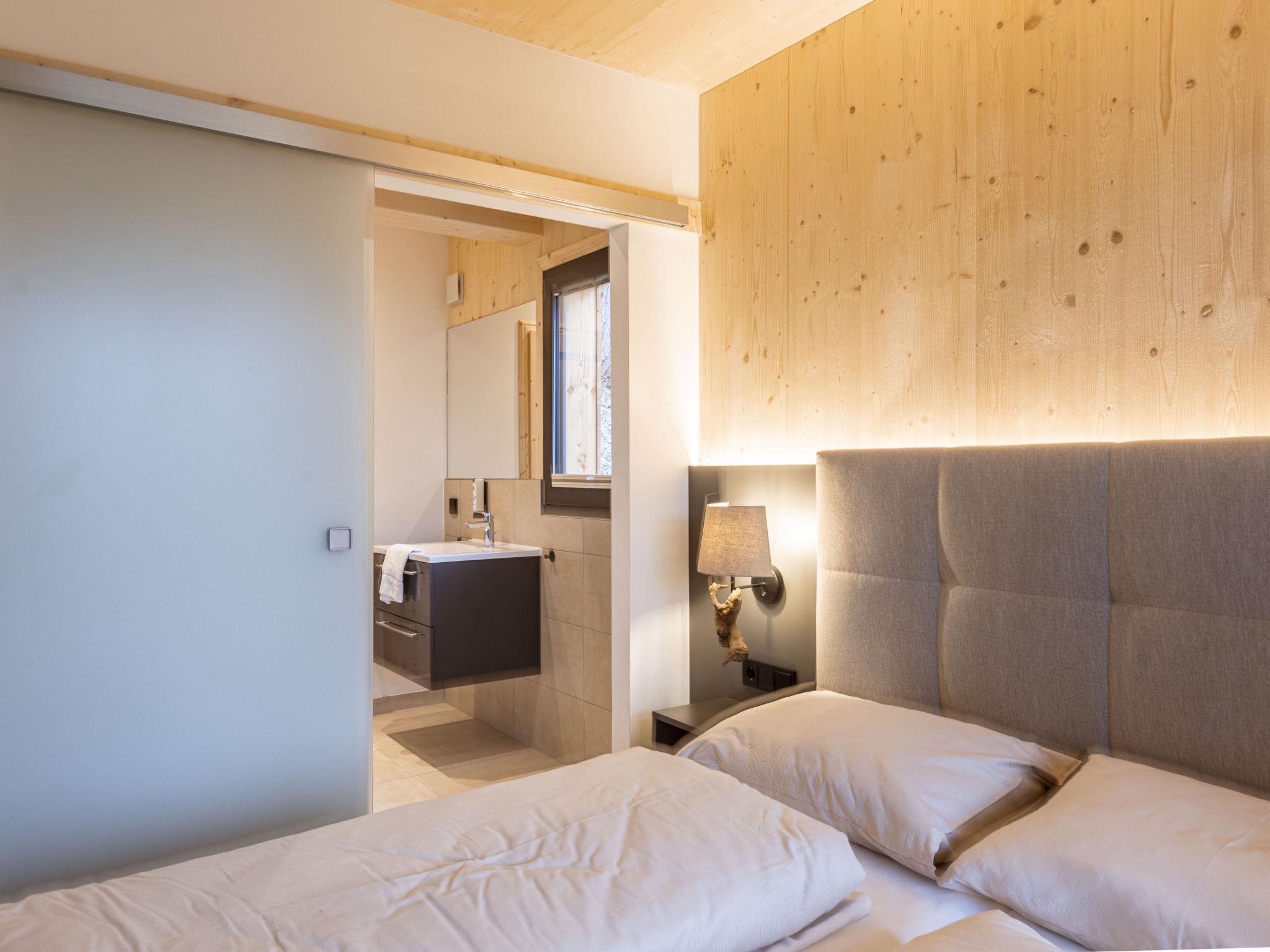 "Superior 21 mit Sauna & Hot Tub", 5-room chalet 135 m2 on 3 levels. Modern and tasteful furnishings: living room with dining table and satellite TV (flat screen). 2 double bedrooms, each room with shower/WC. 2 double bedrooms. Open kitchen (oven, dishwasher, 4 ceramic glass hob hotplates, toaster, kettle, microwave, electric coffee machine). Shower/WC, Sauna. Heating. Balcony terrace. Terrace furniture. Beautiful view of the countryside. Facilities: hair dryer. Internet (WiFi, free). Please note: non-smokers only. The chalet has a hot tub on the terrace (without bubble function).