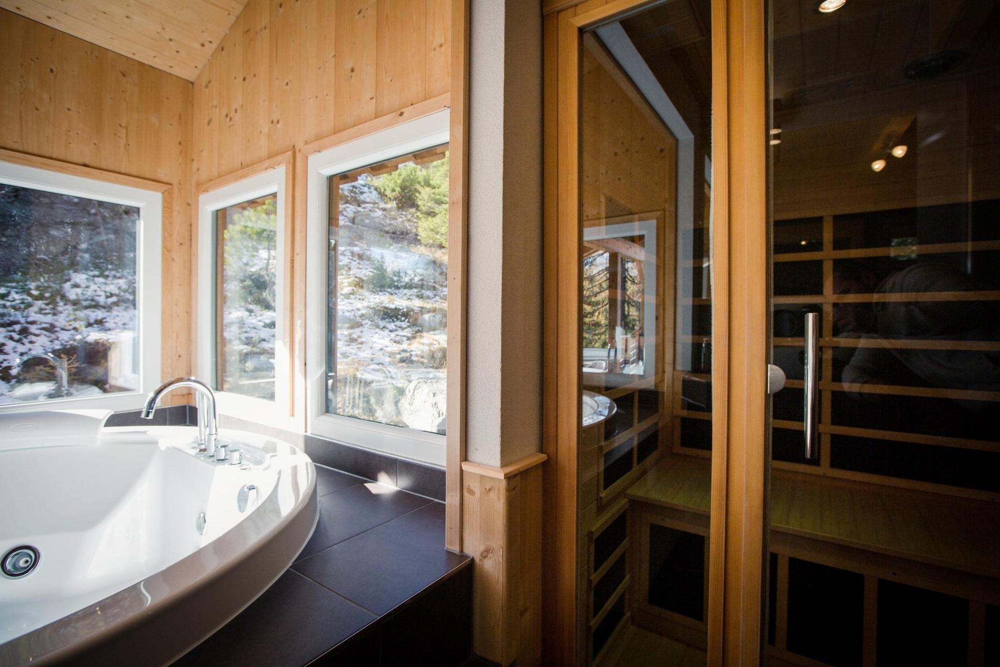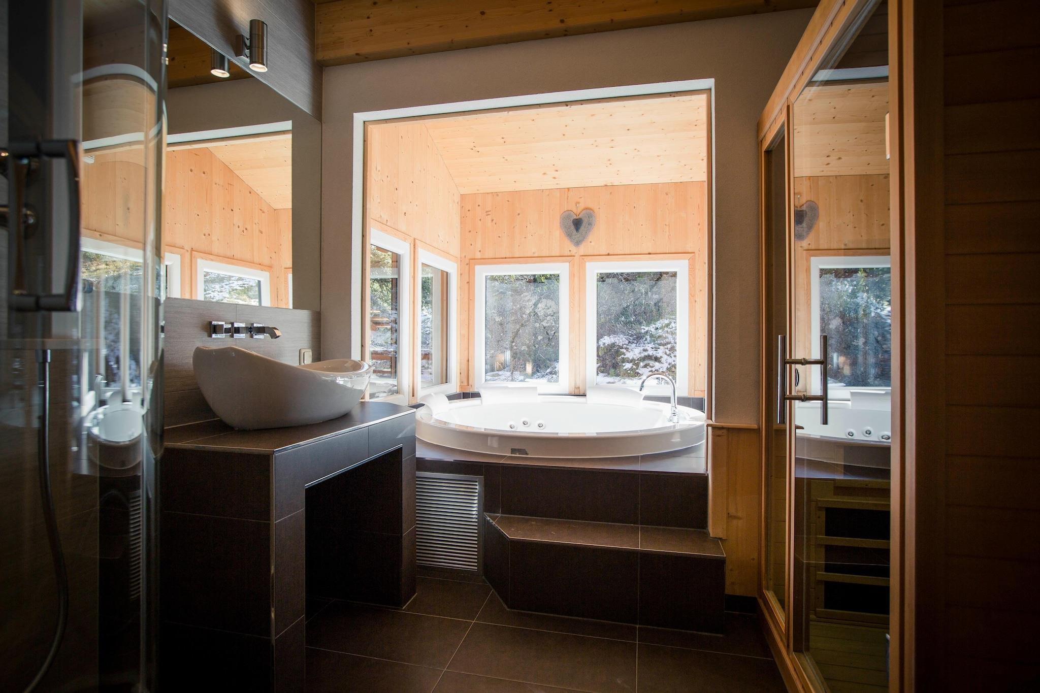 Fritliggende design hytte i Alpenpark med en fænomenal udsigt over de omkringliggende høje bjerge, dejlig naturlig beliggenhed i en pinjeskov i en højde på 1800 meter. Gennem sin unikke beliggenhed på bjerget har hver hytte en fantastisk udsigt over panoramaet af Gurktaler Alperne. Alpenparken er nået på ski. Den fritliggende træ design chalet blev bygget i 2011 og forsynet med alle de luksus du kan forestille dig. Den rummelige 5-stjernede chalet har 4 soveværelser, 1 badeværelse og eget wellness-område med egen infrarød sauna, boblebad (med dejlig udsigt over bjergene!), Brusebad, dobbeltvask og dampkabine. I stueetagen af denne hytte finder du en rummelig stilfuld stue med åbent designkøkken, rummeligt opholdsområde, spisekrog og endda en gas pejs til de hyggelige vinteraftener. Fra stuen har du adgang til altanen. Fra hytten og de forskellige terrasser har du en storslået udsigt over bjergene. Østrigs bedst bevarede hemmelighed er uden tvivl Turracher Höhe, bjergpaset, der forbinder Kärnten og Steiermark. Her er du omgivet af bjergets smukke indretning , snoede veje og maleriske landsbyer. Turracher Höhe er kendt som et af de mest attraktive feriekomplekser i Kärnten og Steiermark-regionen. Hvis du leder efter vinterunderholdning, er Turracher Höhe det rigtige sted. Det er et vidunderligt familie skiområde med mange charmerende bjergrestauranter. Højhøjden og de mange sneinstallationer garanterer perfekte sneforhold i hele vintersæsonen, som starter i slutningen af november og slutter kun i begyndelsen af maj. Om sommeren er området kendt for dets imponerende flora og fauna, de mange vandreruter, de mange aktiviteter og de tre bjergsøer, Turracher See, Schwarzsee og Gruensee. Den dejlige Turrachersee og villaen Ge center er inden for gåafstand. Der er mange butikker og restauranter der. Fordi området omkring c