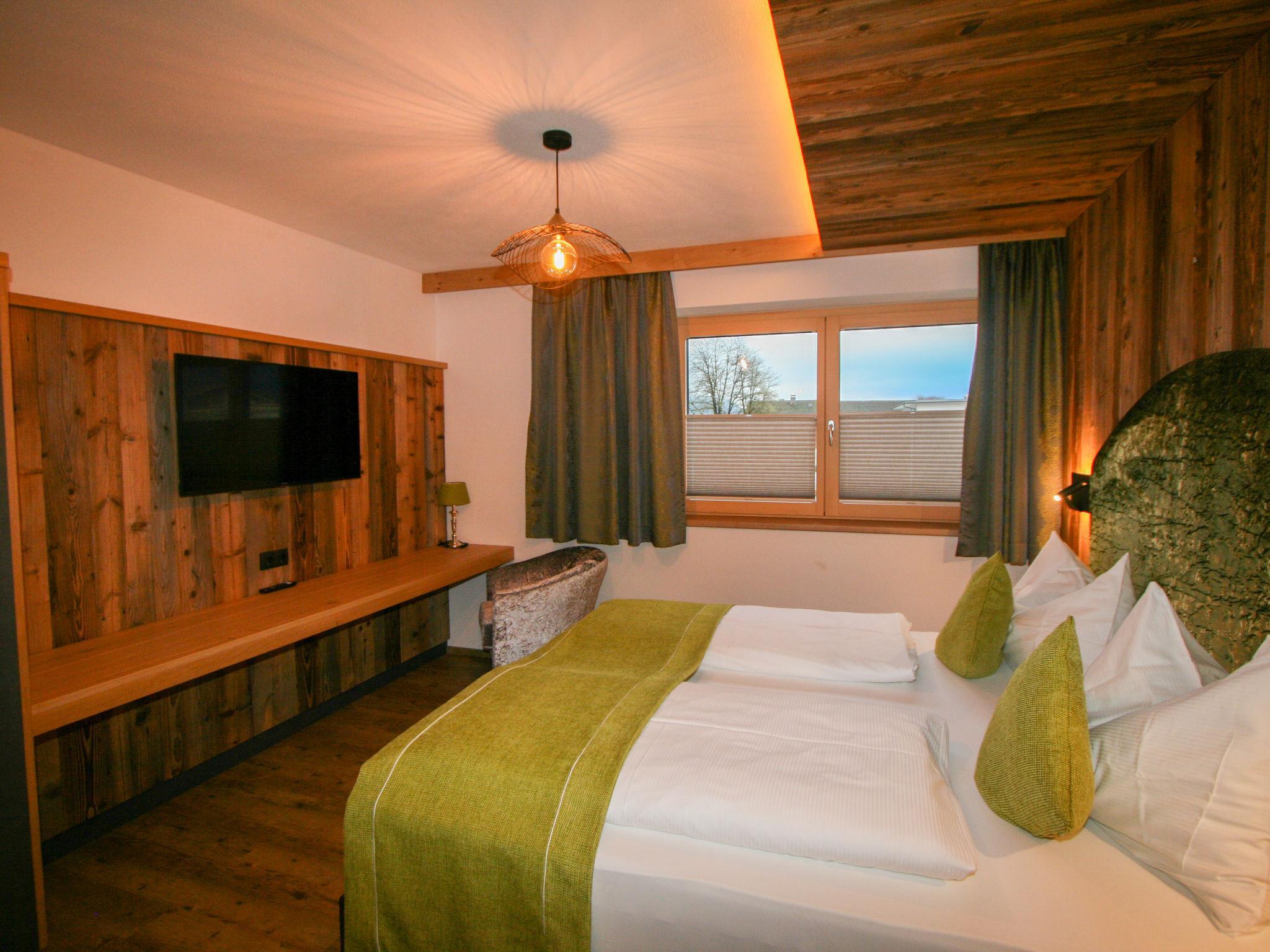 "Erzherzog’s Apts/Zillertal Kaiser Lodge", 3-room apartment 84 m2 on 1st floor. Very comfortable and stylish furnishings: 2 double bedrooms, each room with TV (flat screen). Kitchen-/living room (oven, dishwasher, 4 ceramic glass hob hotplates, toaster, kettle, microwave, electric coffee machine) with Scandinavian wood stove (only for decoration), dining table and TV (flat screen), radio and CD-player. Exit to the balcony. Shower, sep. WC, double hand-basin. Underfloor heating. Small balcony. Balcony furniture. Facilities: safe, hair dryer. Internet (WiFi). E-charging station. Please note: non-smoking house.