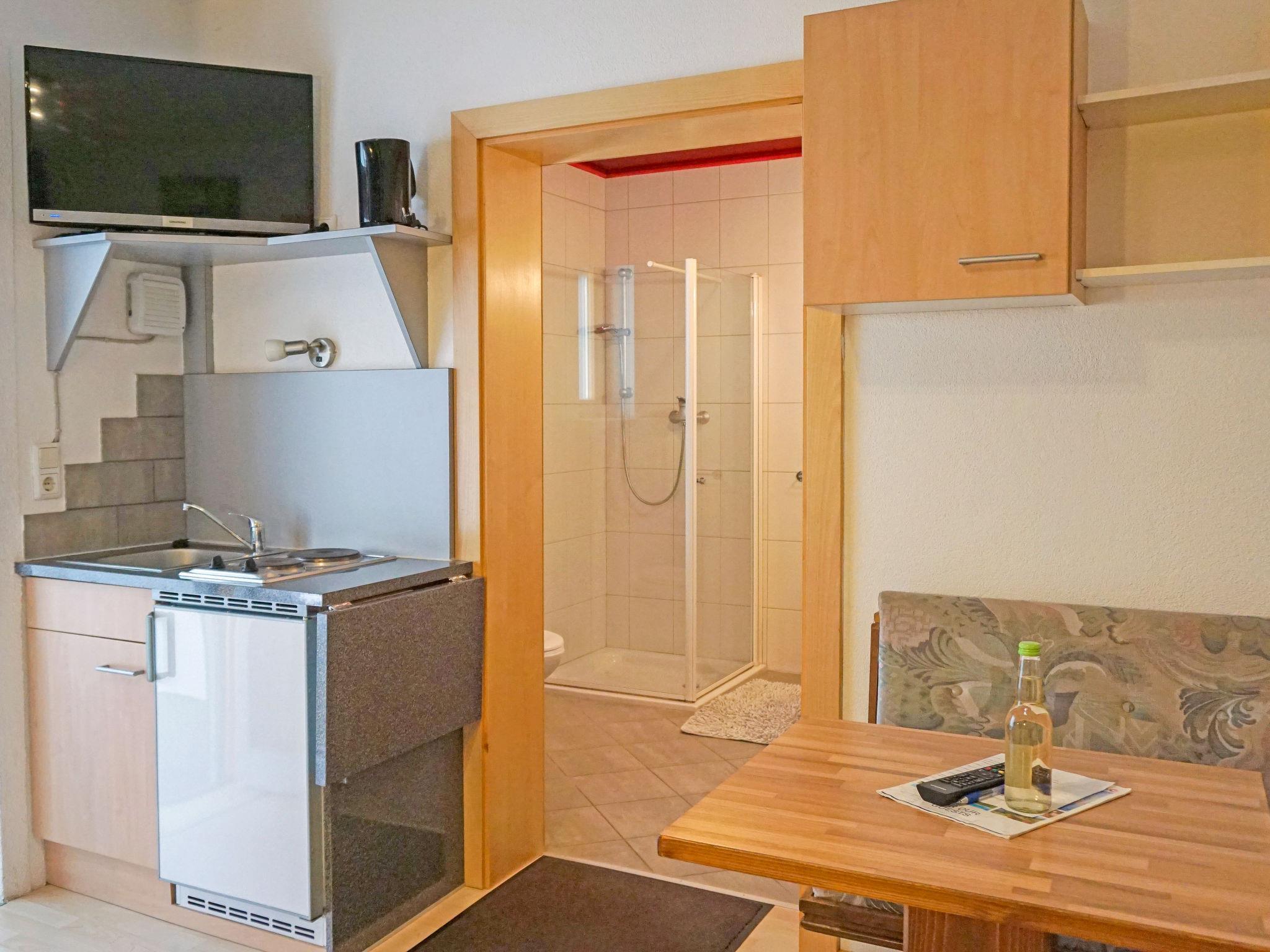 1-room studio 20 m2, on the ground floor. Simple and cosy furnishings: 1 room with 1 double bed, dining nook and satellite TV. Kitchenette (2 hot plates, microwave). Shower/WC. Sitting area. Facilities: hair dryer. Internet (WiFi, free). Please note: non-smokers only. Private entrance.