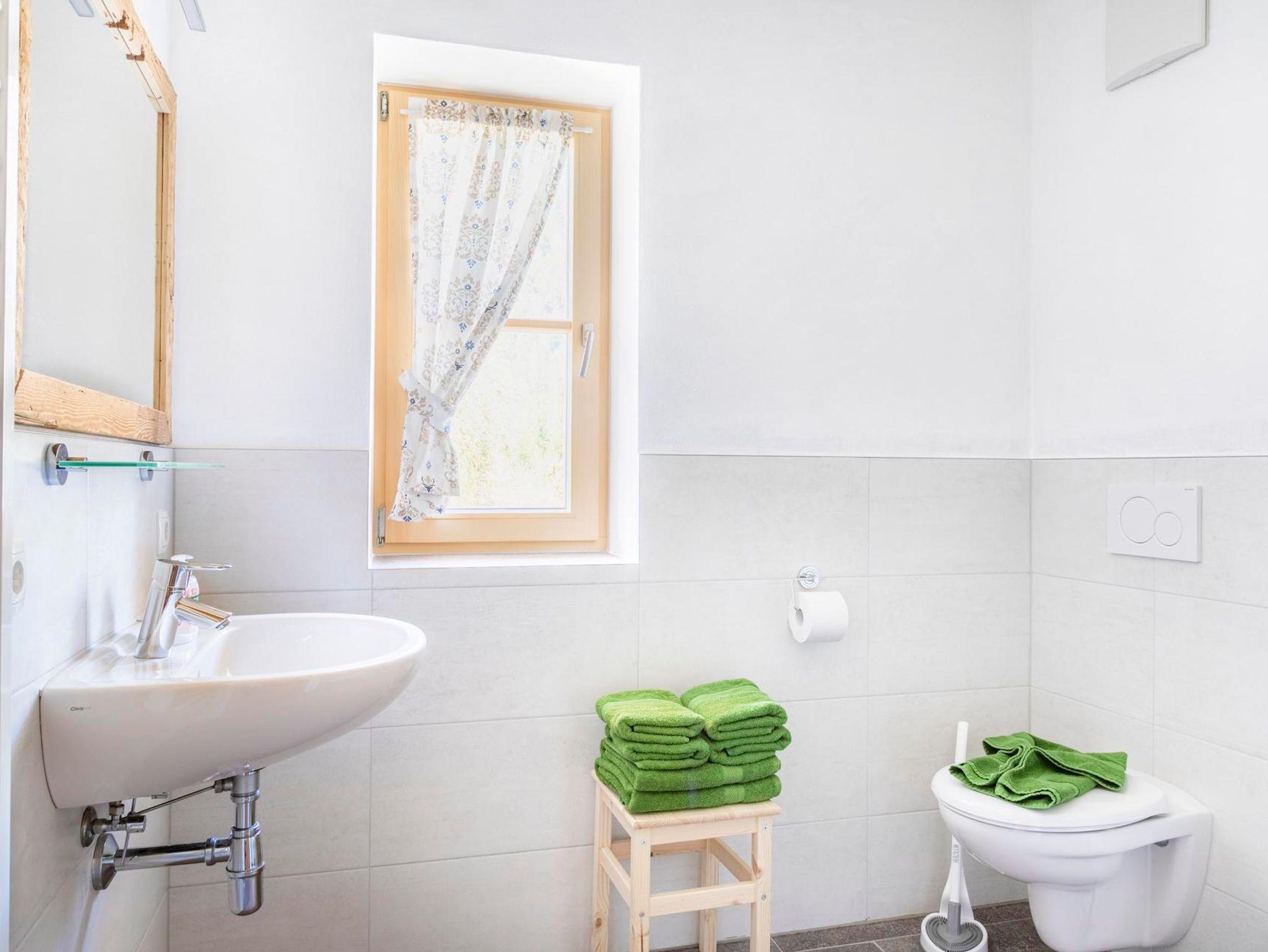 Die Wohnung befindet sich im ersten Stock des Bauernhauses und ist über eine Treppe oder den Lift erreichbar.