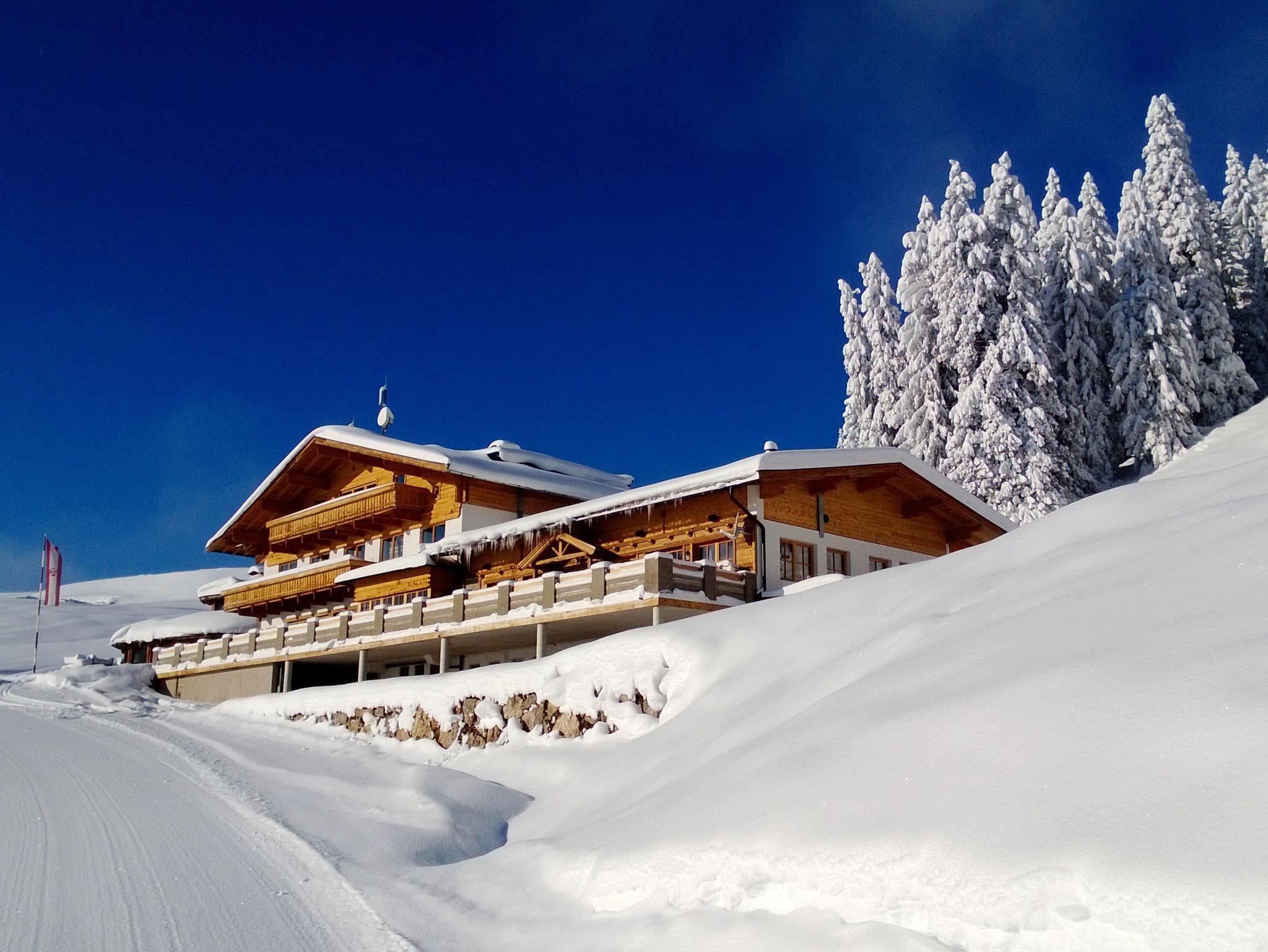 Terrasse,liegt direkt an der Schipiste im Ski- und Wandergebiet Steinplatte.