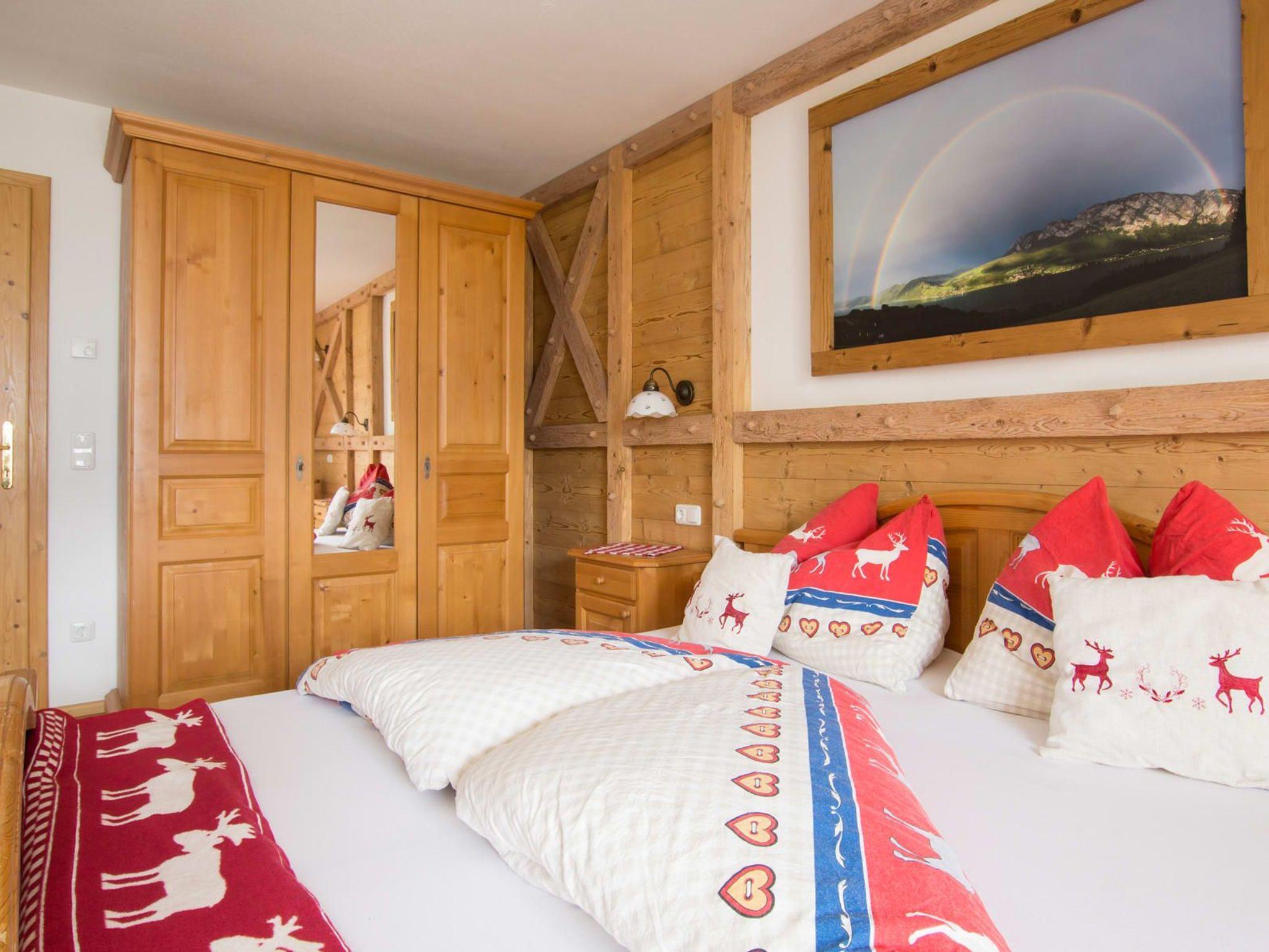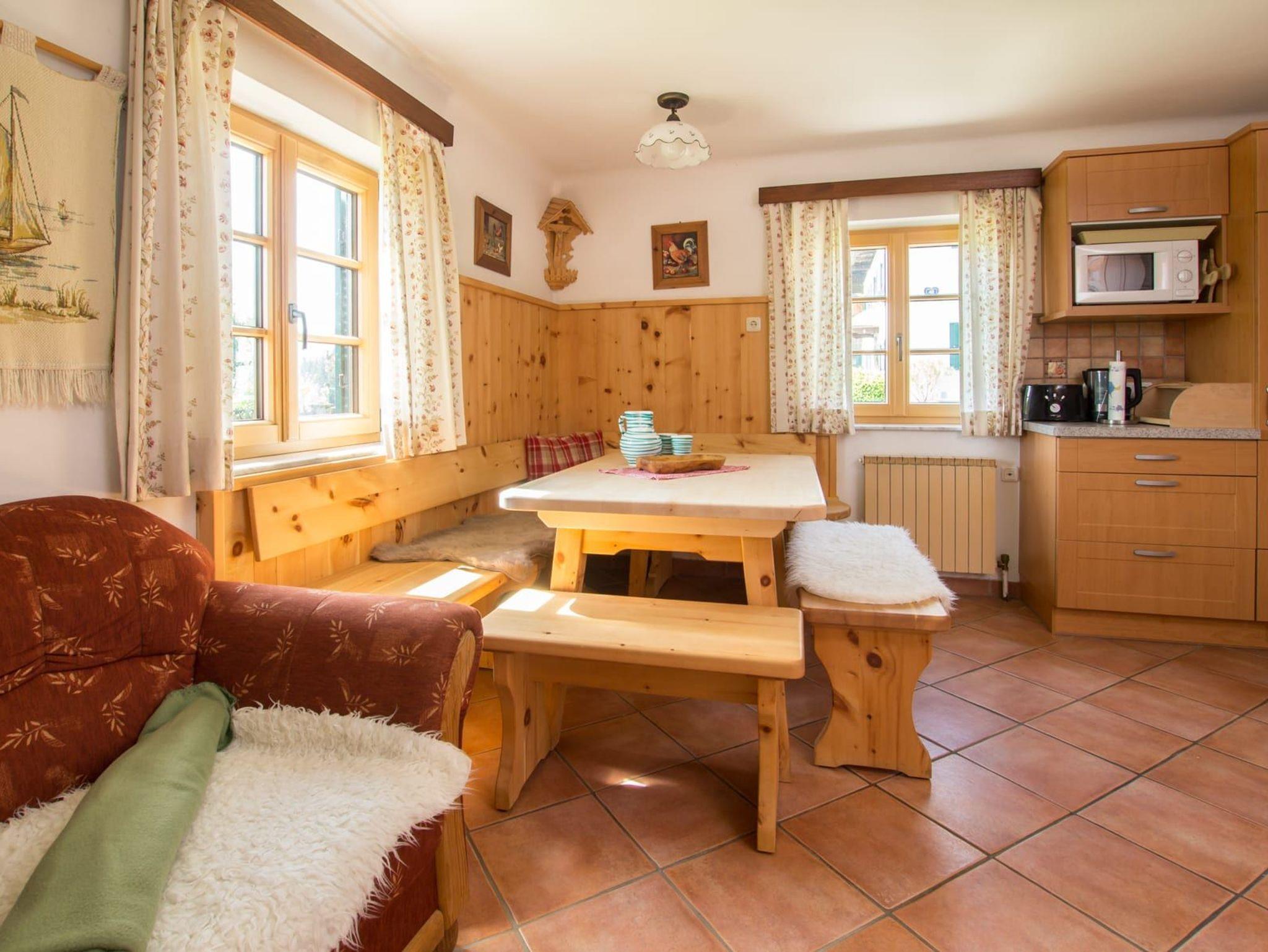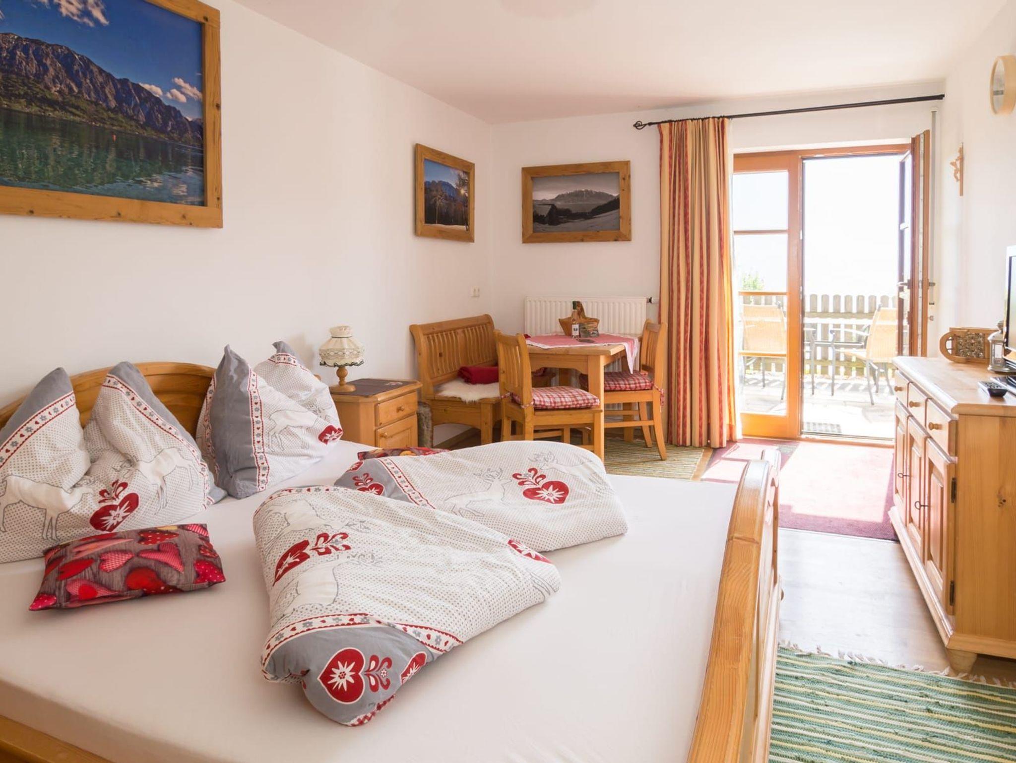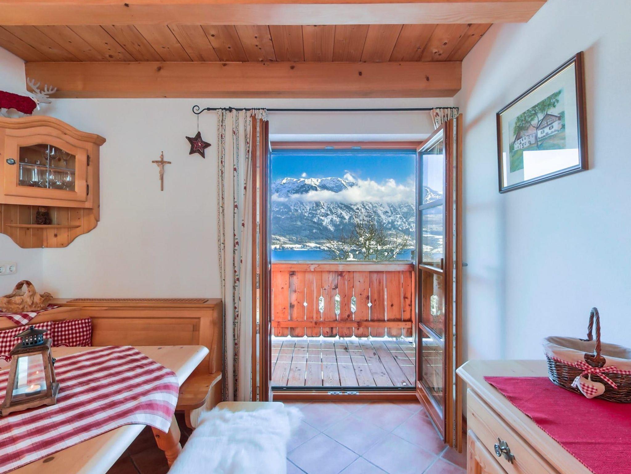 Unsere exklusive urgemütliche in Massivholz eingerichtet Ferienwohnung Wolfgangsee mit 85 m 2 für 2 - 4 Personen mit Blick zum Attersee ist mit südseitigen Balkon und Terrasse, großem Wohnraum, komplett eingerichteter großen Komfortküche, Geschirrspüler, Kühl-,und Gefrierkompination, gemütlicher Sitzgarnitur mit einem Sofa, Waschmaschine, Kostenloser Internetzugang, Sat-TV, Flatscreen, Radio, DVD Player, Gratis - Internet über Wireless LAN oder Kabel, 2 WC und Bad getrennt, mit 2 getrennten Schlafzimmer mit Bettwäsche und Handtücher ausgestattet!