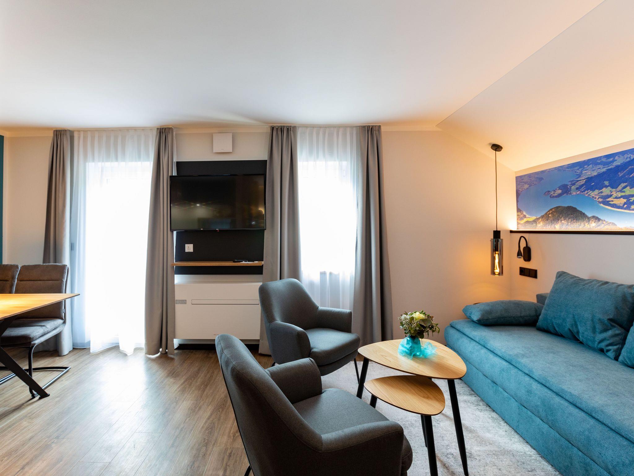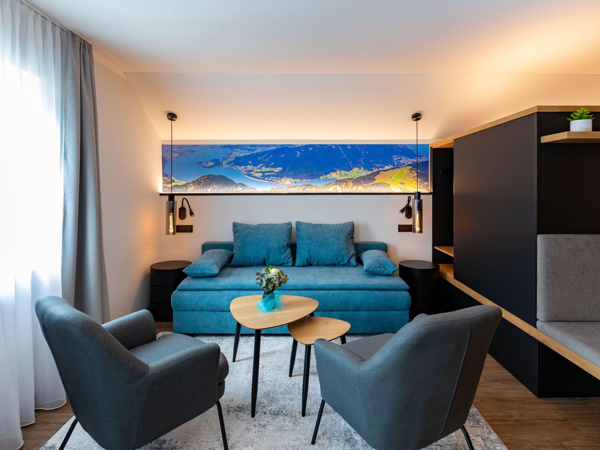 Urlaub mit DesignDirekt vor dem Schafberg am malerischen Mondsee gelegen, bietet die neue Unterkunft Seegut Kübler alle Annehmlichkeiten für den Aufenthalt.