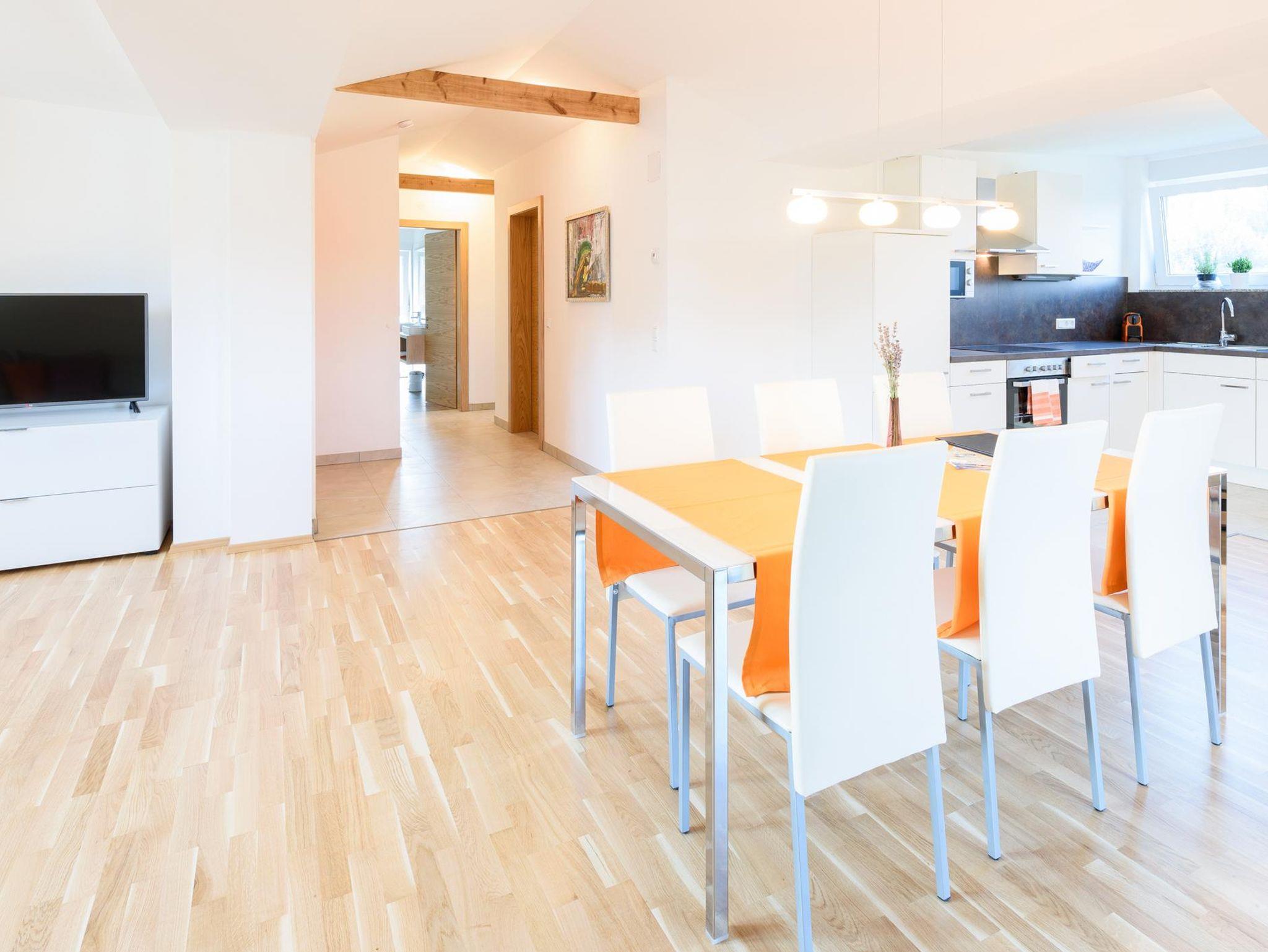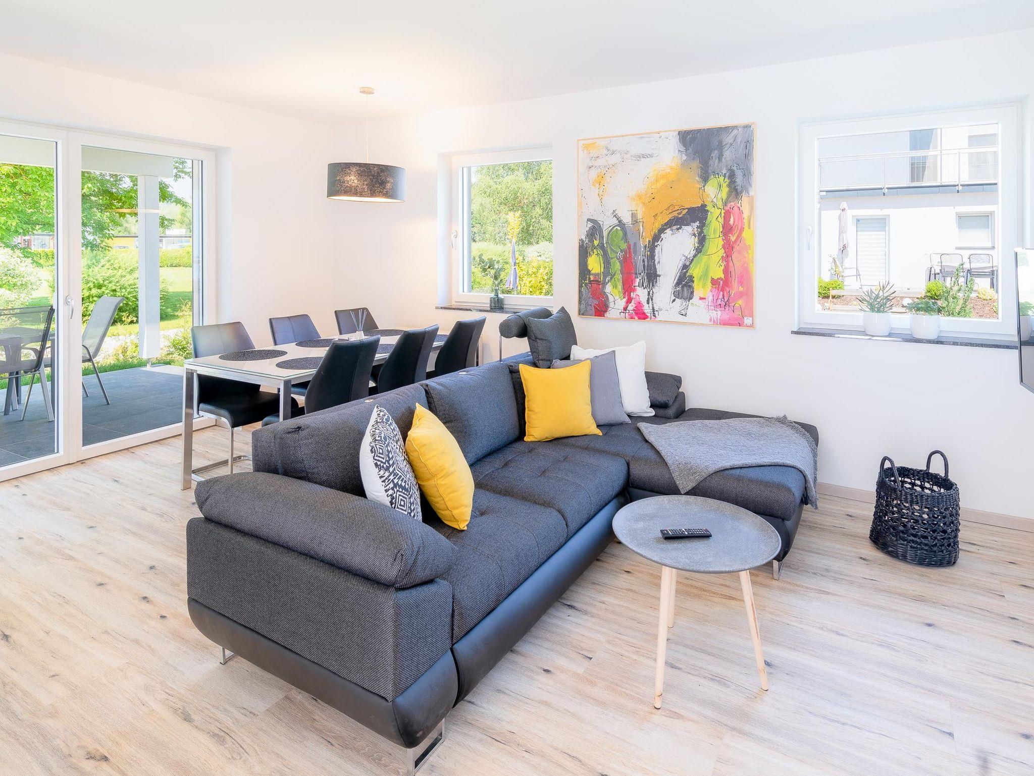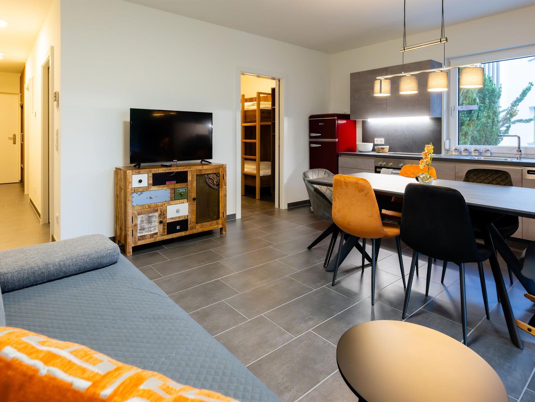Gemütliches Wohn- und Esszimmer mit großzügiger Schlafcouch (bietet Schlafgelegenheit für bis zu 2 Personen).
