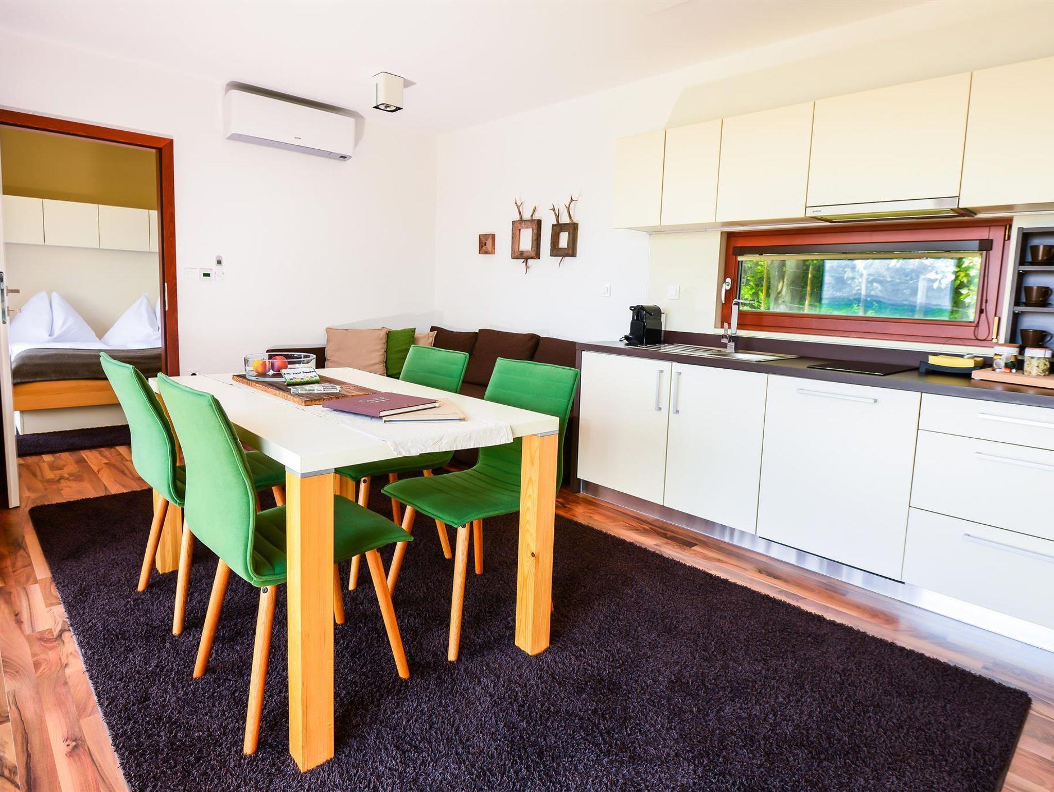 Die schönste Zeit des Jahres, die Urlaubszeit, genießen unsere Gäste in ihrem ganz privaten Ferienhaus. Somit wird man im Weingarten-Resort Unterlamm Loipersdorf für die Dauer des Aufenthalts zum Hausbesitzer. Und entscheidet selbst, ob man die ersten Sonnenstrahlen gemütlich im Bett begrüßt oder beim genussvollen Frühstück auf der eigenen Terrasse. Für einen perfekten Start in den Tag bringen Ihre Gastgeber ein liebevoll zusammengestelltes Frühstückskörberl bis an die Haustüre. Zur vereinbarten Zeit und immer auch mit einem kulinarischen Gruß! Bequeme Sonnenliegen laden zum Verweilen ein und auch die Schwebeliebe Siesta Sky entführt abseits vom Alltag, denn damit lässt man die Seele einfach einmal baumeln. Jedes WeinHAUS begeistert mit einem Highlight, sei es die eigene Infrarotkabine, eine urige Outdoordusche oder auch mit modernen Lounge-Möbeln, eine perfekte Ausblick auf die Weinberge inklusive. Alle Nichtraucher-Apartments strahlen viel Gemütlichkeit aus, noch mehr strahlt die Sonne vom blauen Himmel. Im Weinurlaub steht man also vor der Qual der Wahl… stundenlang relaxen im und vor dem eigenen WeinHAUS oder doch in den nahegelegenen Thermen Körper und Geist regenerieren. Oder die vielen Ausflugsziele in der Südoststeiermark erkunden. Oder, oder, oder...! Hauptsache Urlaub im Weingarten-Resort Unterlamm Loipersdorf.