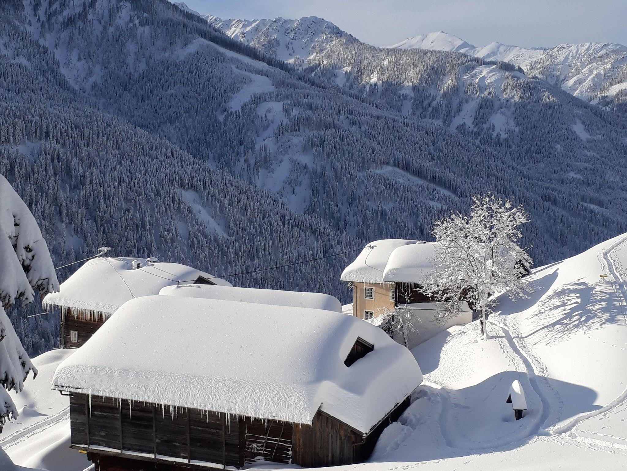 Gemütliches, kleines Ferienhaus auf 1460 m Seeehöe inmitten einer historischen Bergbauernsiedlung für drei bis vier Personen; sonnige, ruhige Lage, wunderbarer Ausblick ins Lesachtal und auf die Karnischen Alpen.