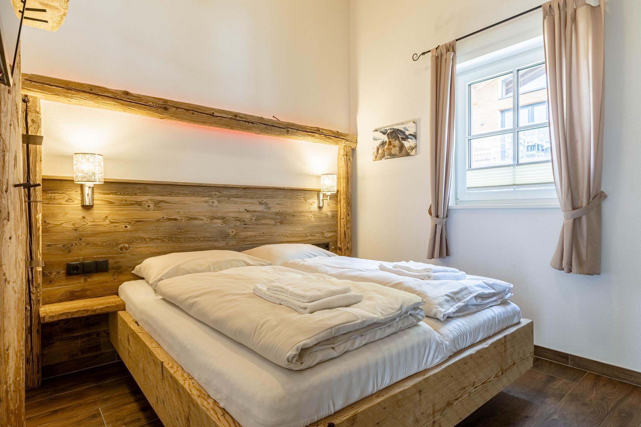 On 135 m² the Premium Chalet # 1B with Sauna offers space for up to 10 people. The holiday home has 4 bedrooms with comfortable double beds, 1 bedroom with a quality sleepingsofa, 4 bathrooms with shower and toilet, a furnished terrace and balcony with mountain views. The private Finnish sauna provides a cozy end to the day. The open kitchen is fully equipped: Cutlery and (cooking) utensils are available, a ceramic hob, oven, a dishwasher and a fridge with freezer compartment are also part of the equipment, as well as a toaster, kettle and coffee maker. A small ALPS RESORTS starter set with dishwasher tabs, dishwashing detergent (sample), sponges, garbage bags, cleaning cloth and dishtowel is ready upon your arrival. WLAN is free of charge, satellite TV. Dog-friendly: Upon request, your dogs are welcome (bookable online).
