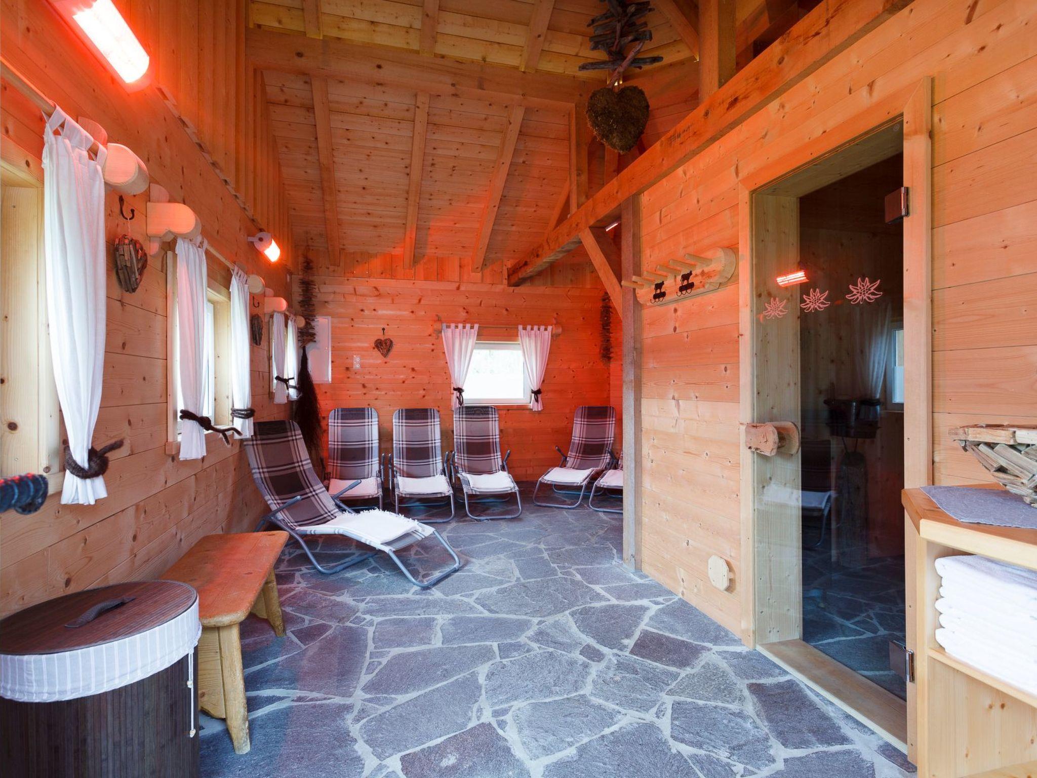 - 4 double rooms (2x with extra bed) - 1 x 4-bed room - 3 x bathrooms with shower, washbasin and hairdryer - 2 x with WC - 1 x separate WC - 1 large, very cosy living room with open fireplace, spacious couch, corner seat with table, flat screen TV, DVD, radio, CD, - free WLAN - 1 fully equipped kitchen with dishwasher, ceramic hob, oven, kettle, filter coffee machine, fridge with freezer compartment, microwave oven, toaster, sufficient crockery and cleaning products - Large covered lobby with garden furniture Additionally available in the house and accessible to all guests - Heated ski and drying room - Washing machine - Tumble dryer - Parking spaces directly at the house - Barbecue area directly at the house Separate sauna house with relaxation area and shower, directly in the garden at the house!